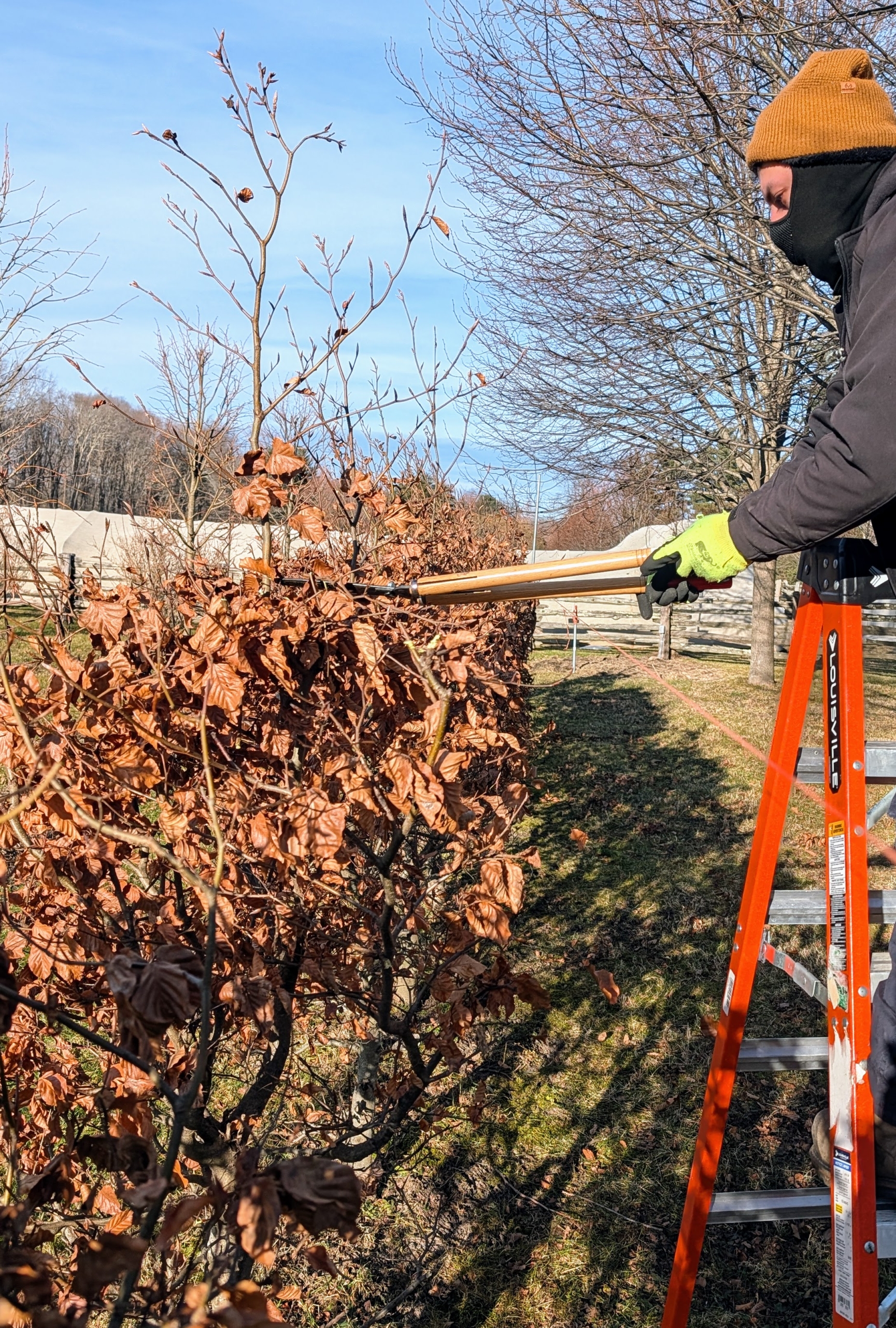 Four years ago, I started creating a garden maze of interesting hedges, espaliers, and shrubs in the pasture across the carriage road from my Winter House terrace. I've planted hundreds of different specimens that add texture and interest - all according to a very detailed map I designed specifically for the space. To keep them healthy and looking their best, I make sure I prune and groom them regularly.