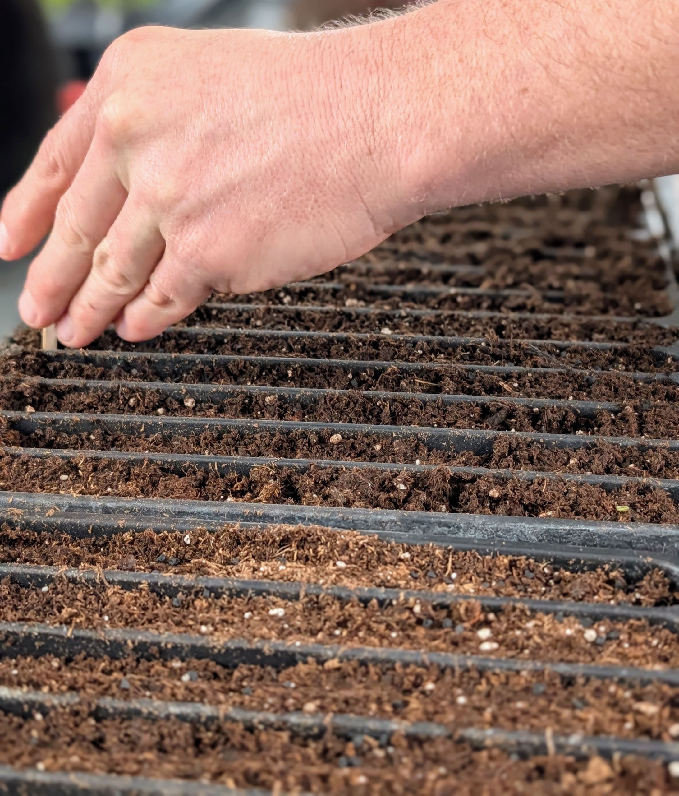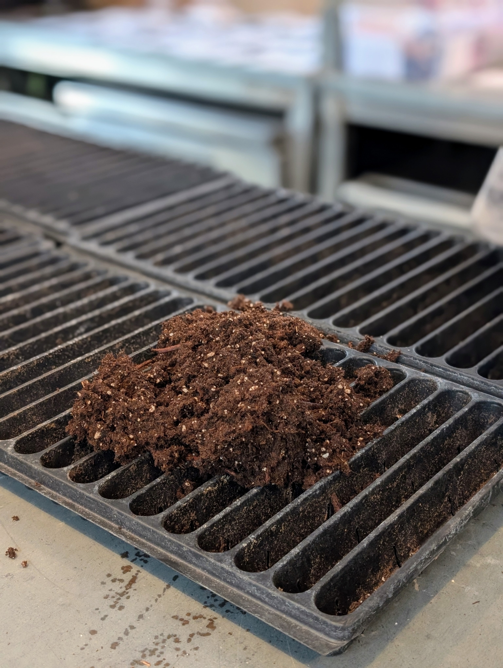 - The soil should be level with the top of the tray. Ryan fills several trays first and works in a production line process.