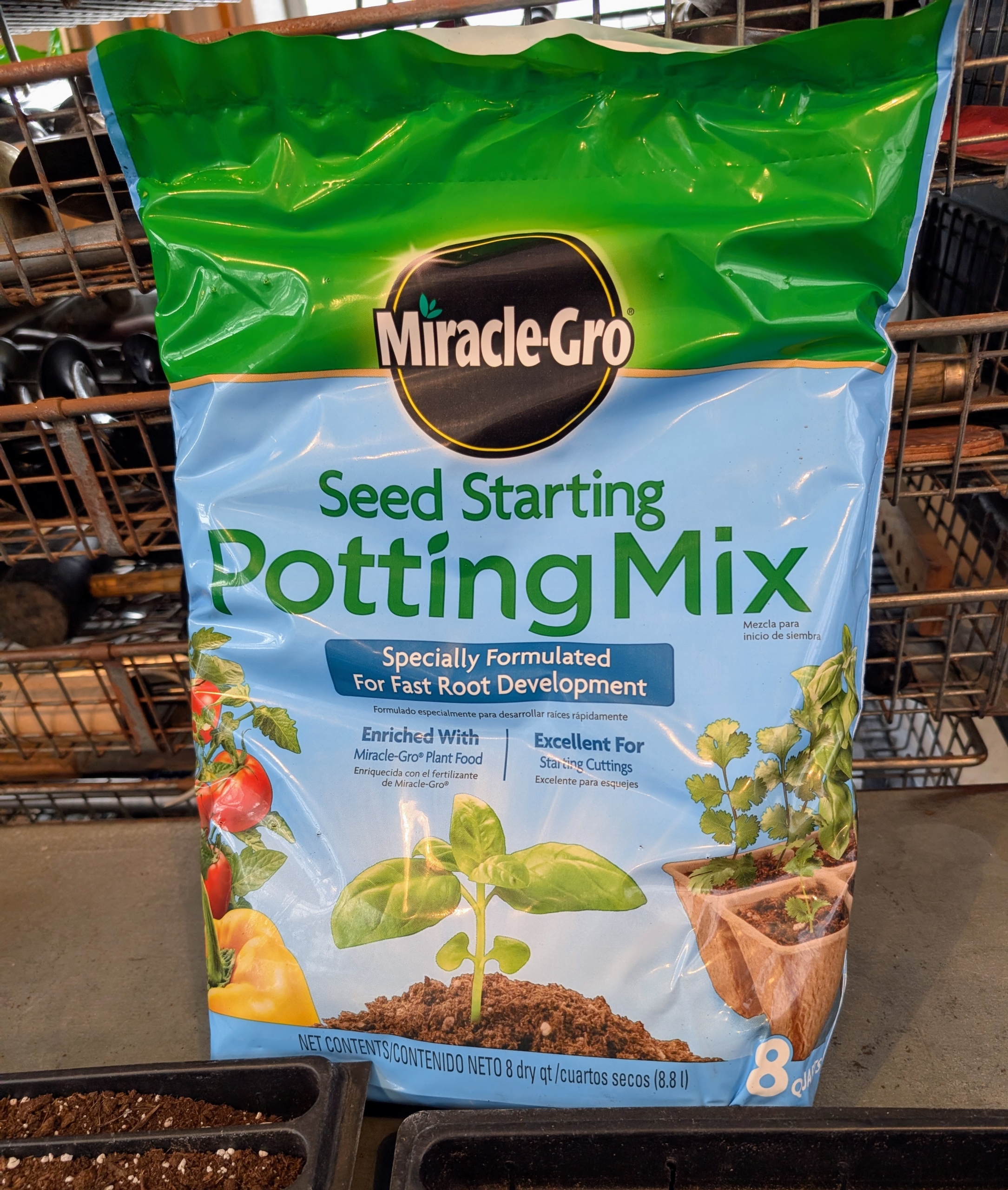 - It’s best to use a pre-made seed starting mix that contains the proper amounts of vermiculite, perlite and peat moss. Seed starting mixes are available at garden supply stores. I use Miracle-Gro Seed Starting Potting Mix.