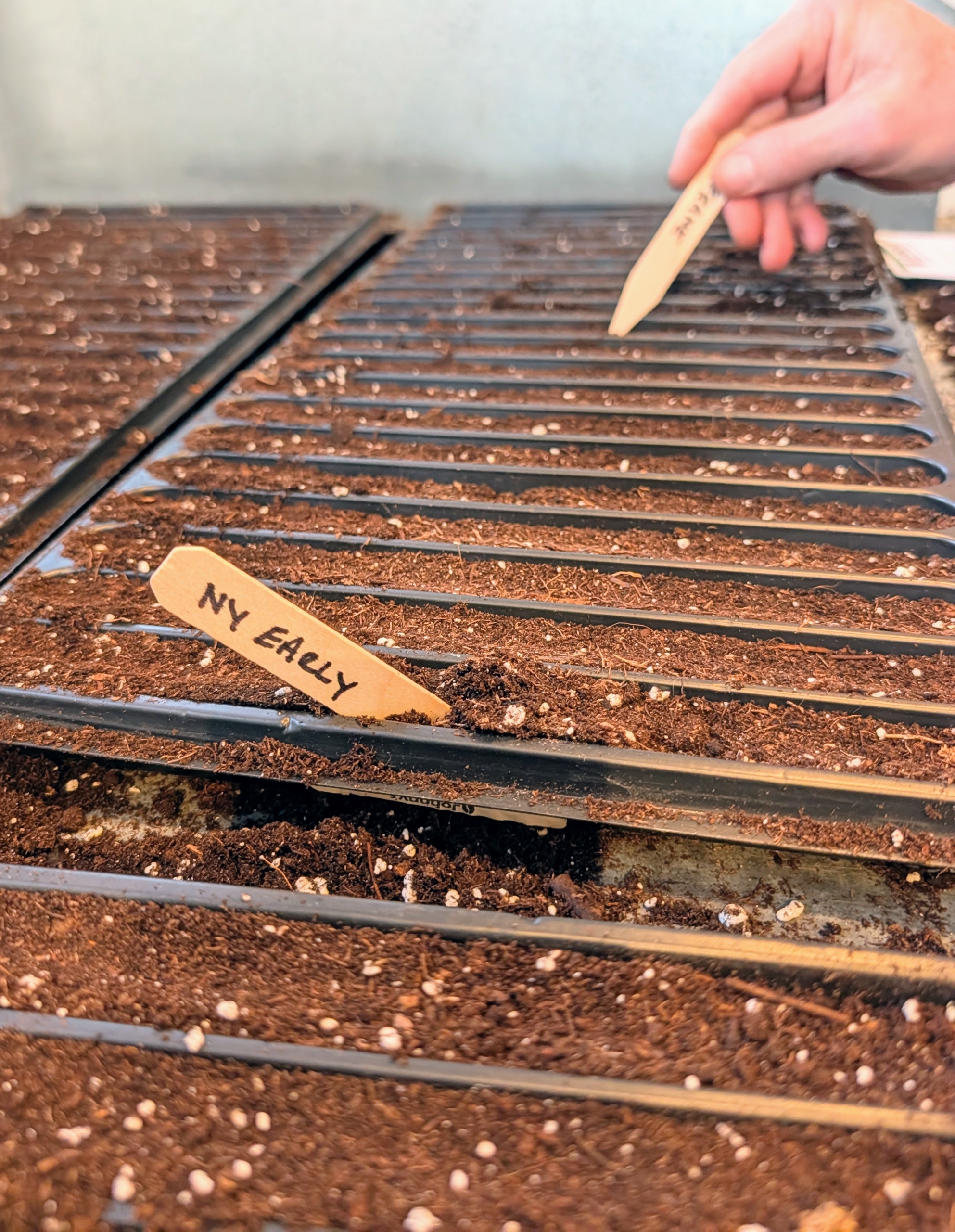 - Ryan places a marker into one of the cells, so it is clear what variety is growing in what tray.