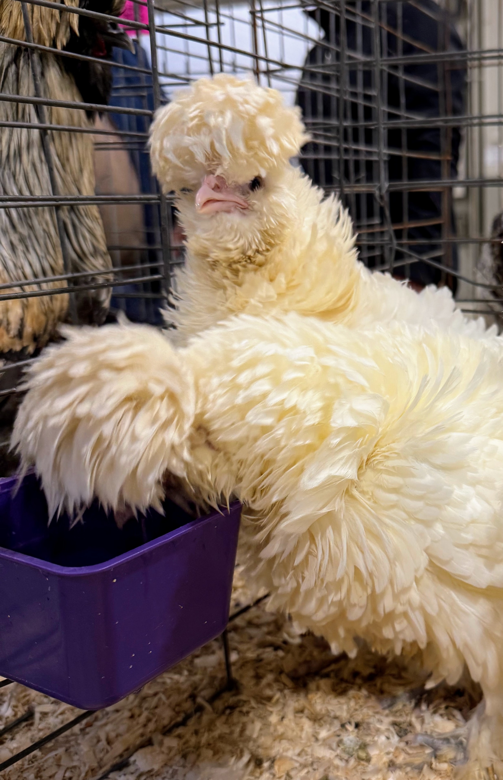 - Visitors are able to see the various breeds up close in their crates. Each cage is tagged with the bird’s breed, color or variety, and gender.