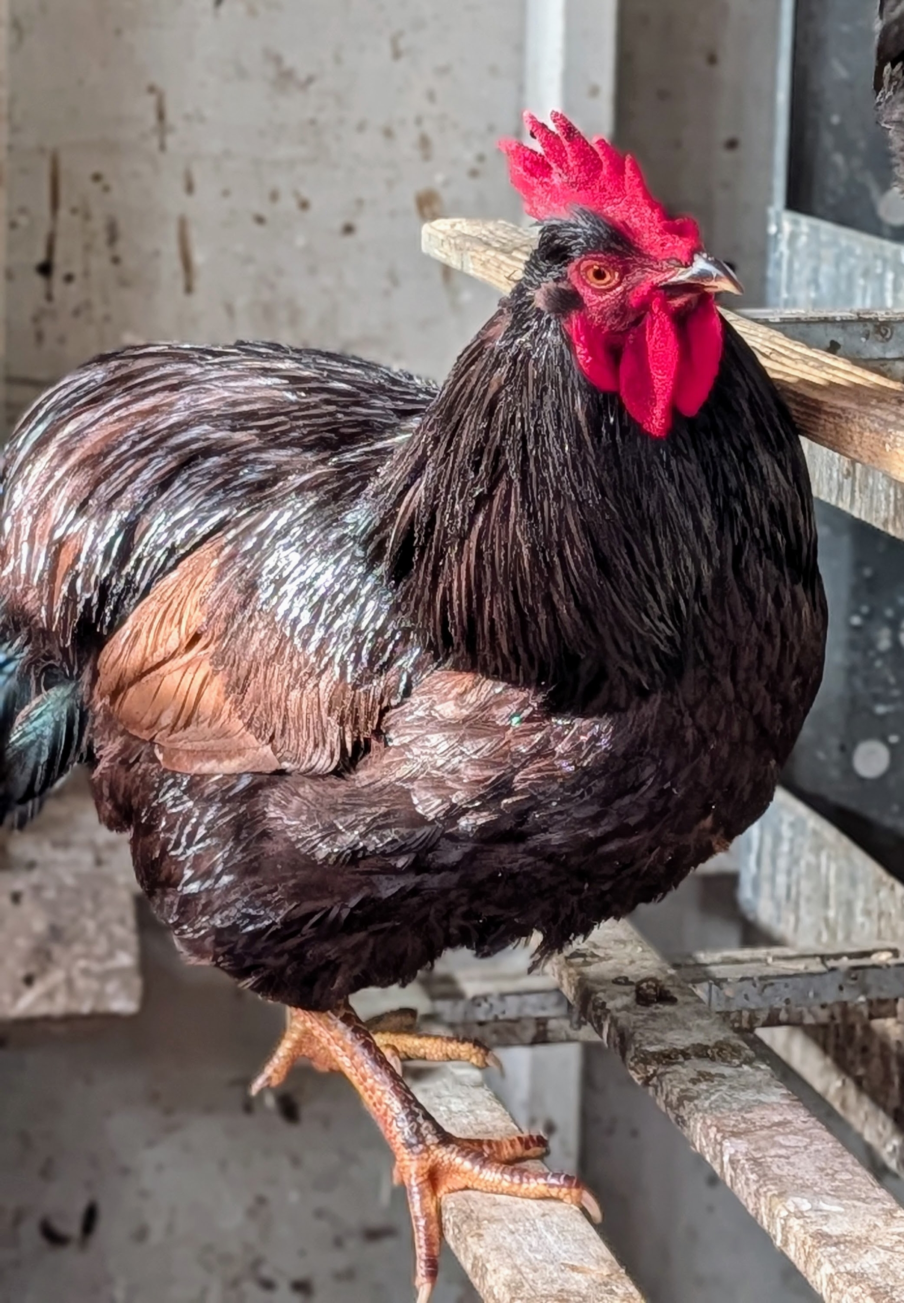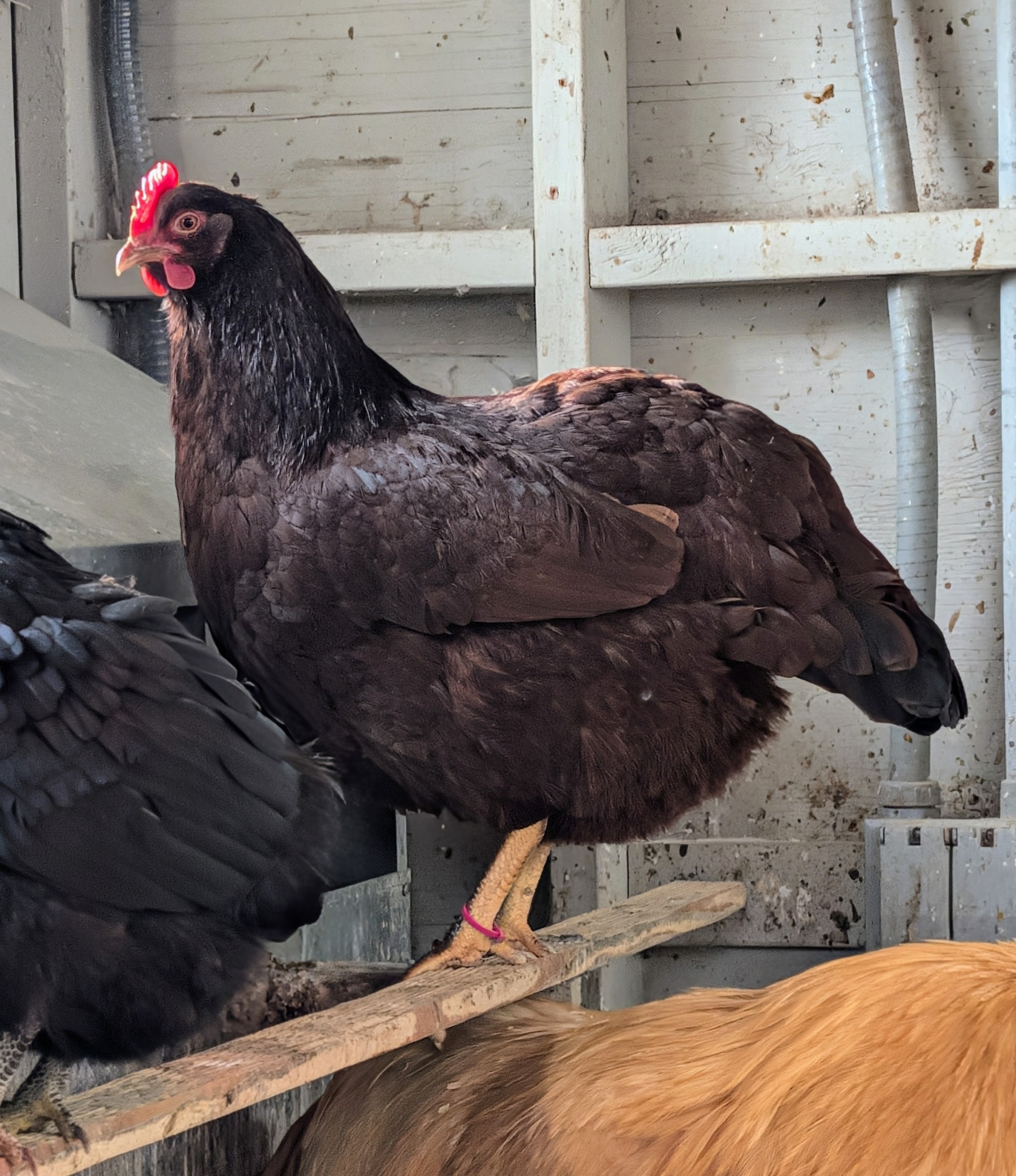 - Nearby is this Rhode Island Red hen. She is an excellent egg layer and can produce 200-300 brown eggs per year.