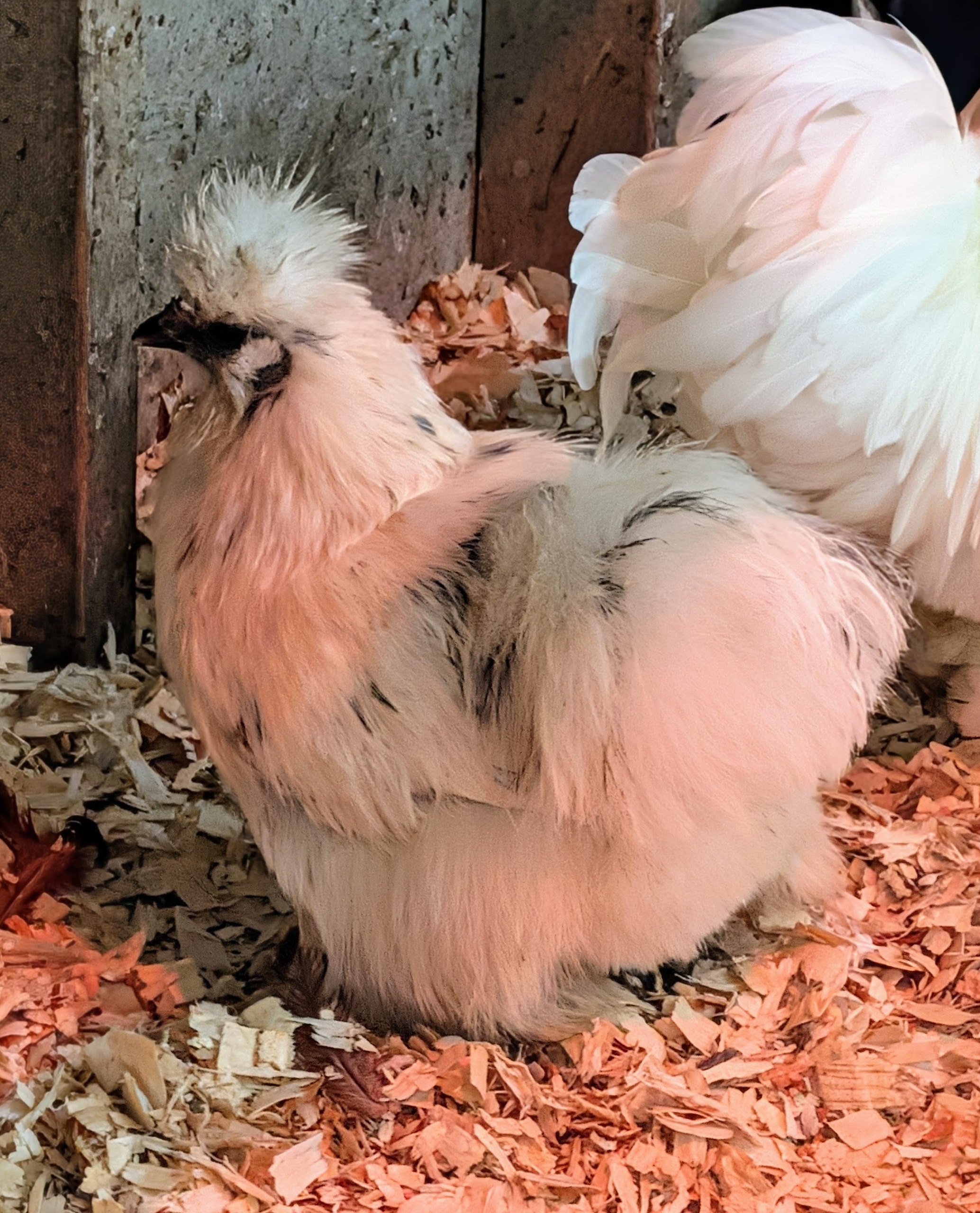 - I always have at least several Silkies in my flock. This is a black splash Silkie hen. The Silkie, also known as the Silky or Chinese silk chicken, is soft to the touch – like silk – and so friendly.