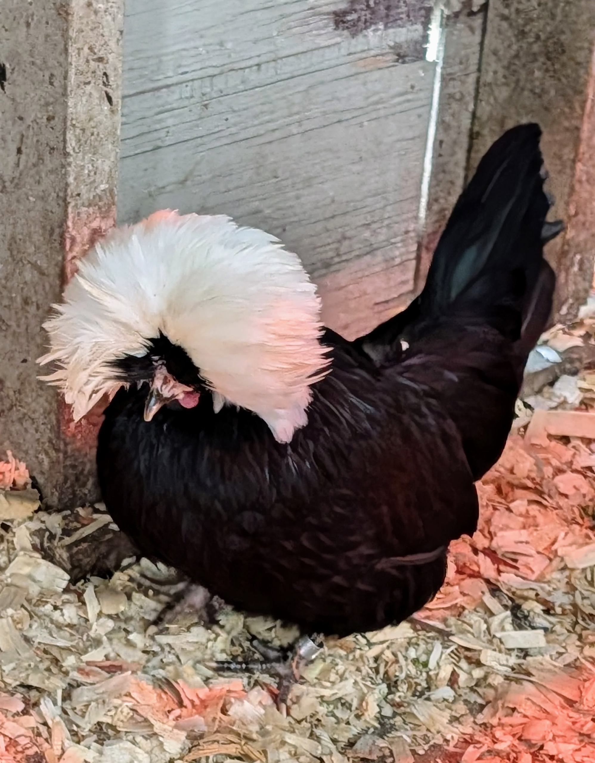 - This is a non-bearded White Crested Black Polish pullet. A pullet is a young hen under one year old.