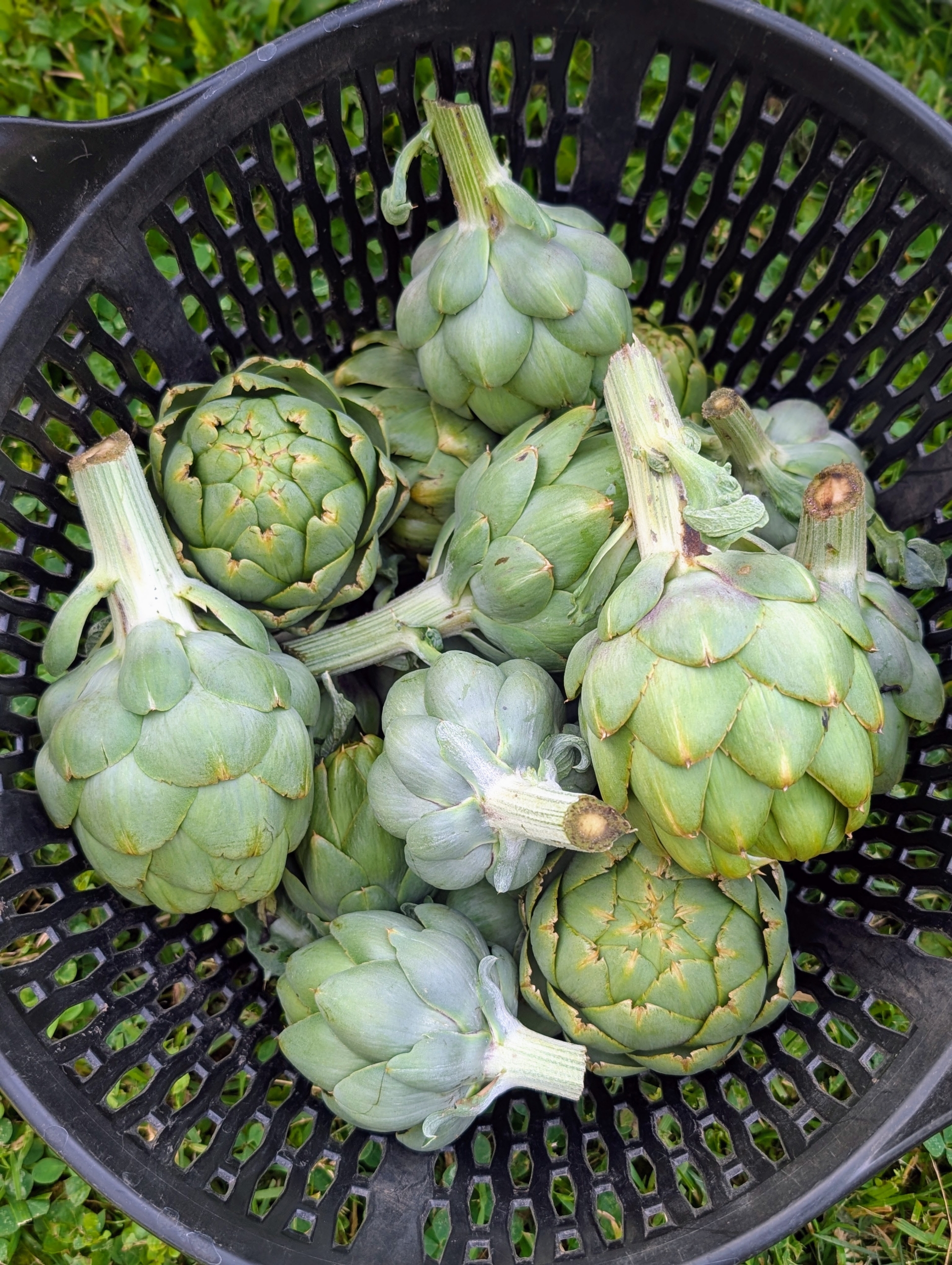 - Artichokes are in season late spring and early summer. The globe artichoke is an heirloom vegetable grown for its tender, edible flower buds. I love artichokes and grow many every year.