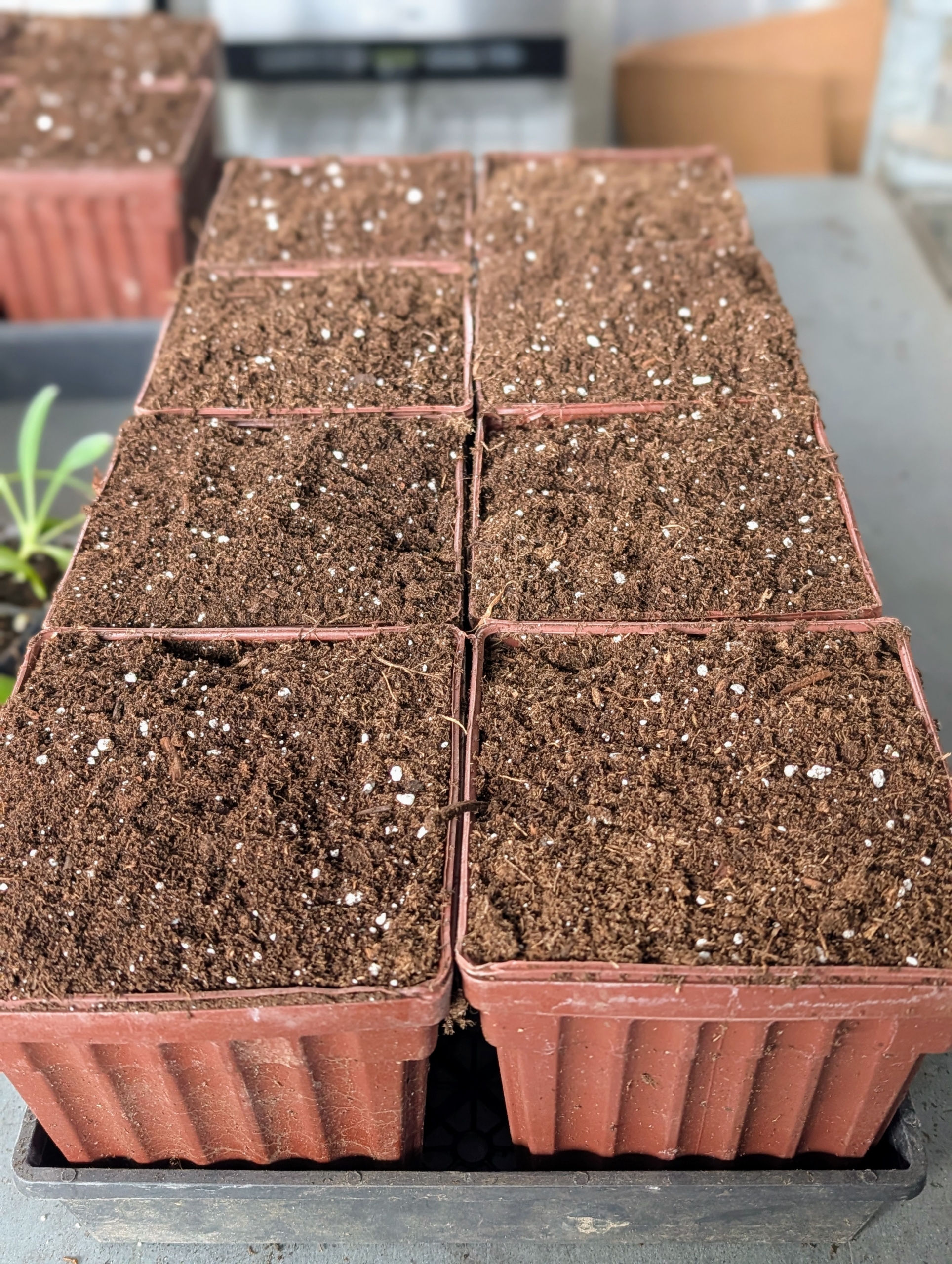 - Ryan fills the pots to the top. A good quality mix designed for seedlings will be fast draining and light. These mixes are formulated to encourage strong, healthy growth in new plants.