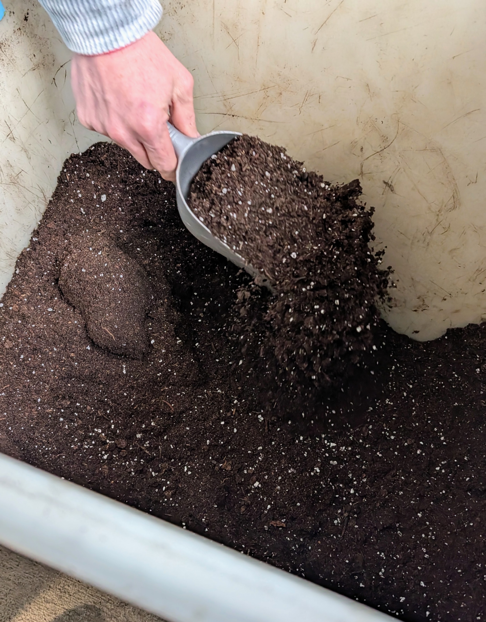 - I use Miracle-Gro Seed Starting Potting Mix.