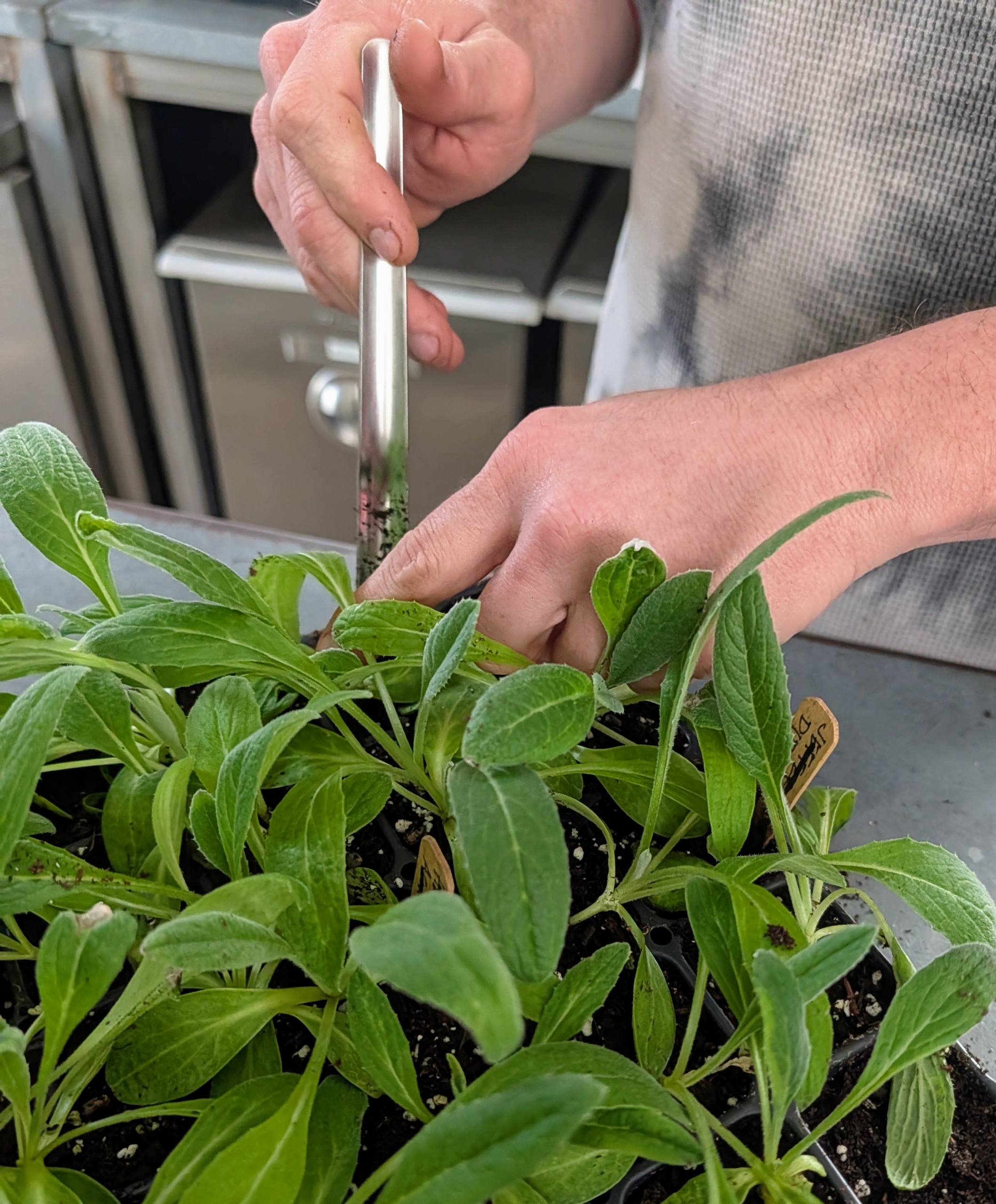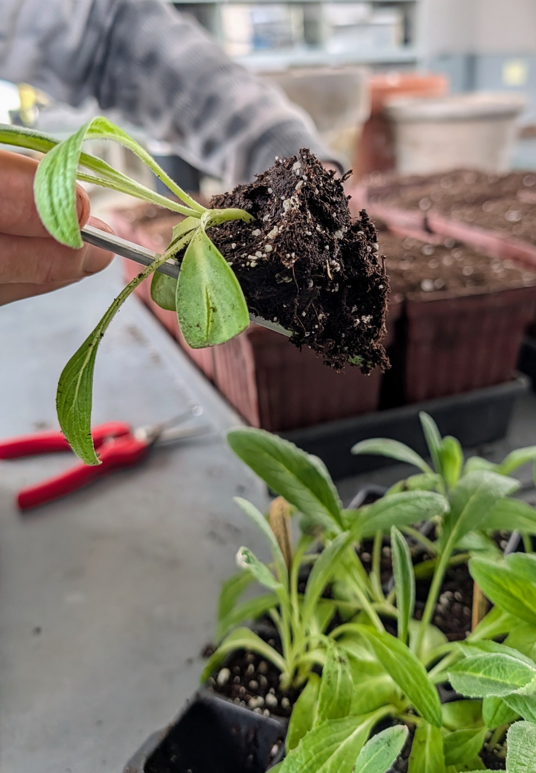 - Using the widger, Ryan carefully removes the seedling from the tray. All of these are in excellent condition.