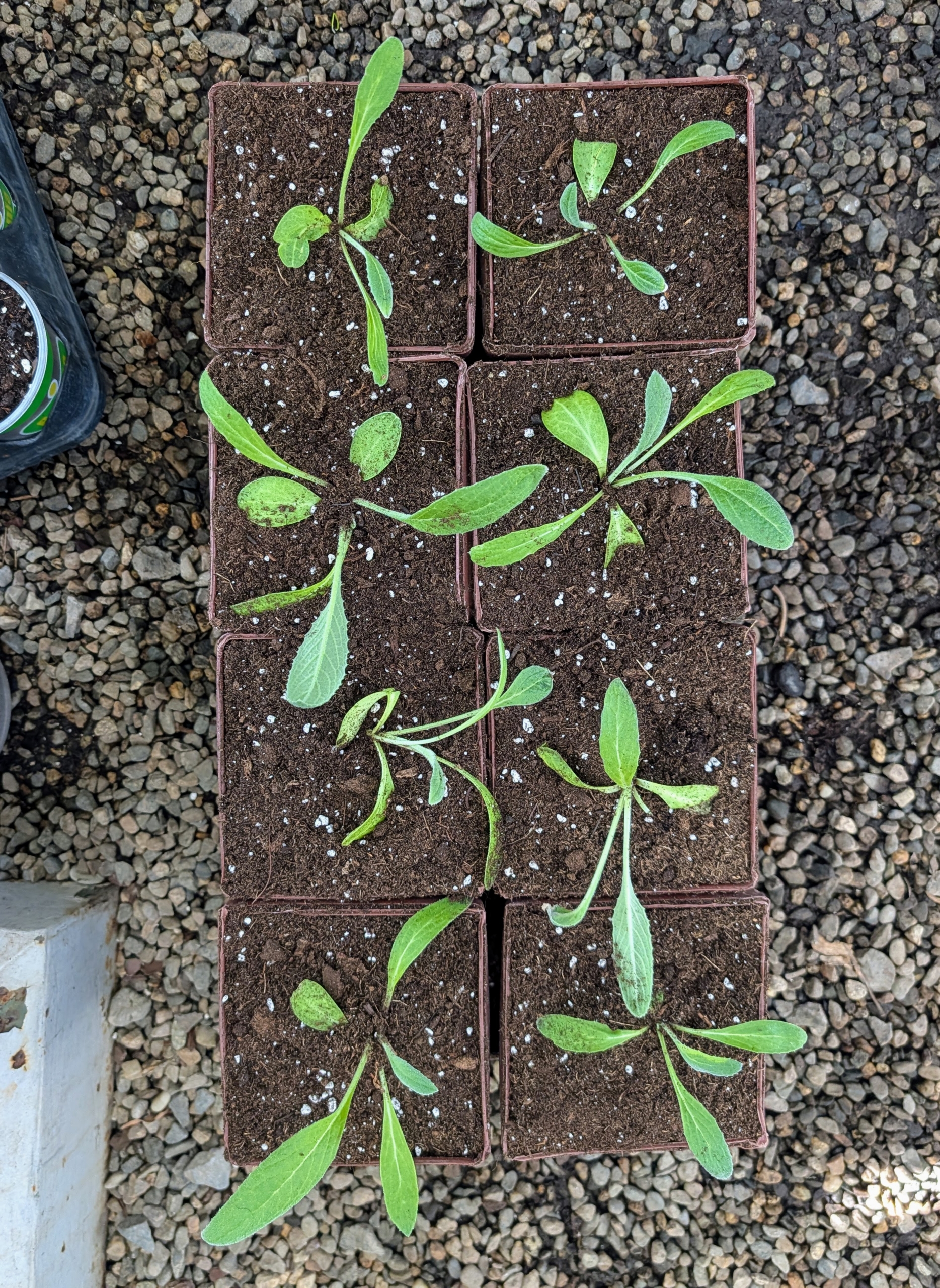 - After a few weeks, the tiny seeds have sprouted and grown enough to move into bigger containers.
