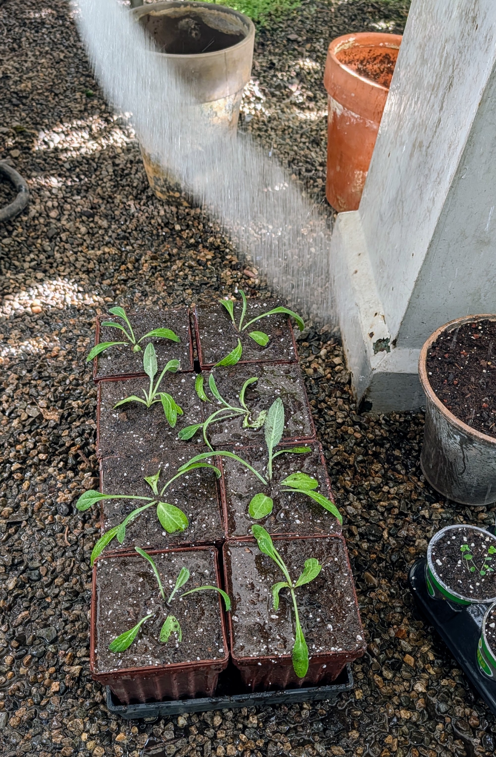 - The pots are watered thoroughly and fed next door in the greenhouse.