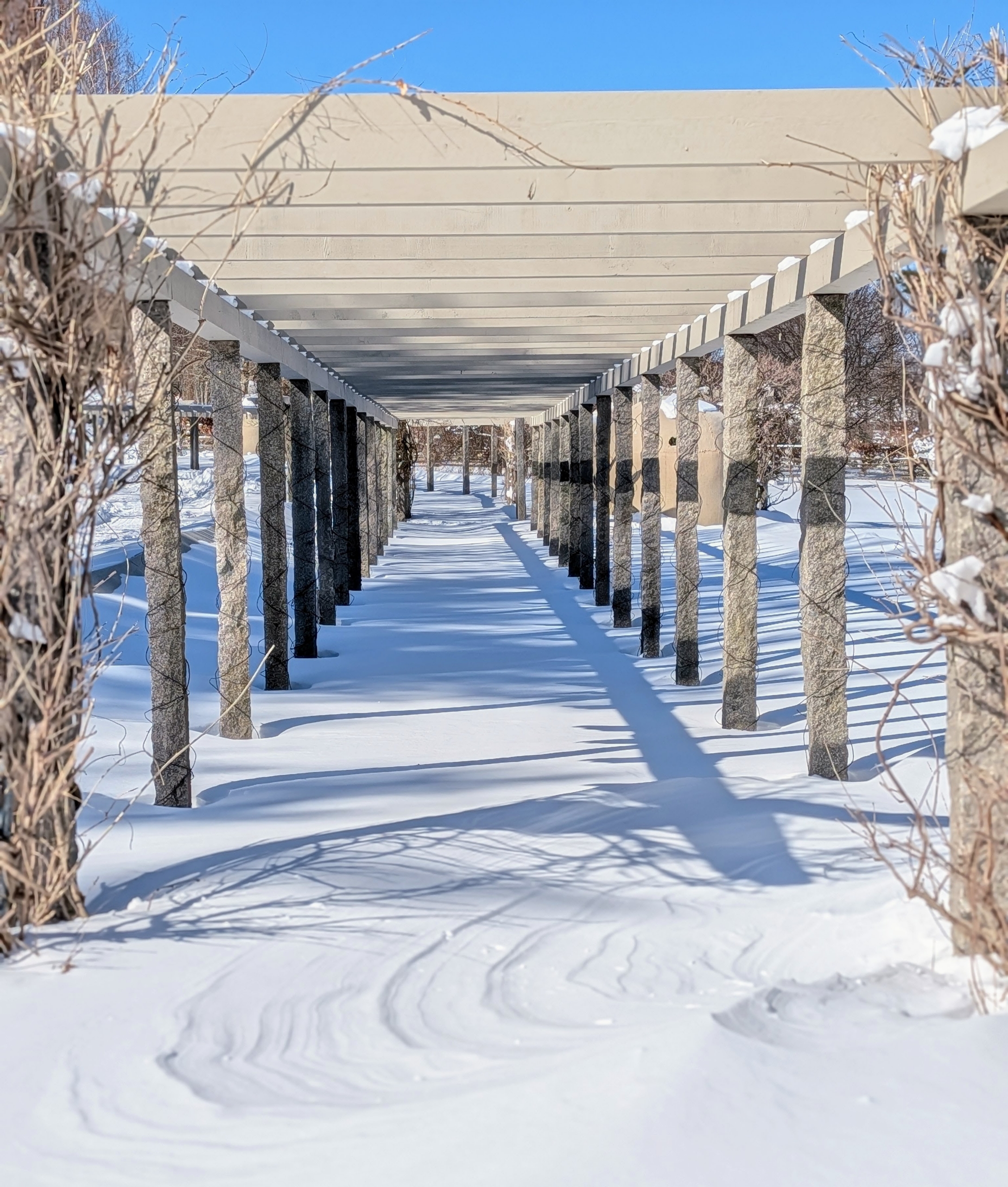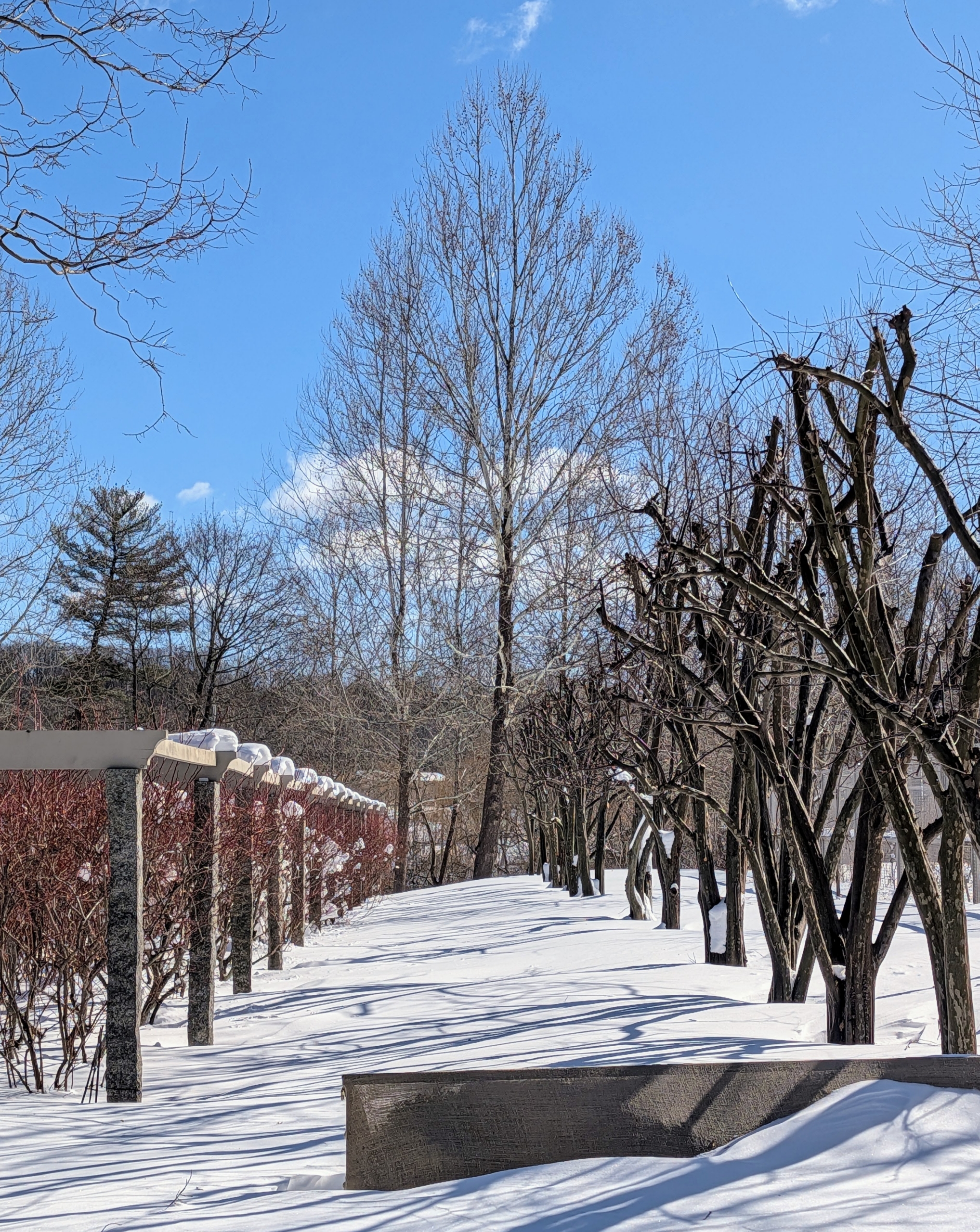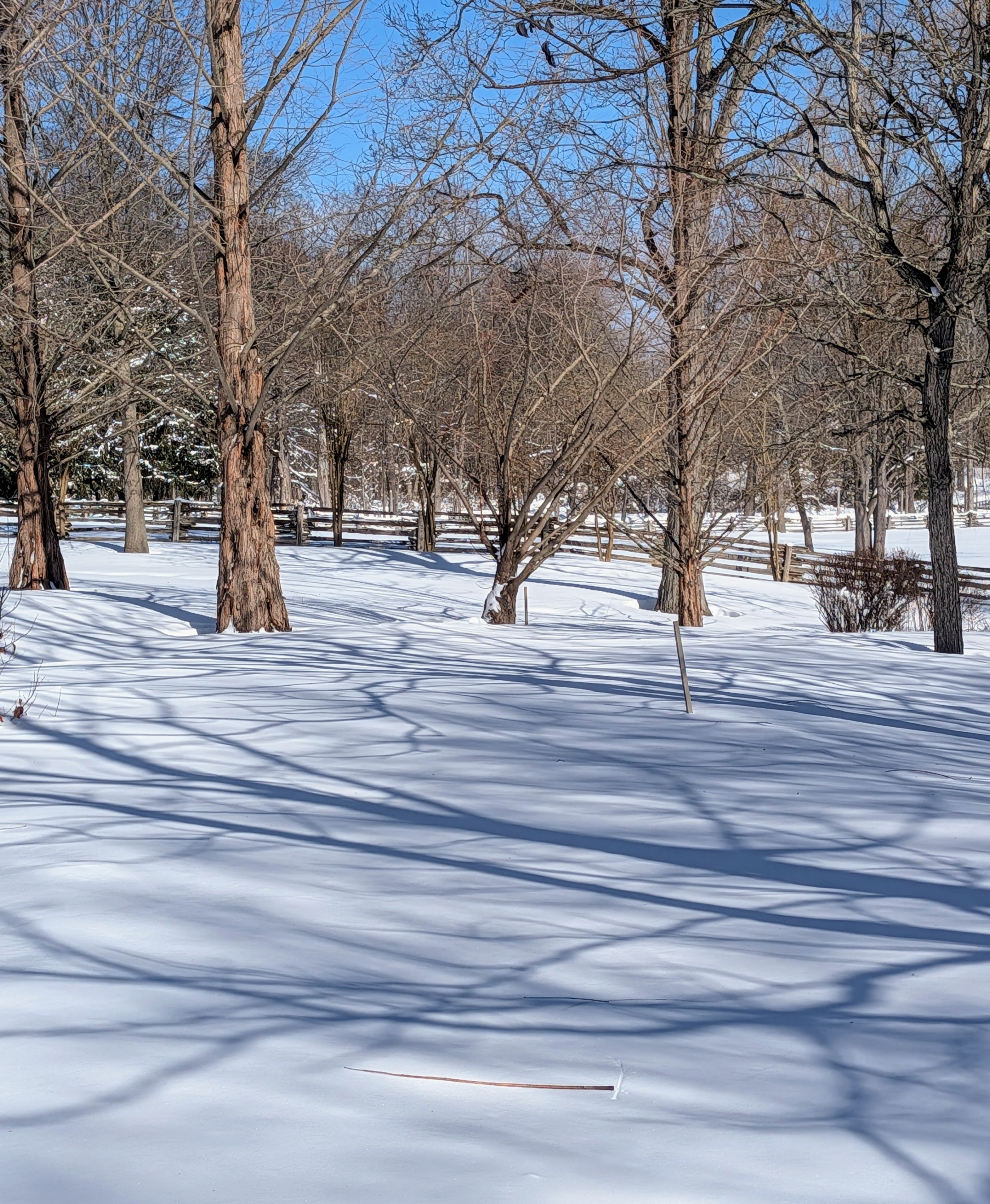 - Snow shadows of the trees and the many branches could be seen all over the grounds.