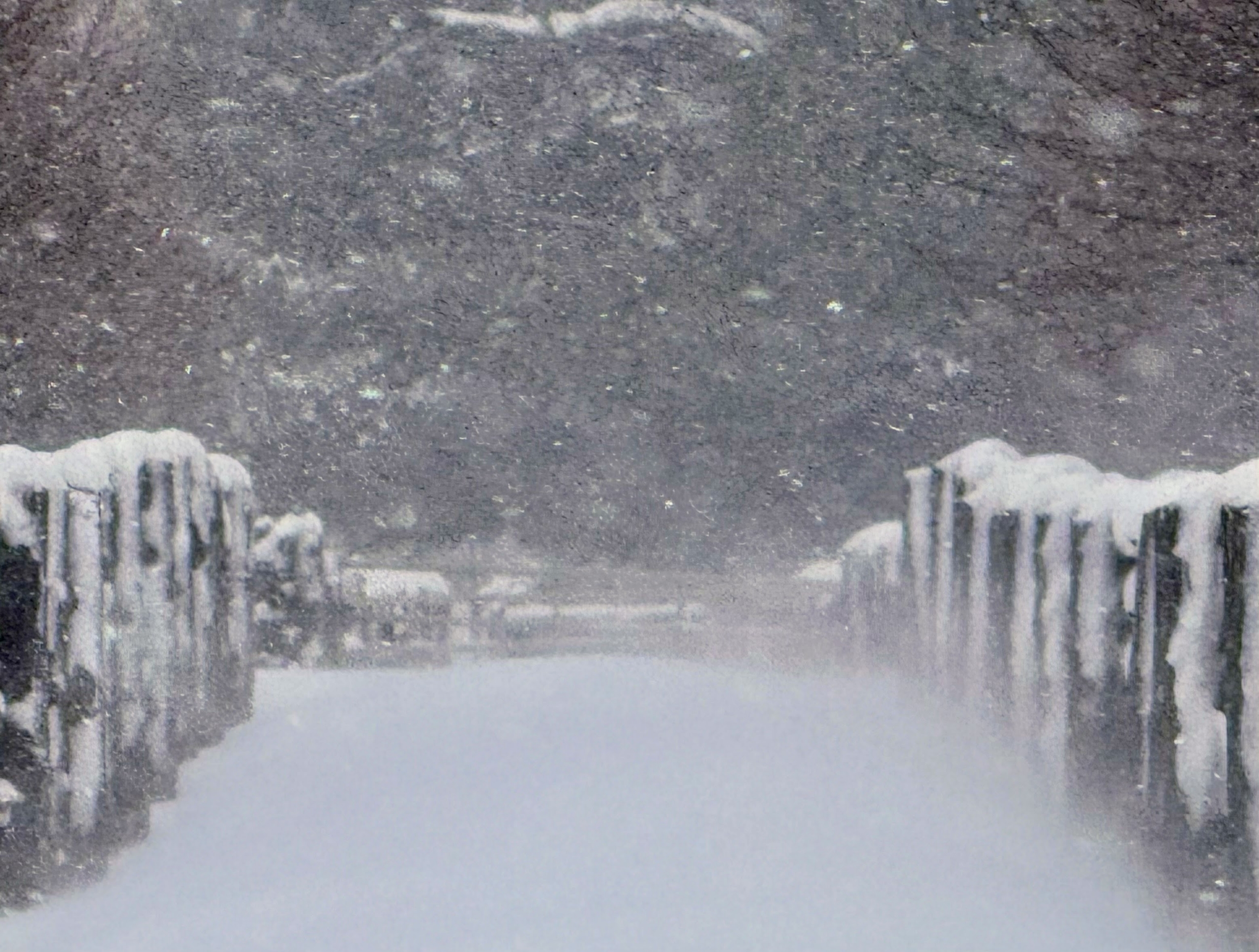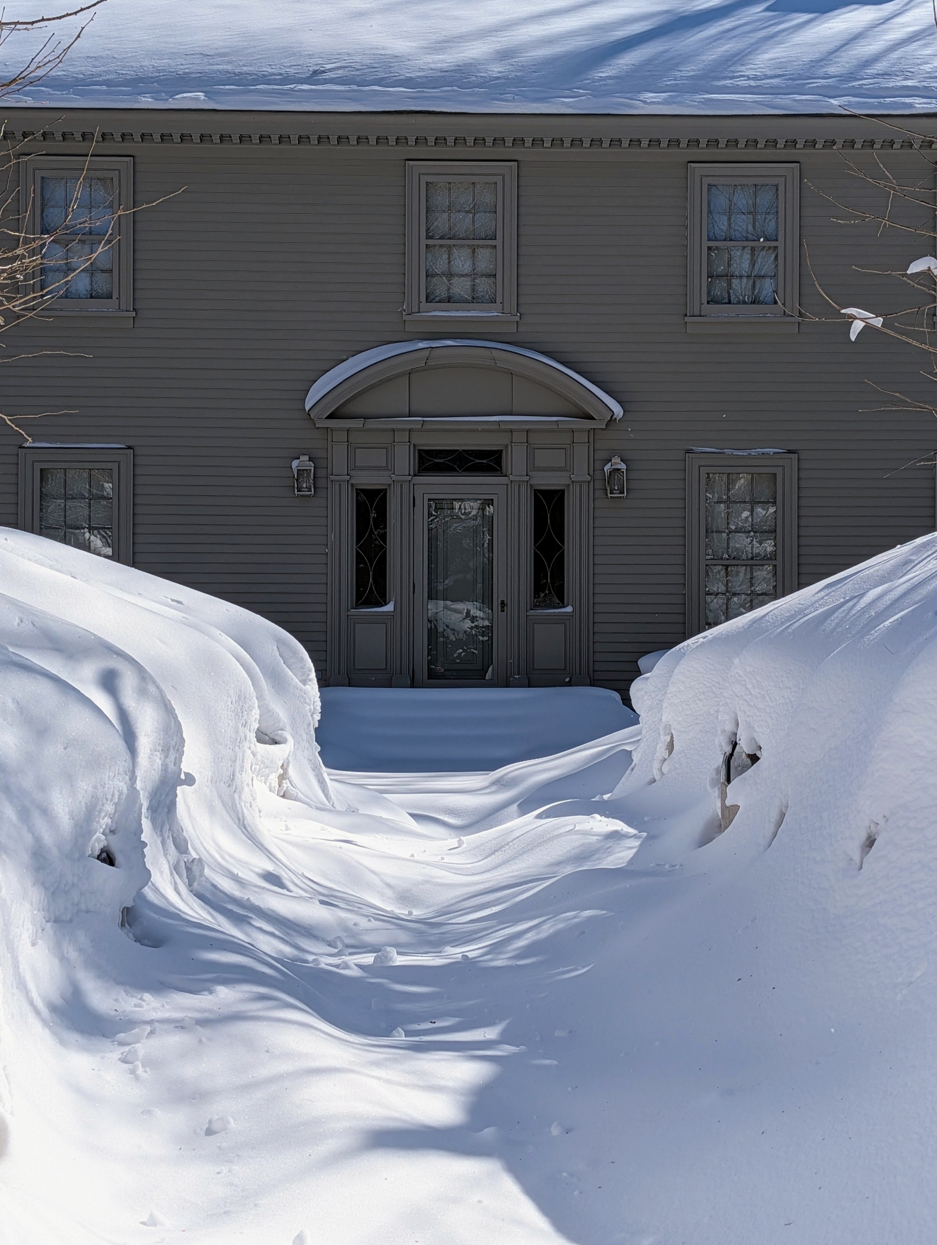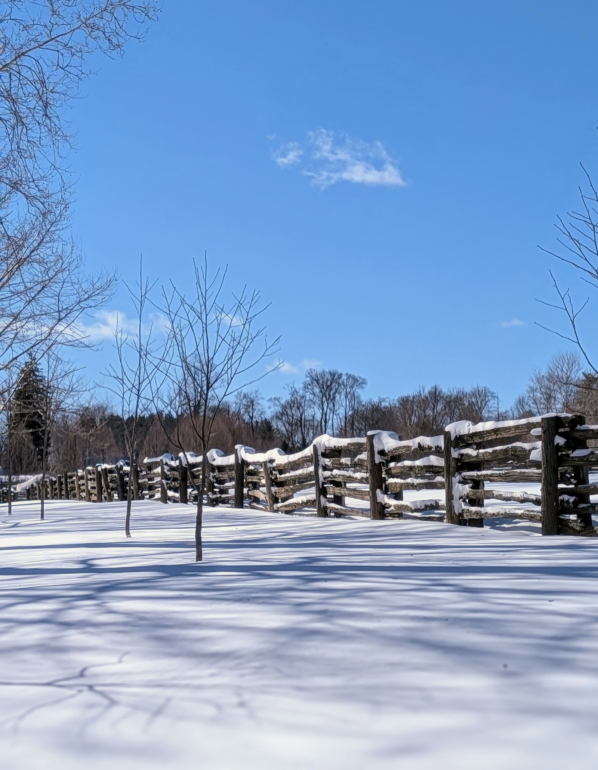 - Snow shadows of the trees and the many branches could be seen all over the grounds.