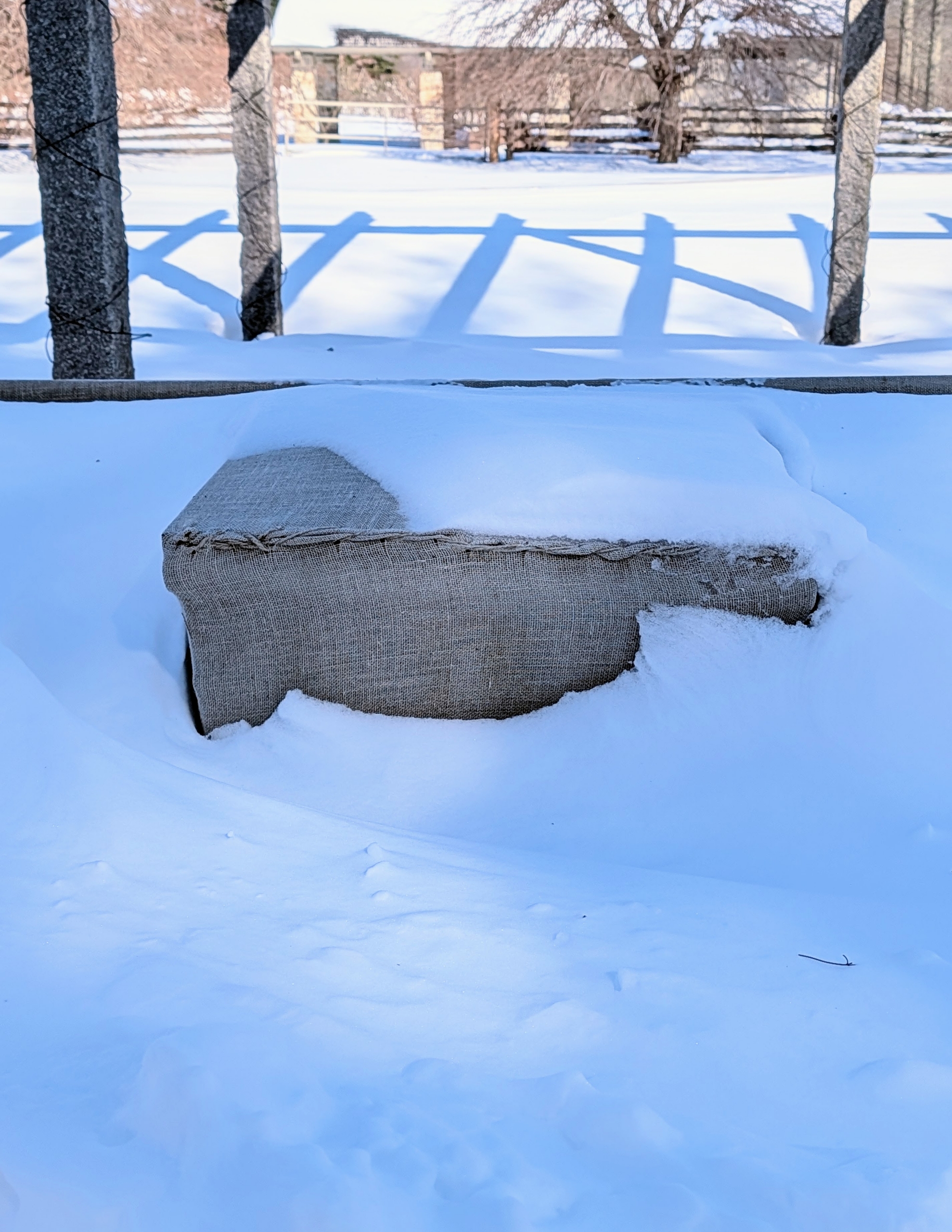 - Do you know what this is? Buried under nearly three feet of snow is a burlap covered planter.
