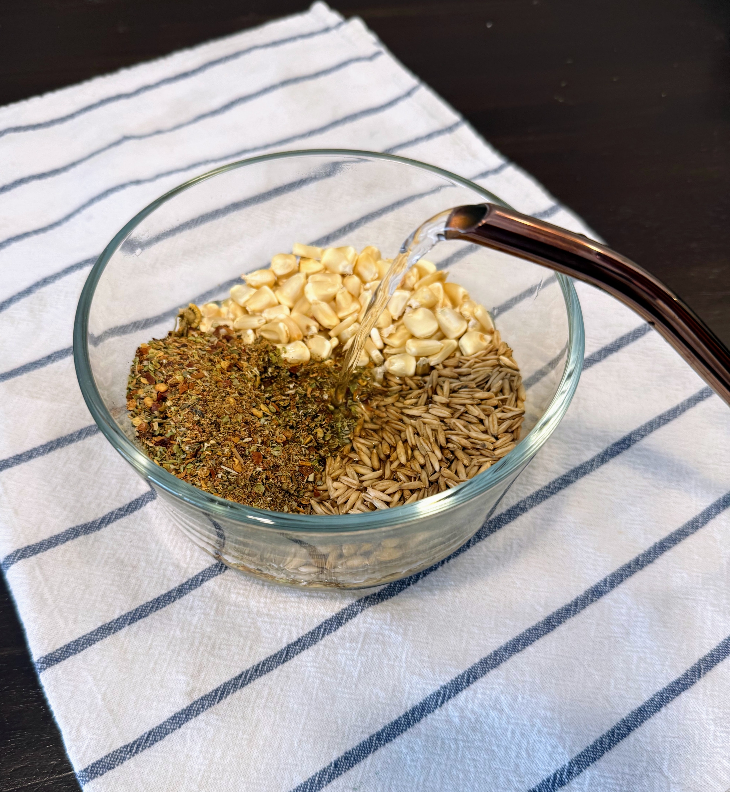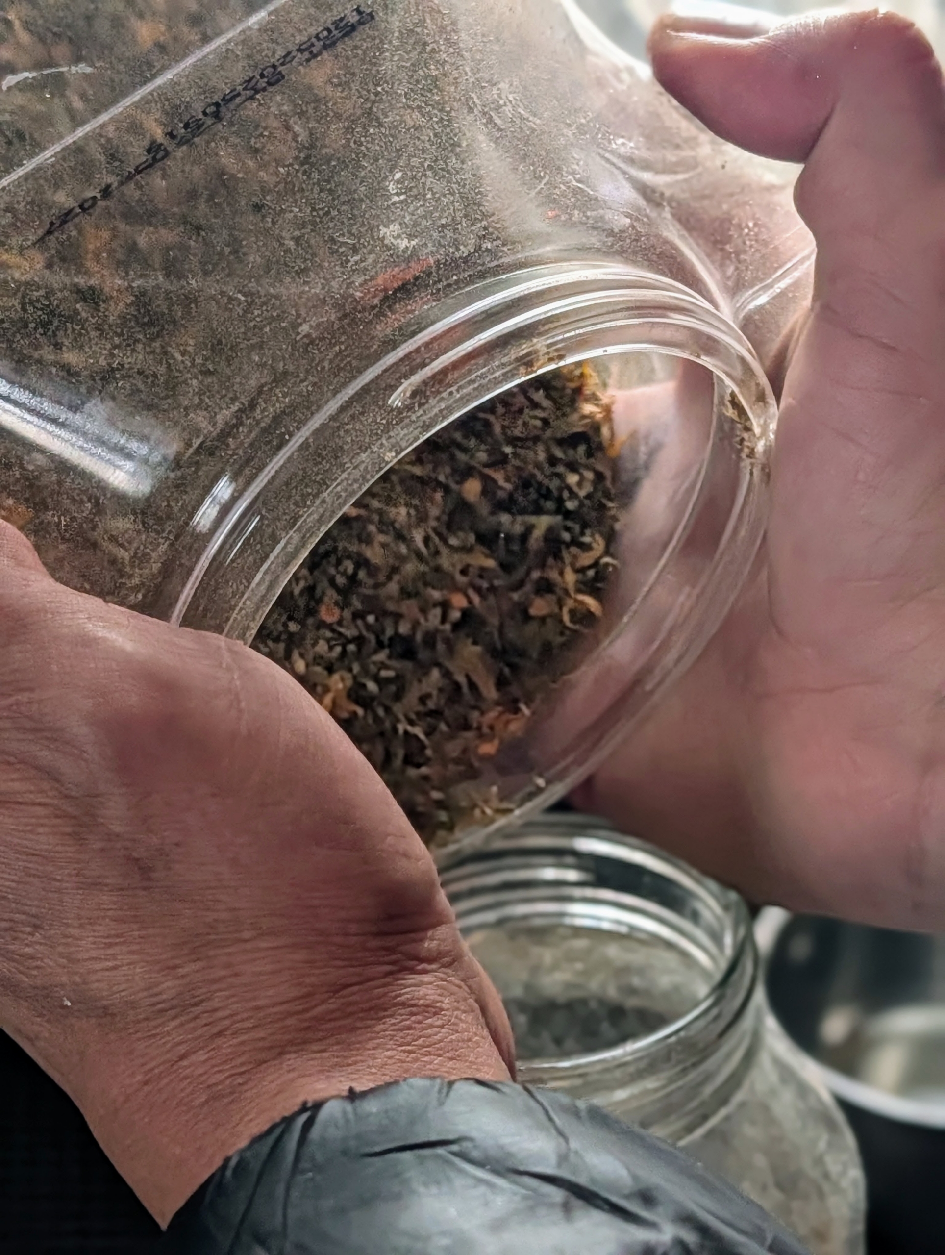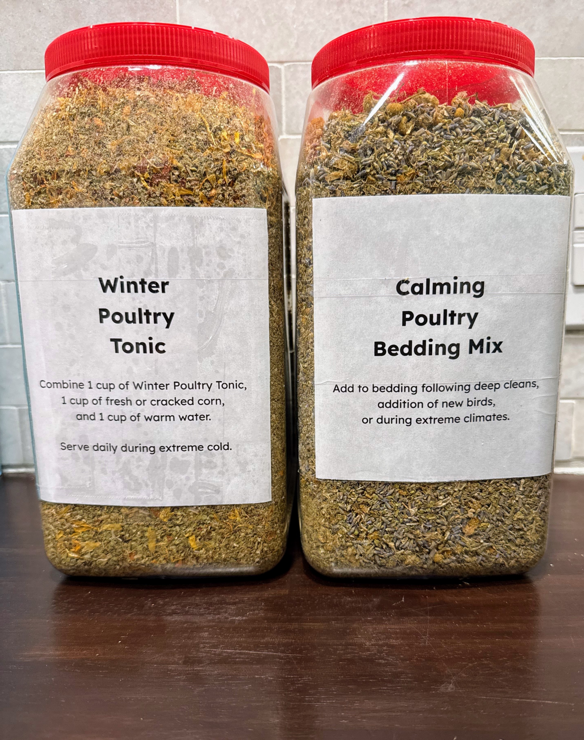 - My neighbor and friend, Gregory Goodwin, also lives on a farm and cares for many animals. He creates these tonics to help his birds through the season. He saves some to give as gifts and recently dropped off some at my farm to try.