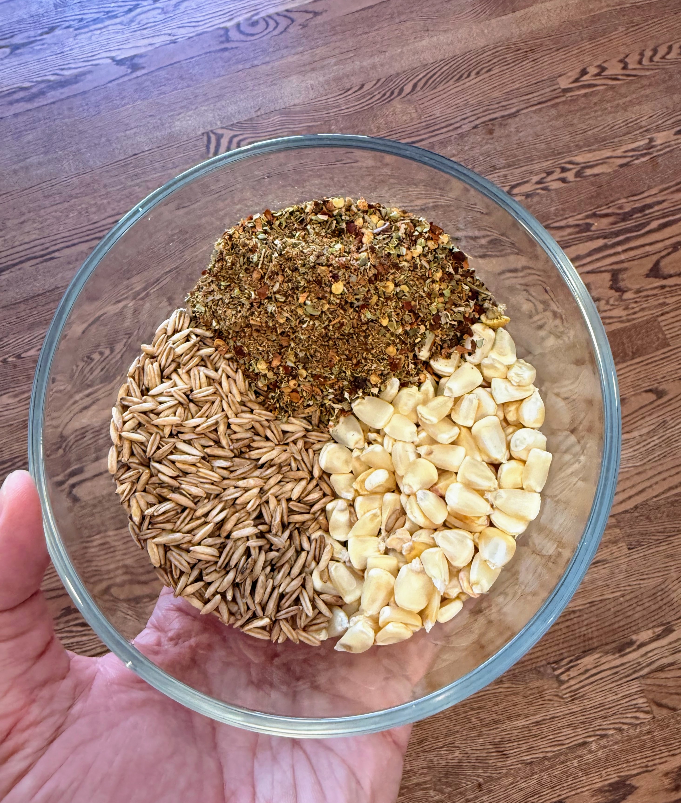 When conditions are extreme, it's important that my crew checks the animals several times a day to ensure they are all warm and comfortable. When it comes to my chickens, I make certain they are housed properly, fed all the best, most nutritious foods, and have enough room to roam and range happily in their pens. This year, I felt they needed extra support for the bitter cold. My neighbor, Gregory Goodwin, who shares my passion for raising chickens, makes his own feed and bedding mixes to keep his birds calm and well-nourished during winter's coldest days. He shared some with me and the flocks are loving it.