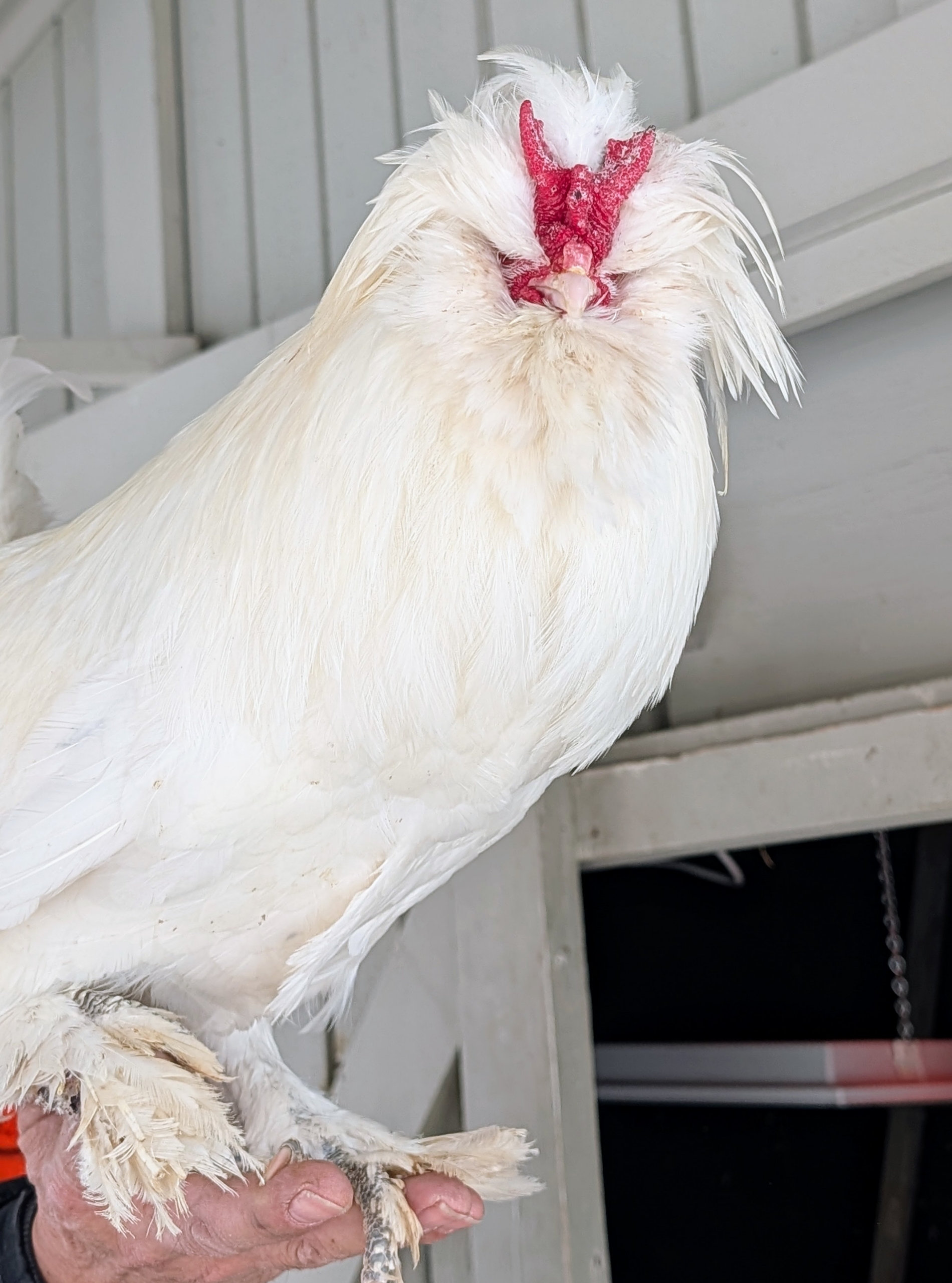 - This is a White Sultan Rooster – one of the birds I got from this year’s Northeastern Poultry Congress in Springfield, Massachusetts. He is doing well adjusting to the new environment despite the winter cold.