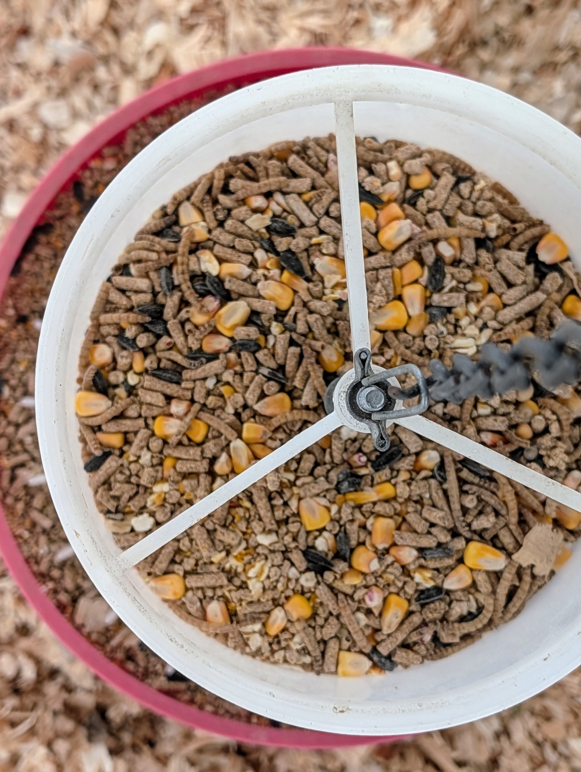 - Cesar pours generous amounts into their feeders and mixes it with their regular feed.
