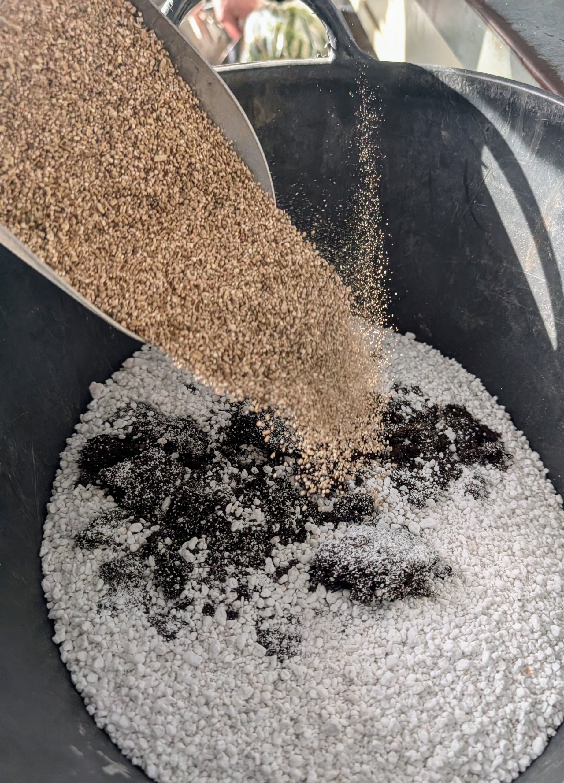 - Ryan and I also like to create our own mix to add more of the elements preferred by these plants. Ryan adds more perlite, a lightweight, porous volcanic glass used to improve aeration and drainage in soil and other plant mixes.