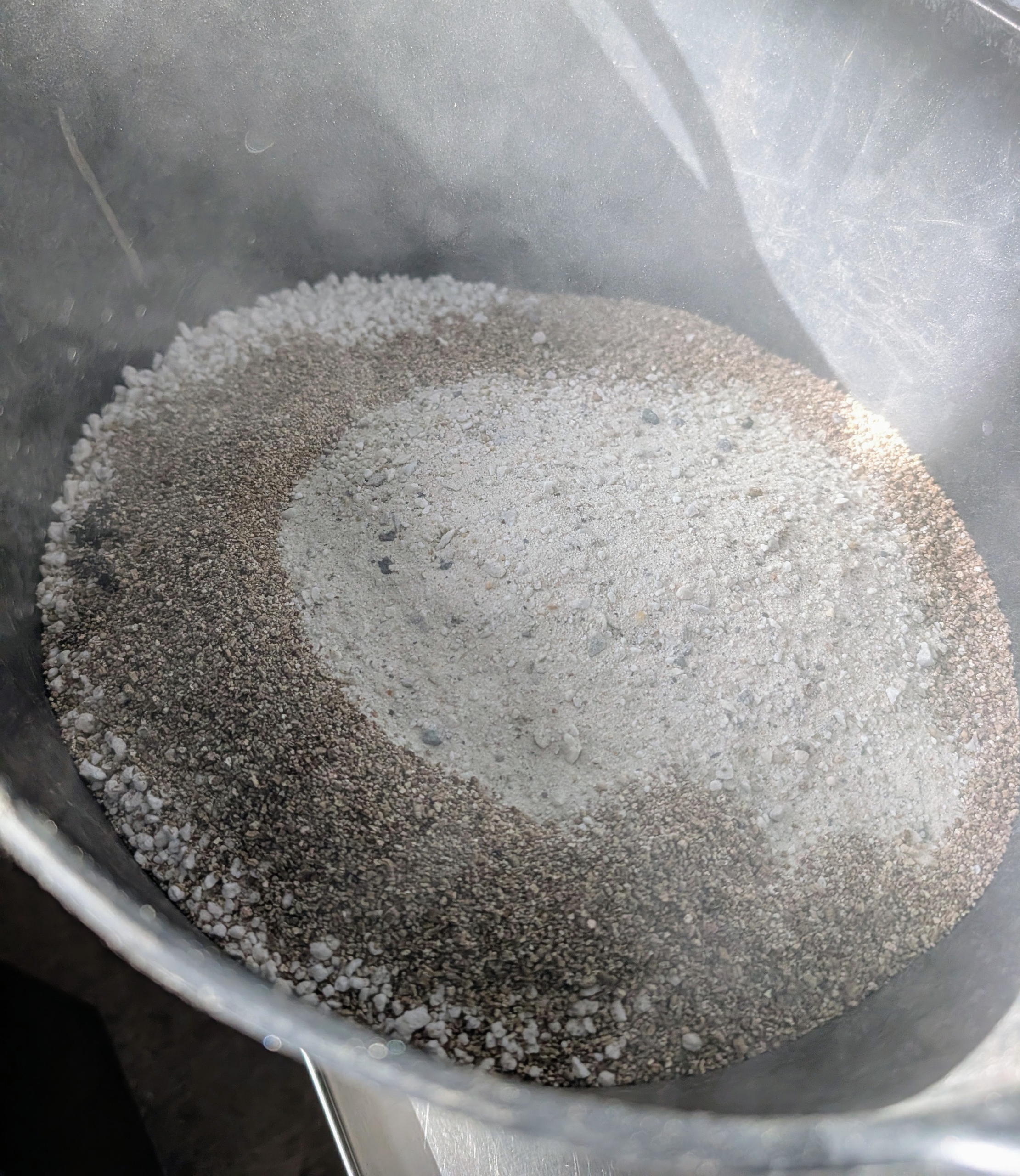 - And then he adds some horticultural sand, a very gritty sand made from crushed granite, quartz, or sandstone. Horticultural sand is often known as sharp sand, coarse sand, or quartz sand.