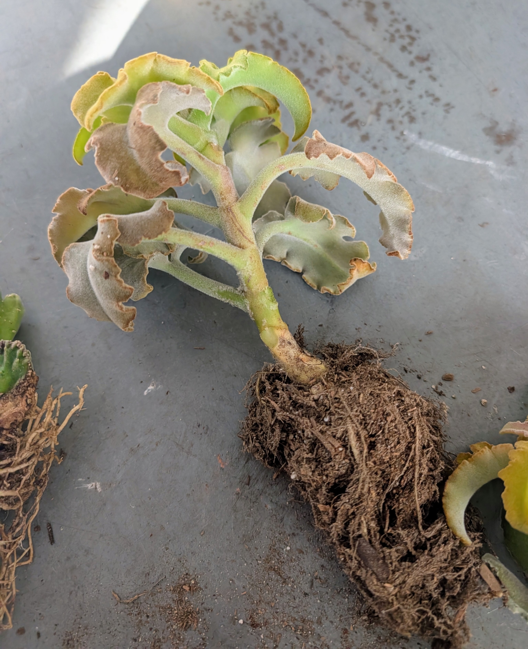 - These succulent roots are light in color, long enough to hold the dirt in the pot, and veiny. Healthy roots will appear moist and will taper in thickness the further they get from the plant.