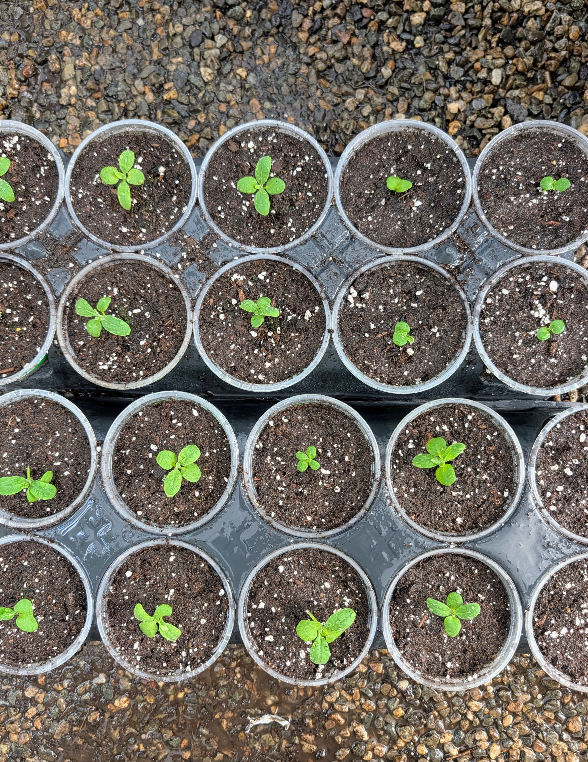 - In this cell, Wendy is removing a weaker seedling. She carefully inspects the seedlings and determines the strongest ones. She looks for fleshy leaves, upright stems, and center positioning in the space. The smaller, weaker, more spindly looking seedlings are removed, leaving only the stronger ones to mature. The stronger specimens will be transplanted into larger cells or pots.