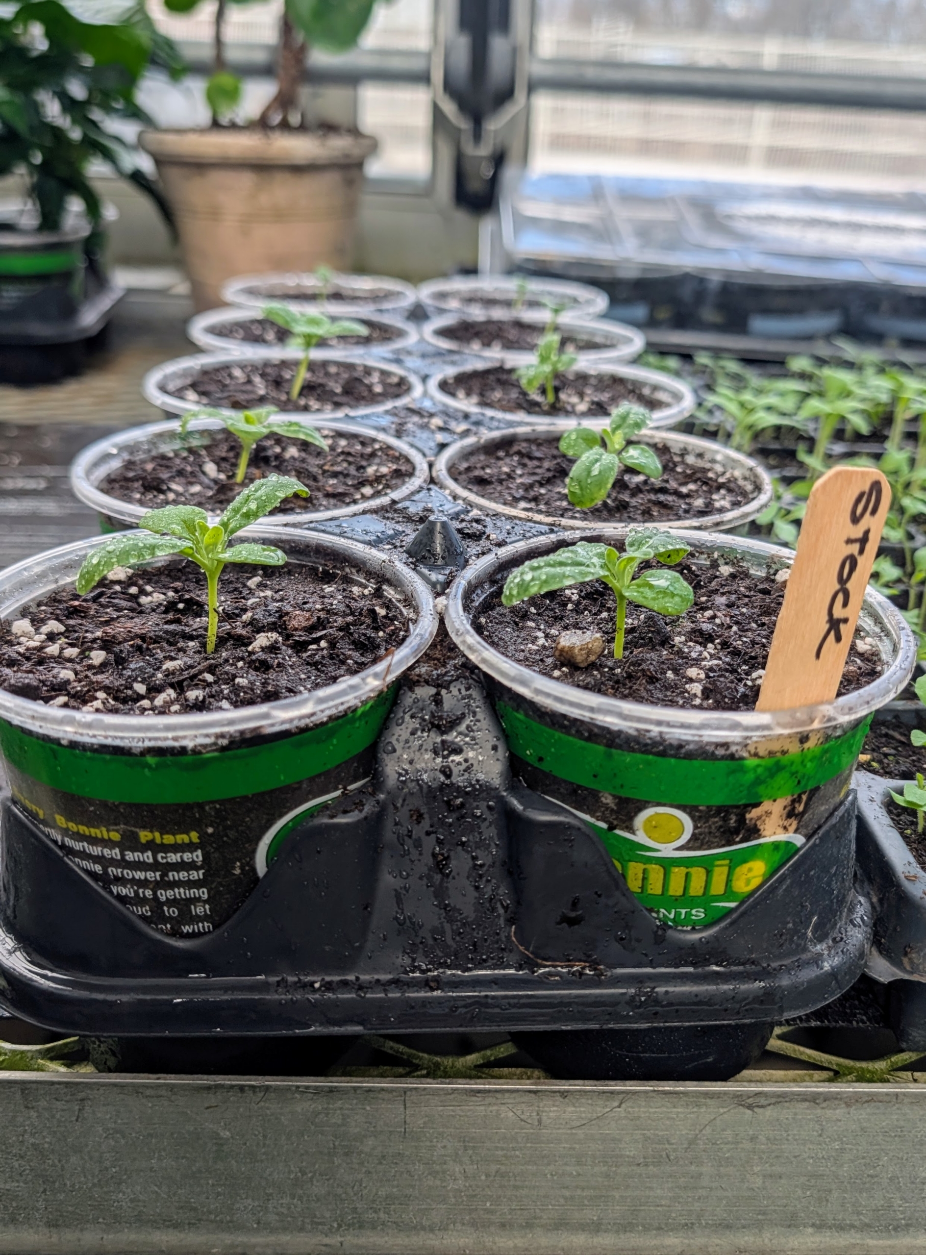 - The tiny seeds we planted just a few weeks ago are already sprouting and ready to move. These seedlings are Stock, Matthiola incana. Stock flowers grow with either single or double blooms in clusters on tall, spiky stems. The colorful flowers are great for attracting pollinators to the garden, such as bees and butterflies.
