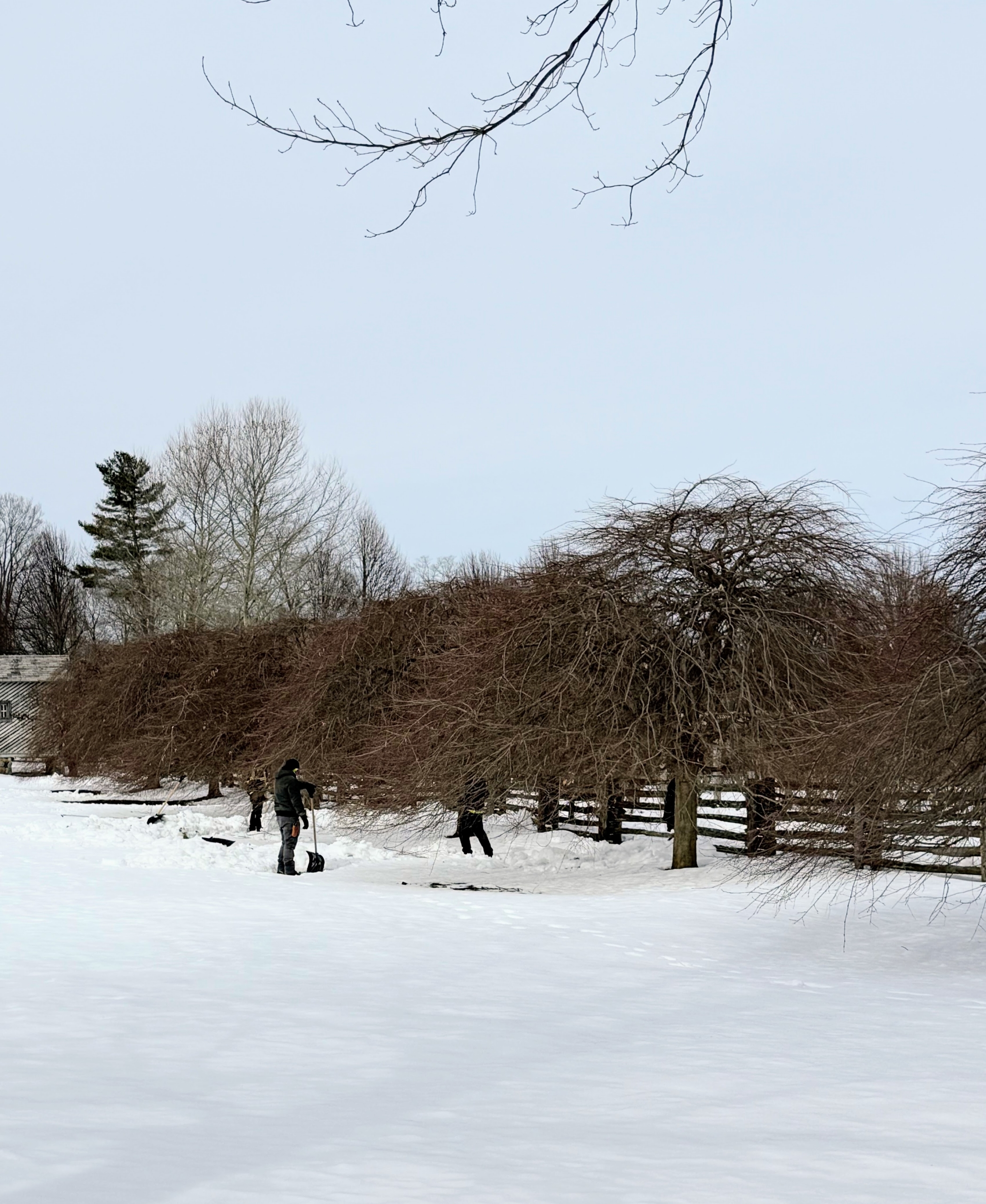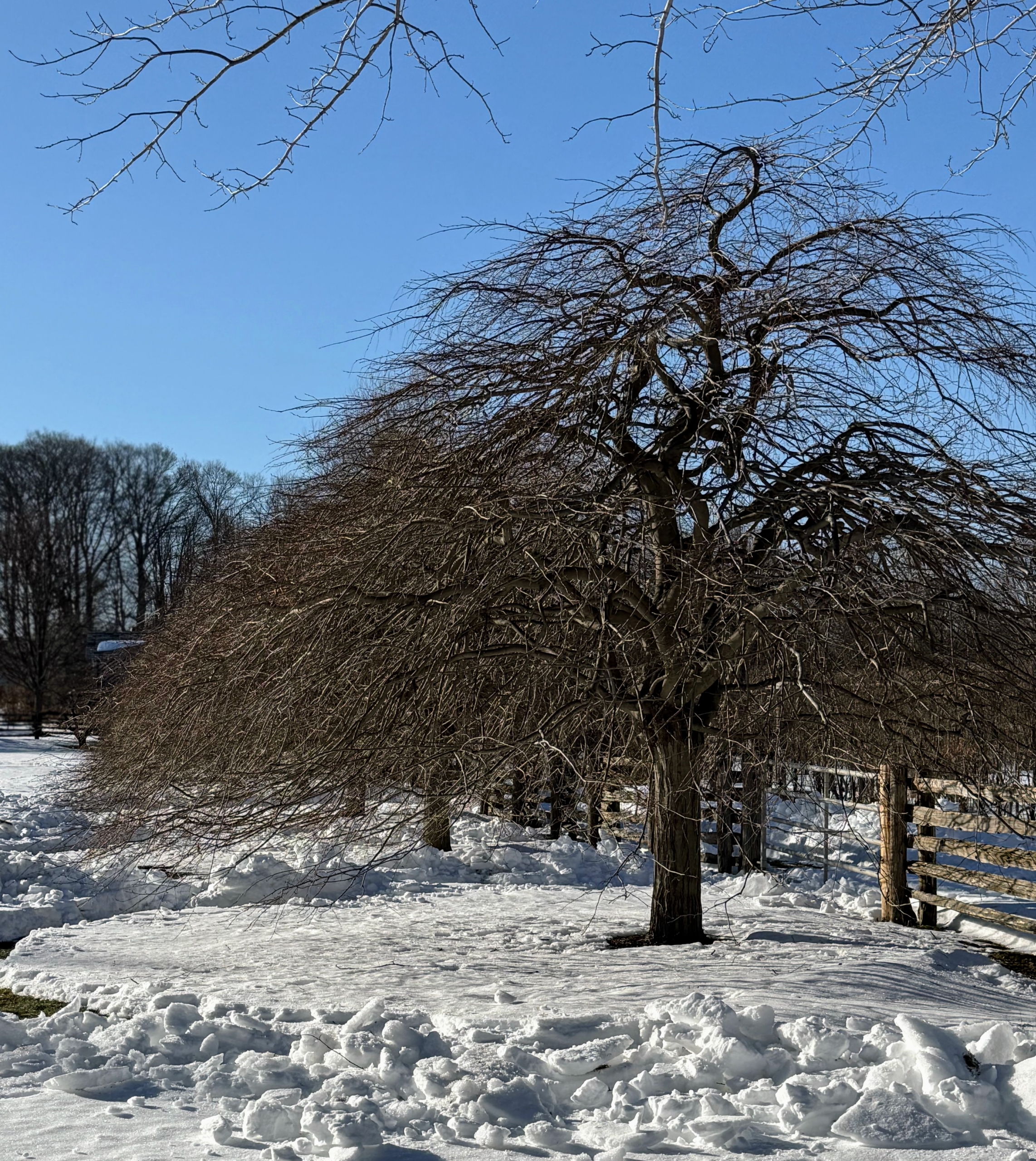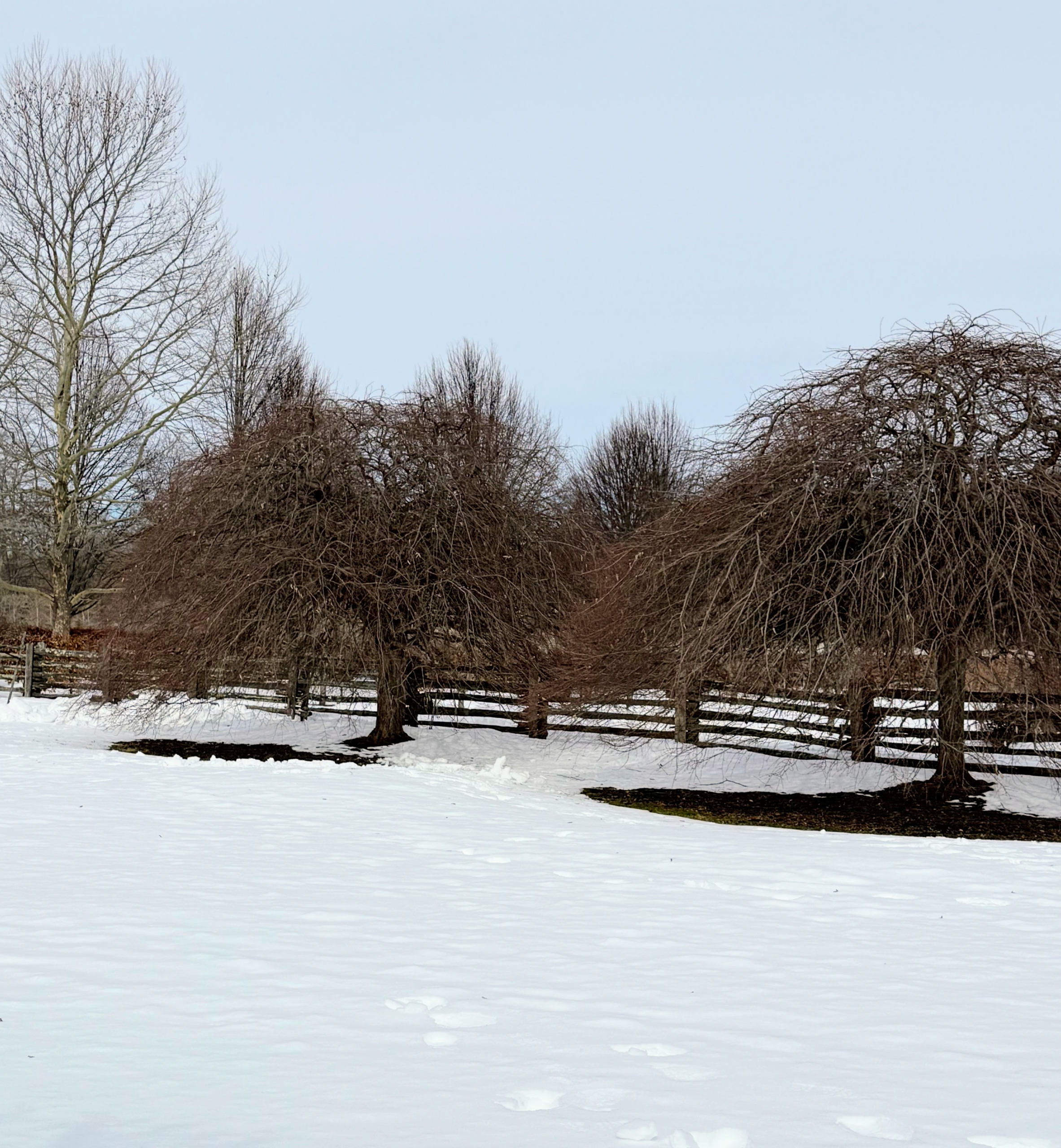 Outdoor winter chores continue at my farm with the grooming of six standard weeping hornbeams.