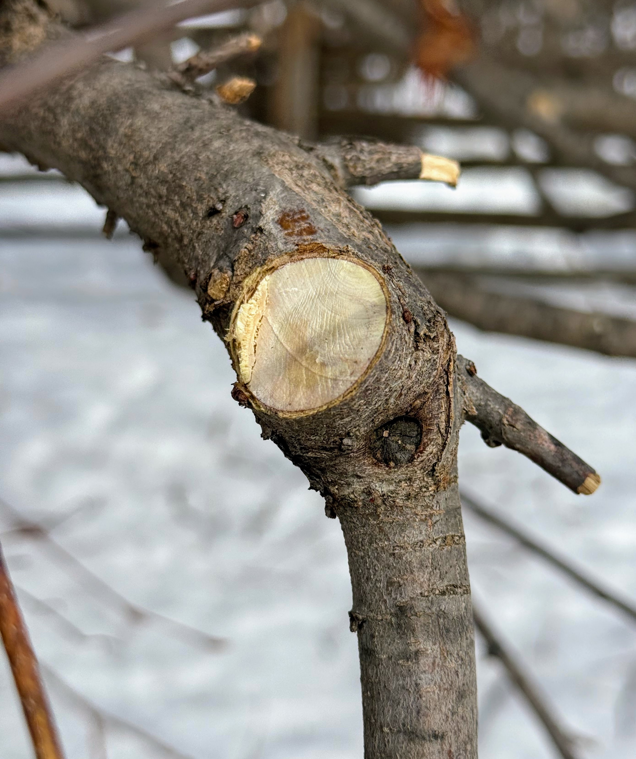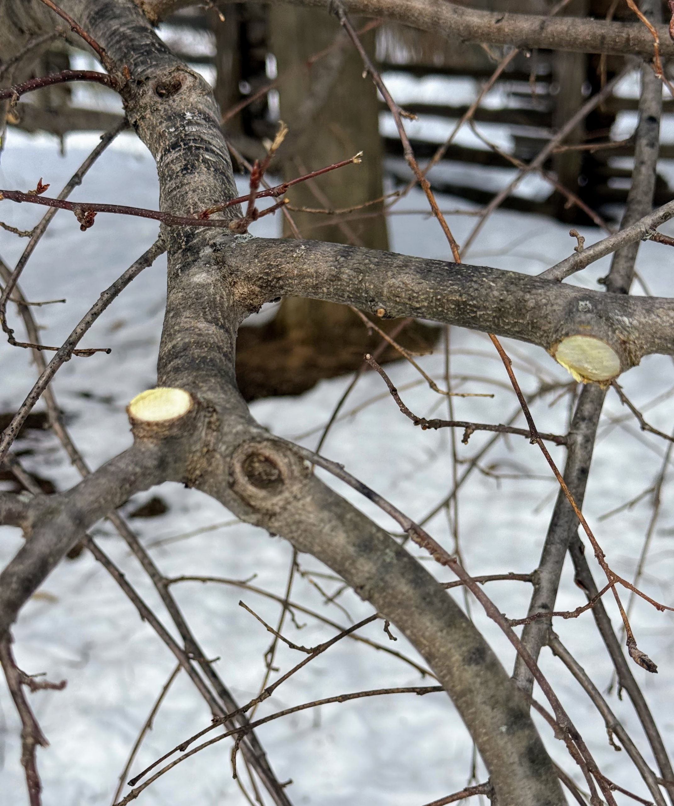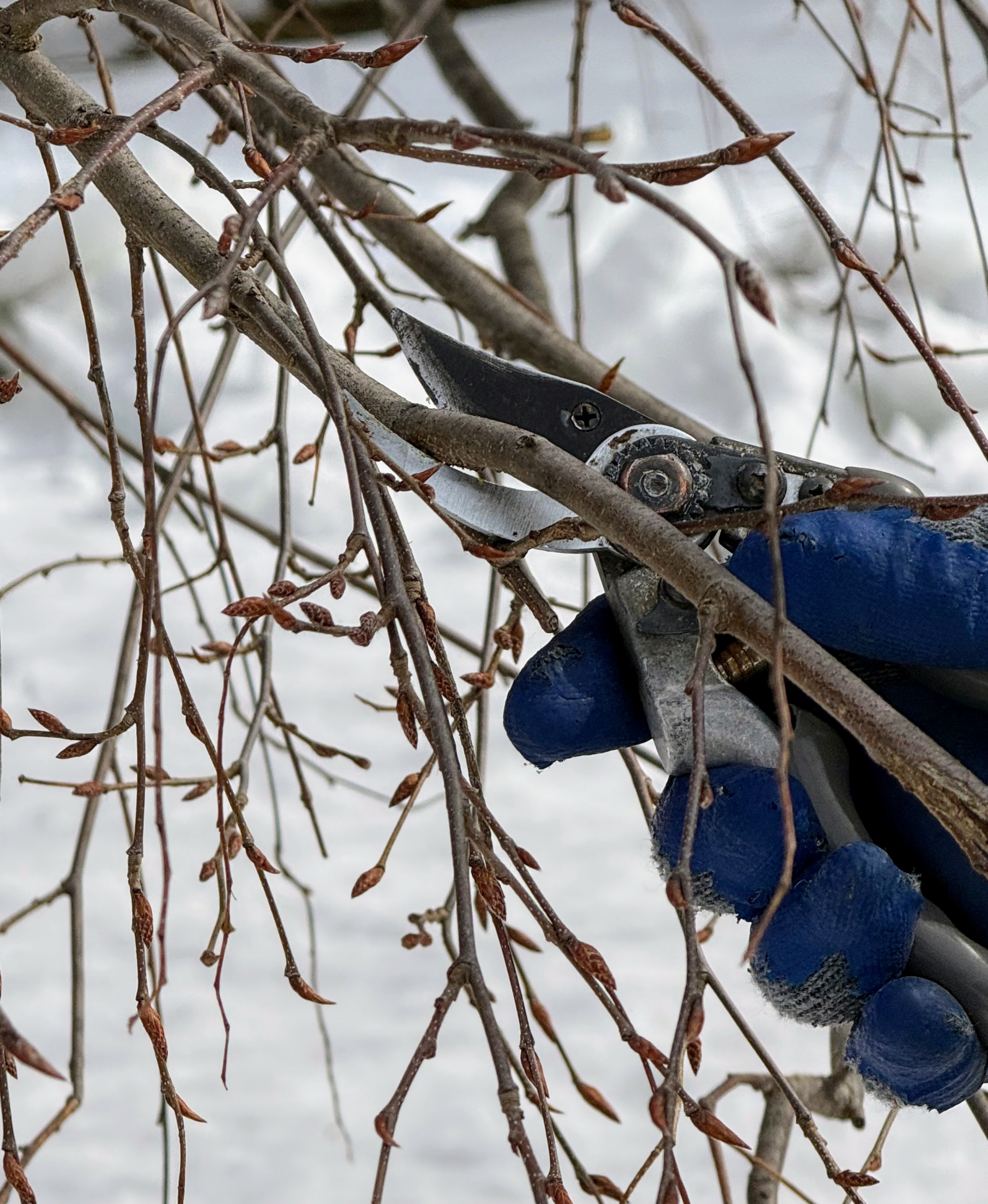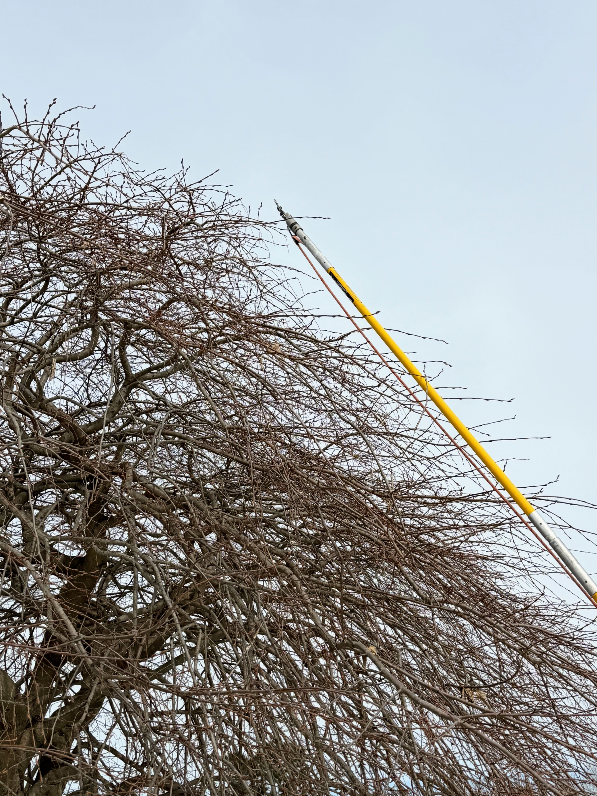 Outdoor winter chores continue at my farm with the grooming of six standard weeping hornbeams.