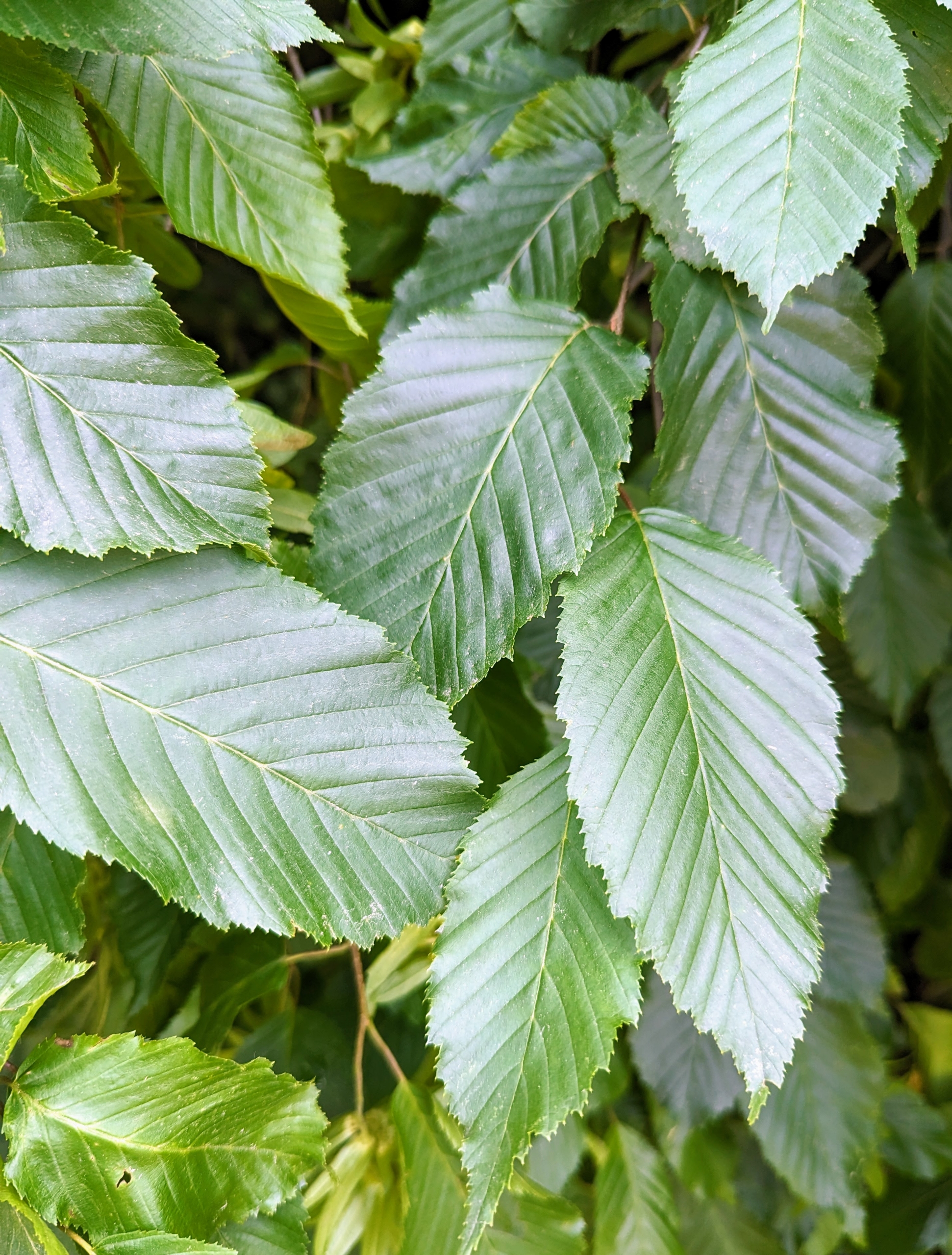 - The leaves are a vibrant green color in the spring and summer. Each leaf has a sharply double serrated edge and a top that tapers to a point.