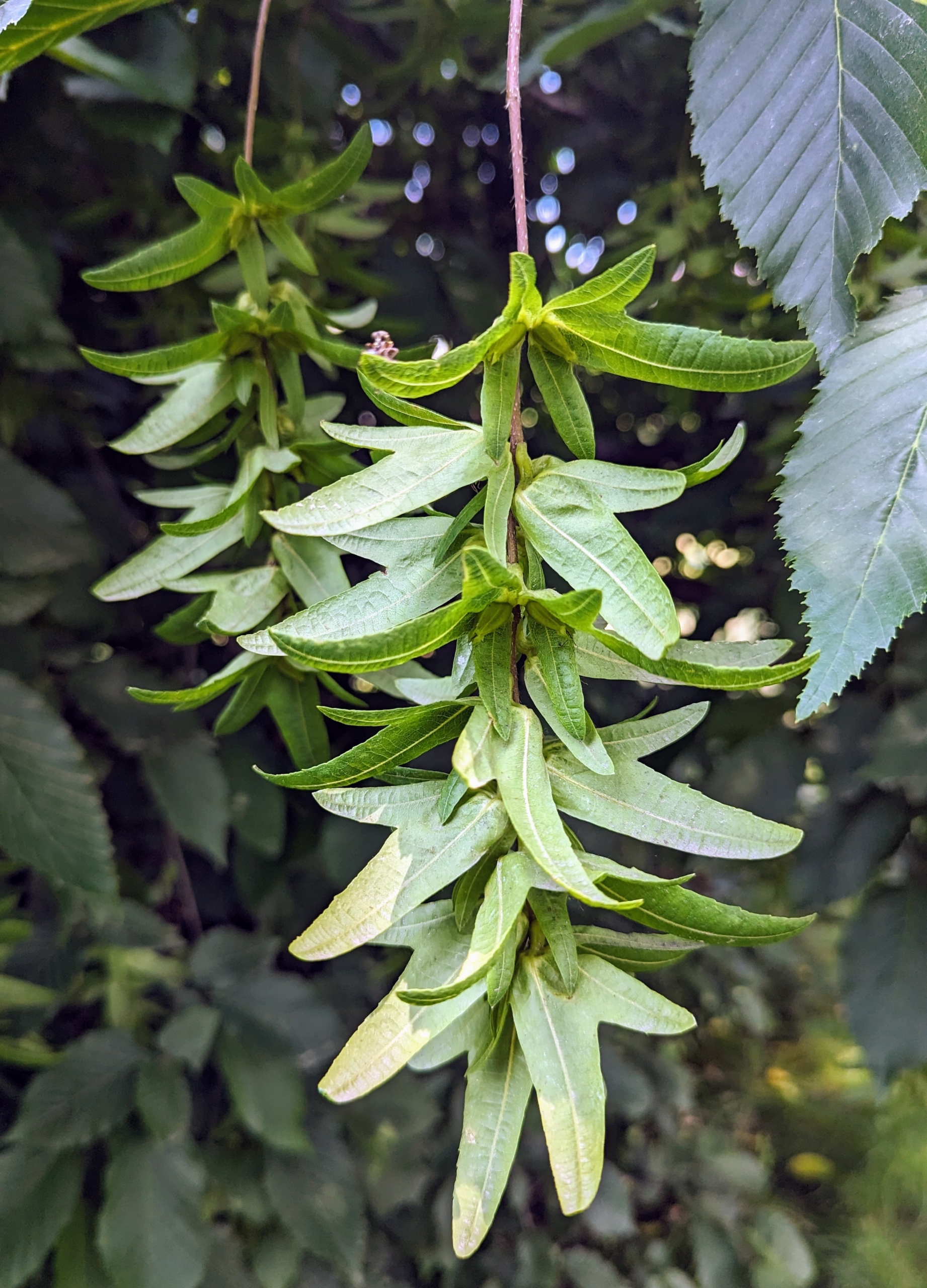 - Because they are deciduous, they lose their leaves in winter, leaving them bare – except for these few leaves which have held strong through the season.