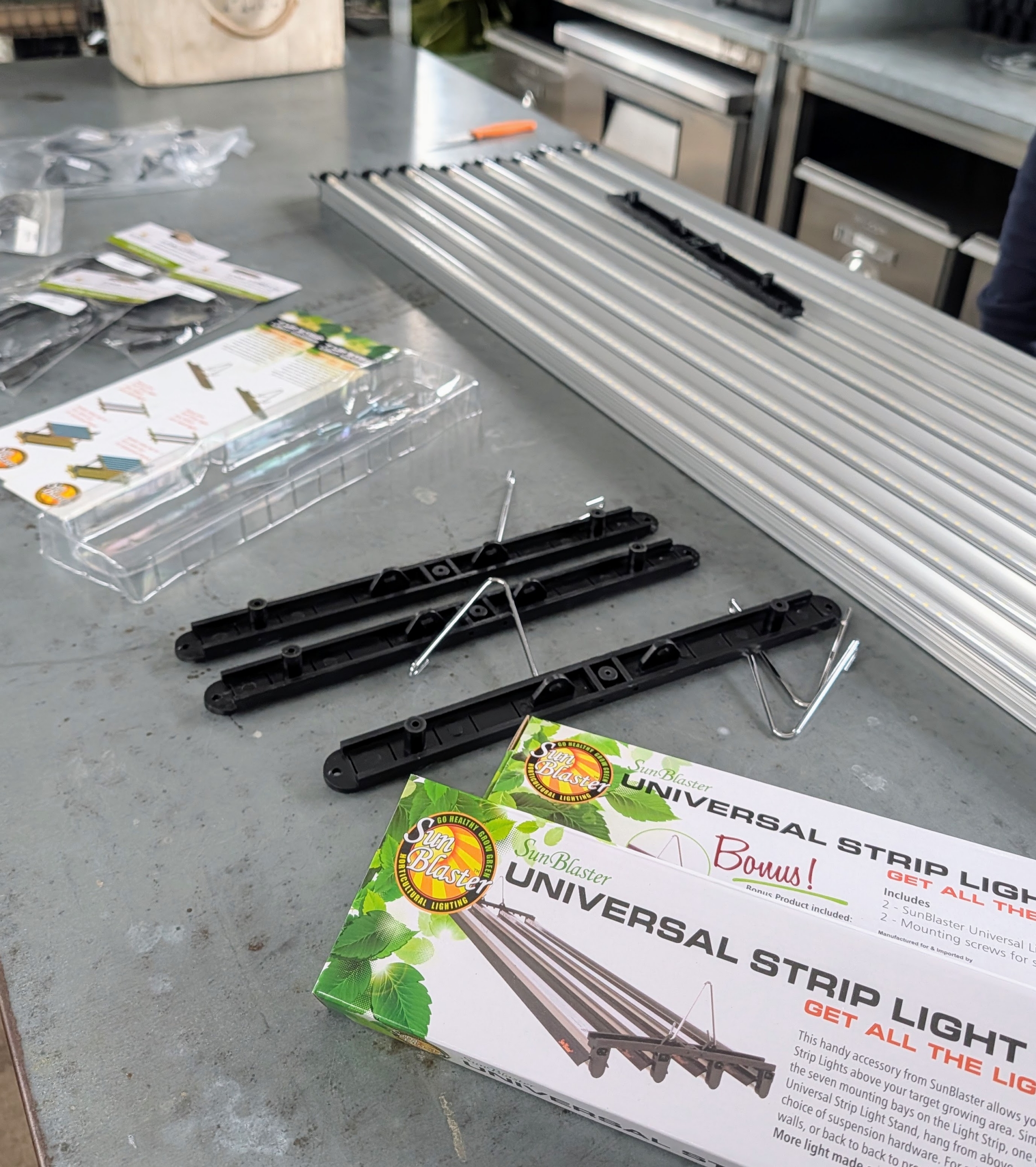 - Here in my head house, Ryan is assembling this LED Propagation Rack Kit from Johnny’s. It includes eight 48-inch LED strip lights, connecting brackets, four hangers, link cords, and a power cord.