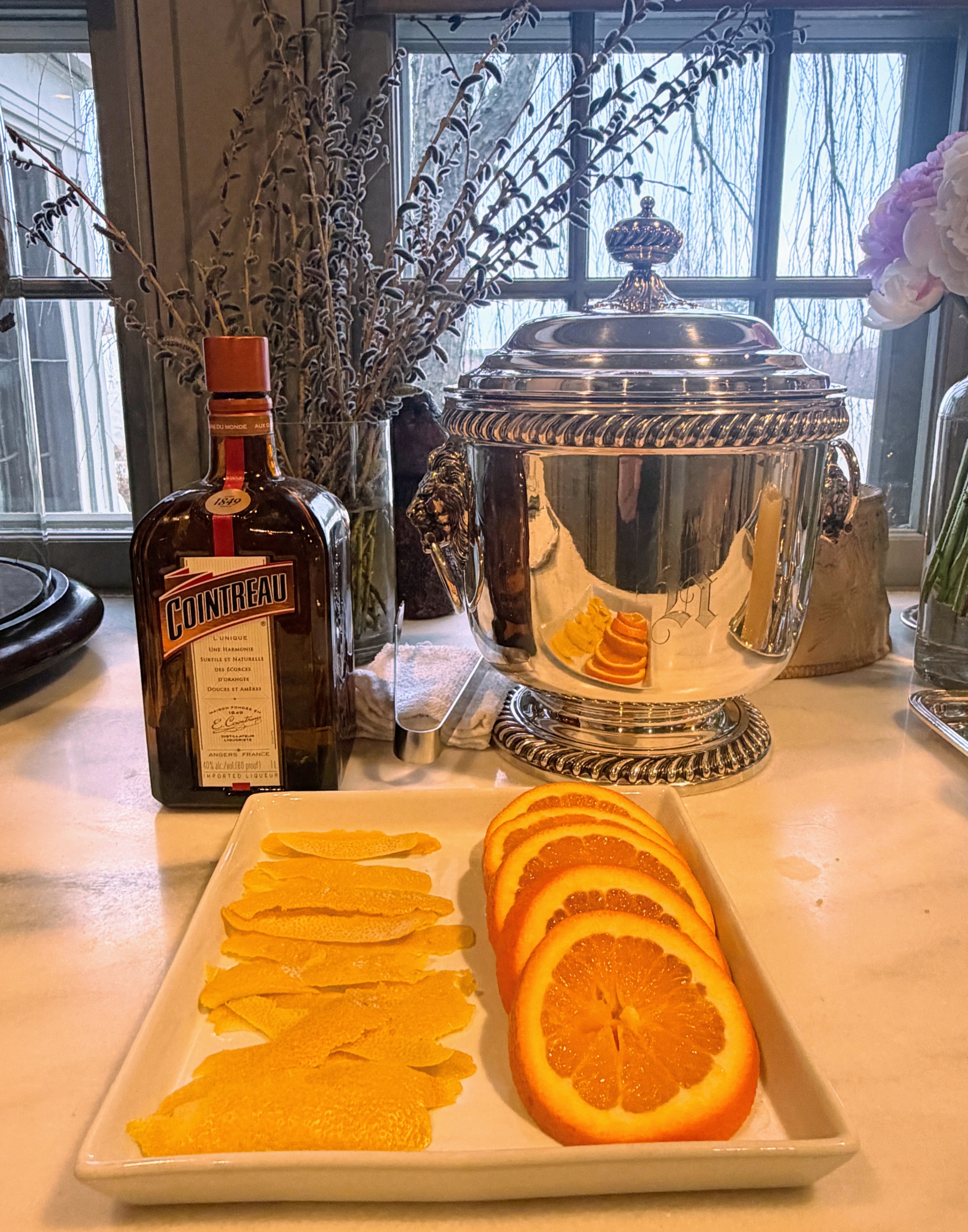 - Dinner was scheduled for 6:30pm. Everyone arrived right on time and started with my Meyer Lemon Drop cocktails. The recipe is in my 100th book, MARTHA: The Cookbook. The drink includes vodka, Cointreau, Meyer lemon juice and Meyer lemon juice simple syrup.