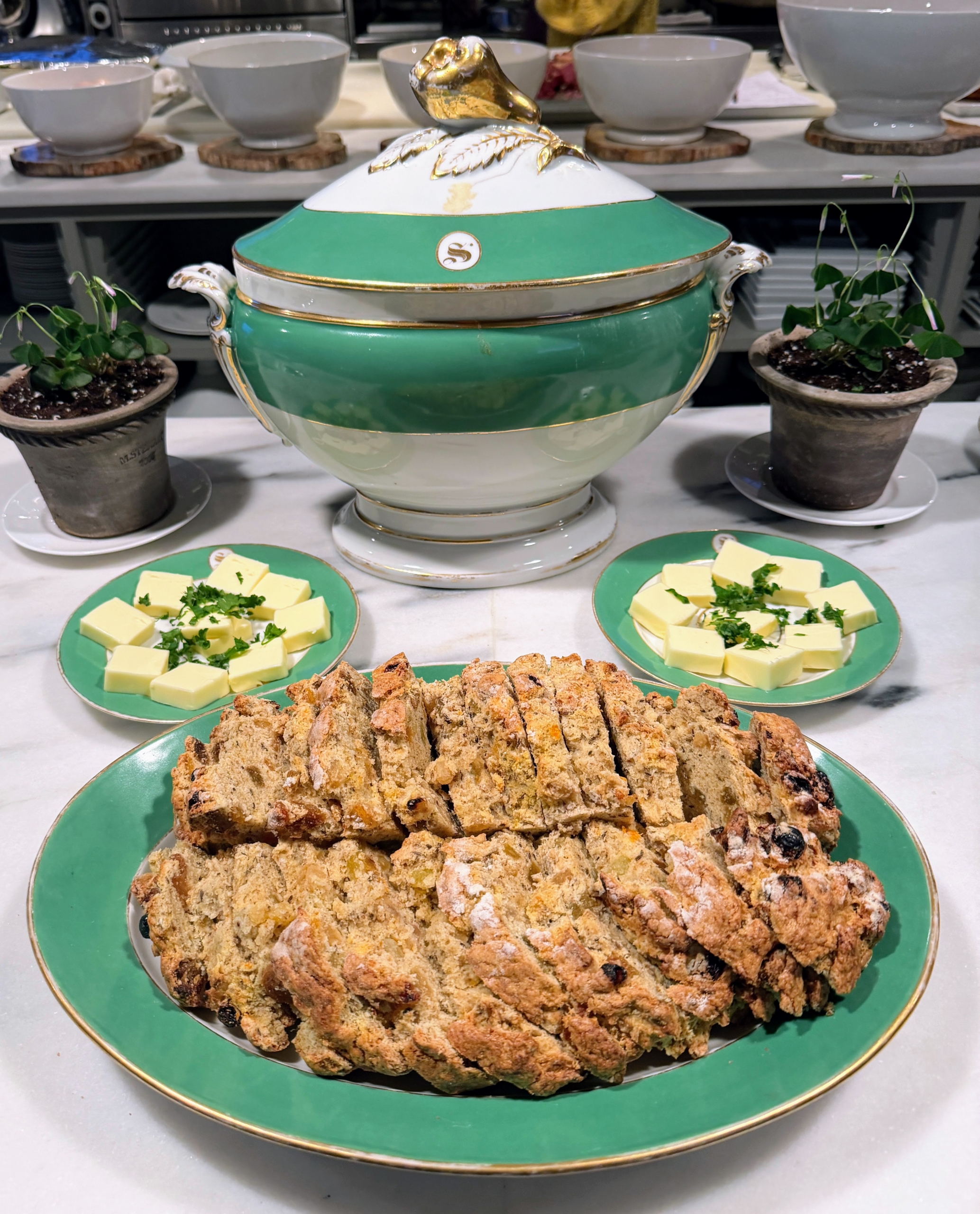 - I shared the beginnings of my belated St. Patrick’s Day dinner on my Instagram Stories @marthastewart48 – did you catch it? I also promised more images and here they are. Kevin Sharkey took this one of me behind the kitchen counter. These are my Irish Soda Bread loaves fresh from the oven.