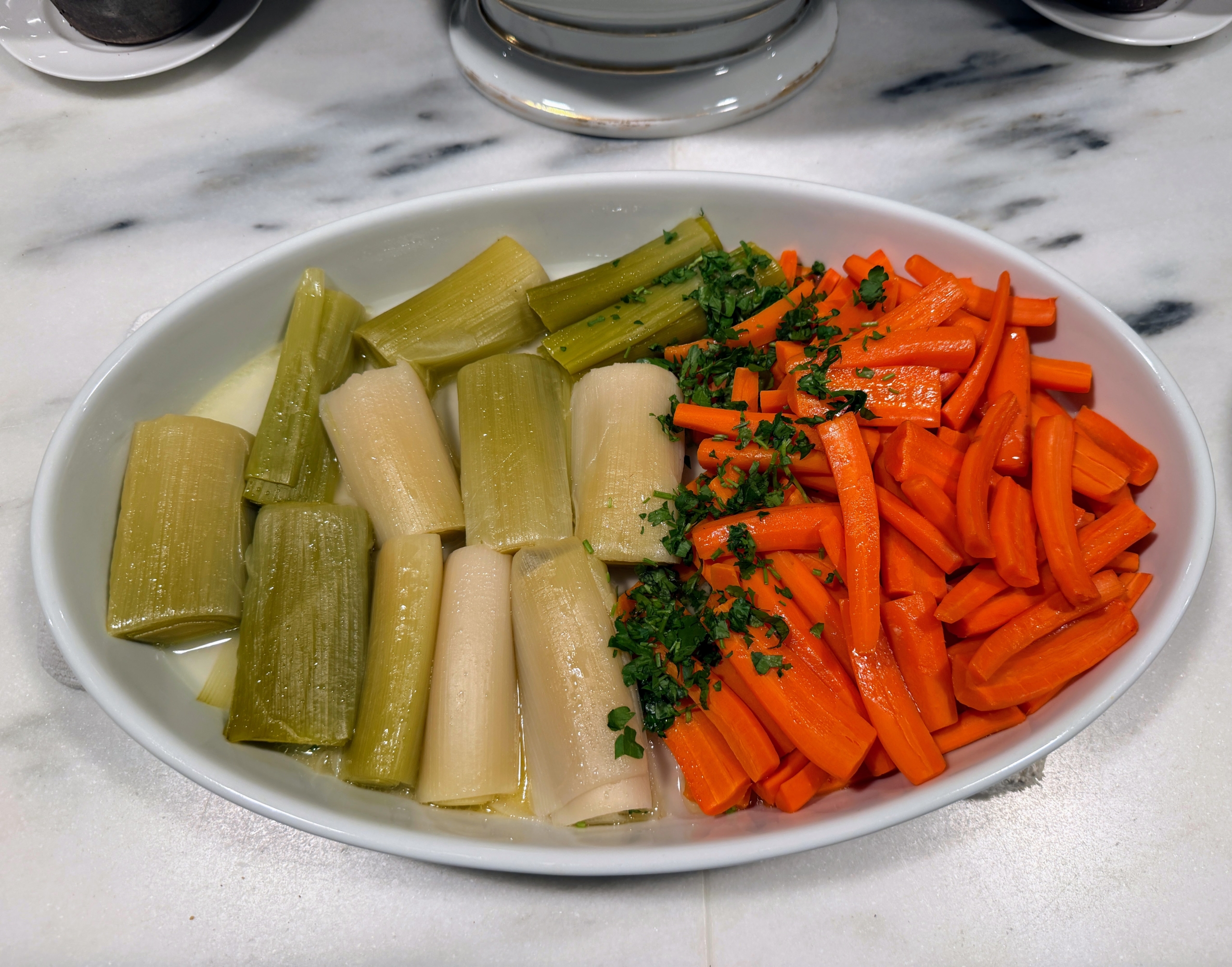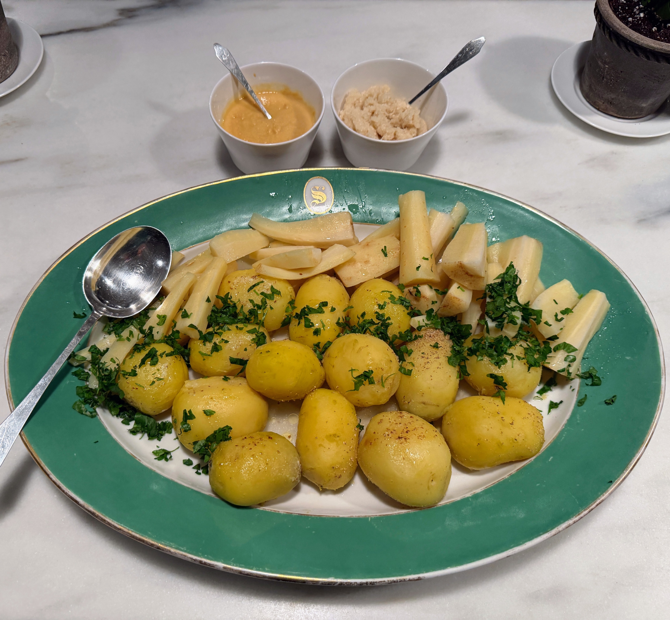 - The vegetables were very tasty. This platter has potatoes and cut parsnips.