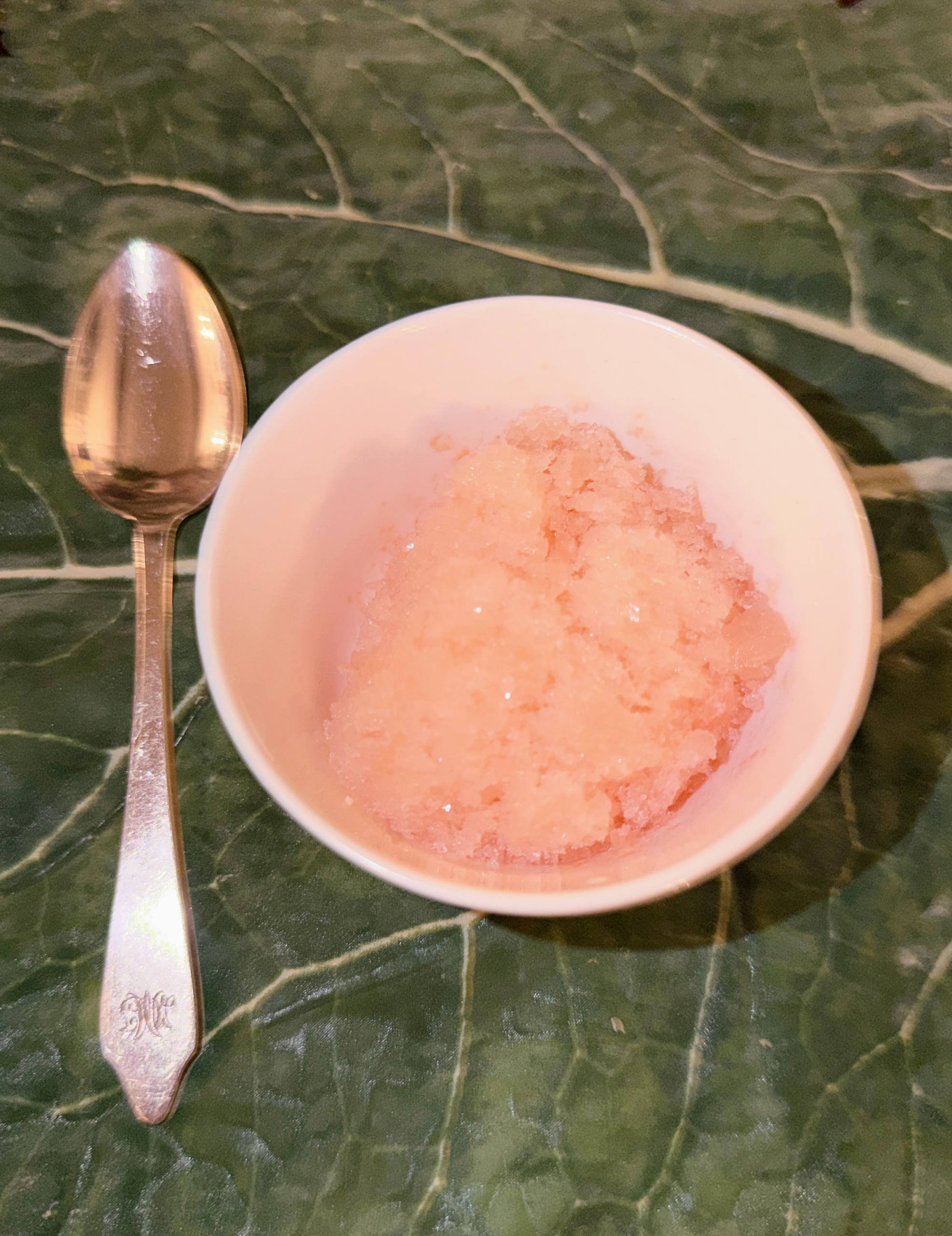 - And a serving of grapefruit granita – a pretty shaved ice dessert flavored with fruit juices.