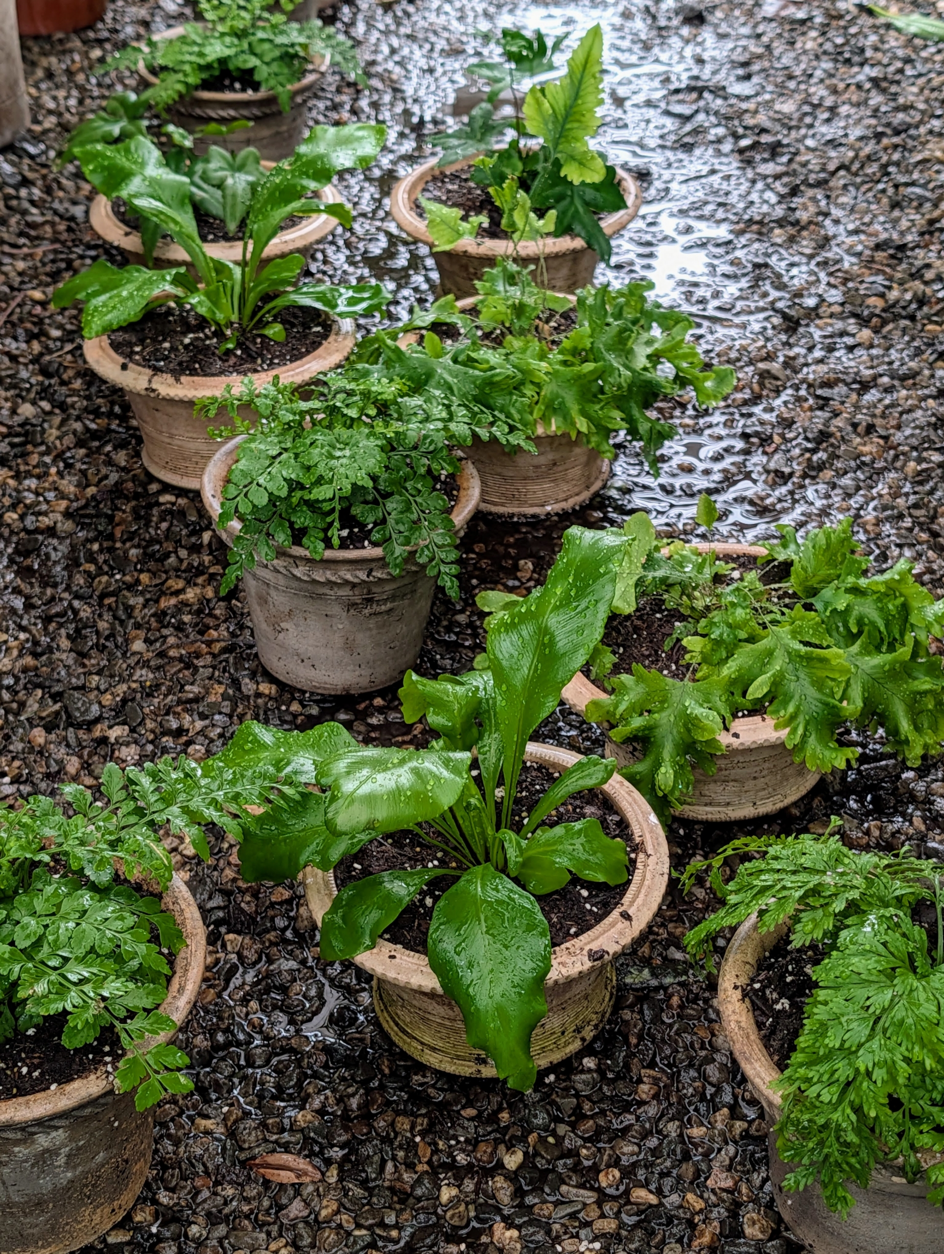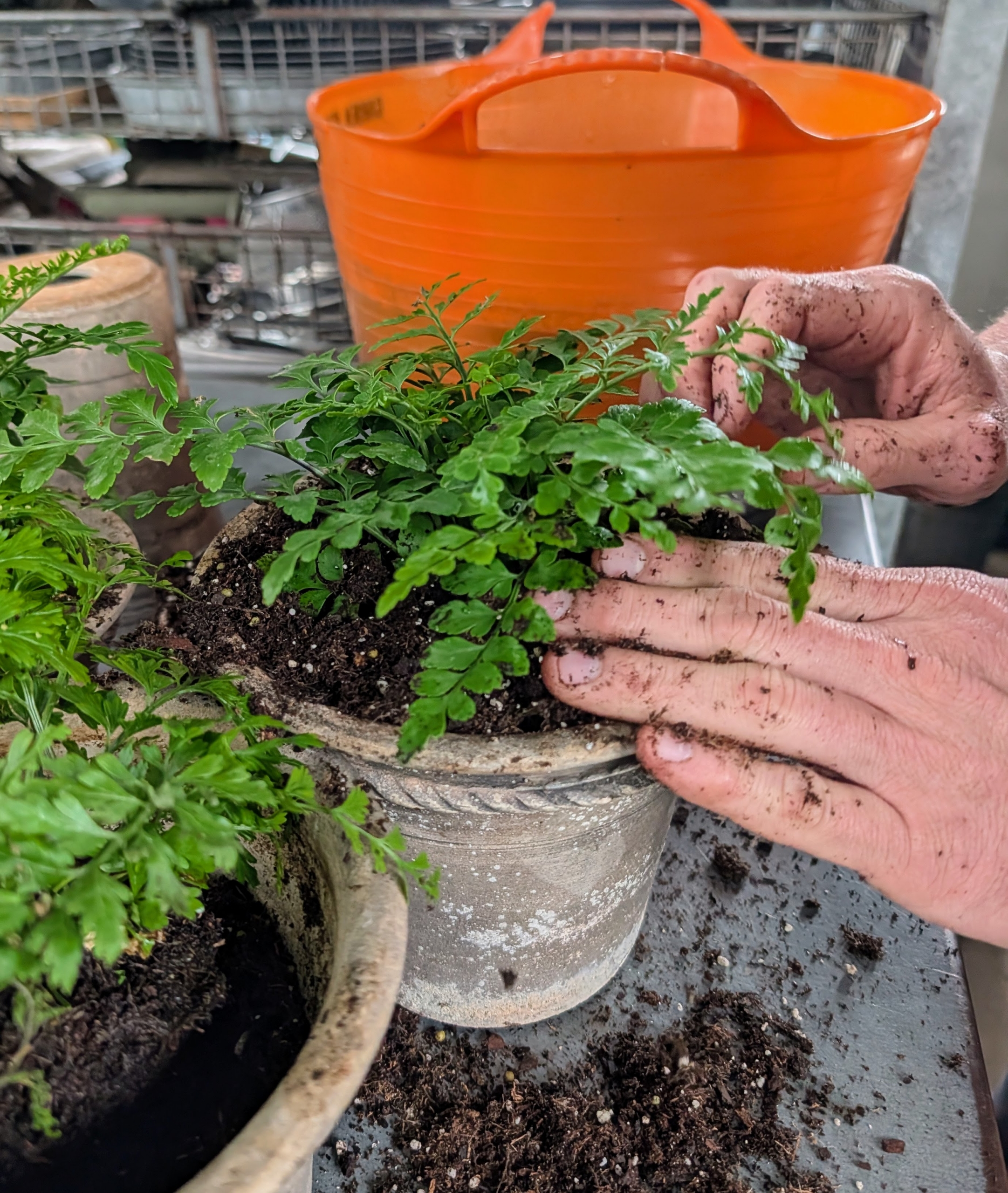 - These newly potted ferns will do very well inside the greenhouse where they can be monitored regularly along with the other plants.