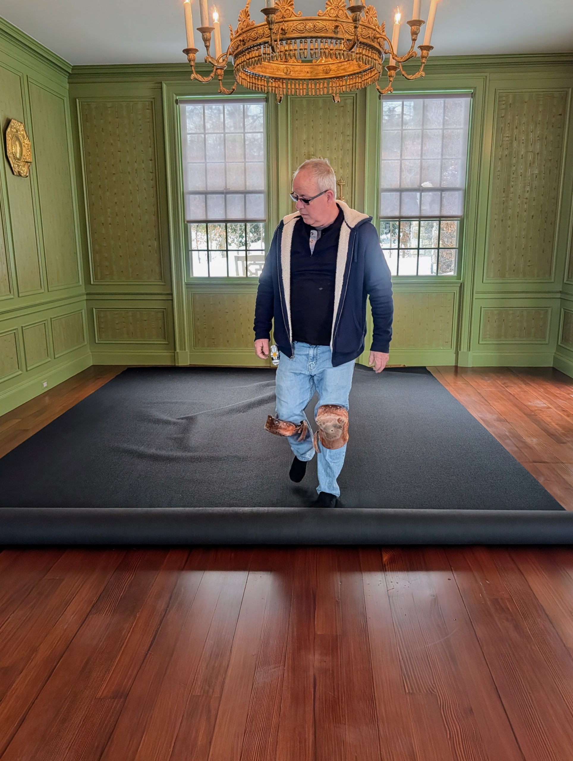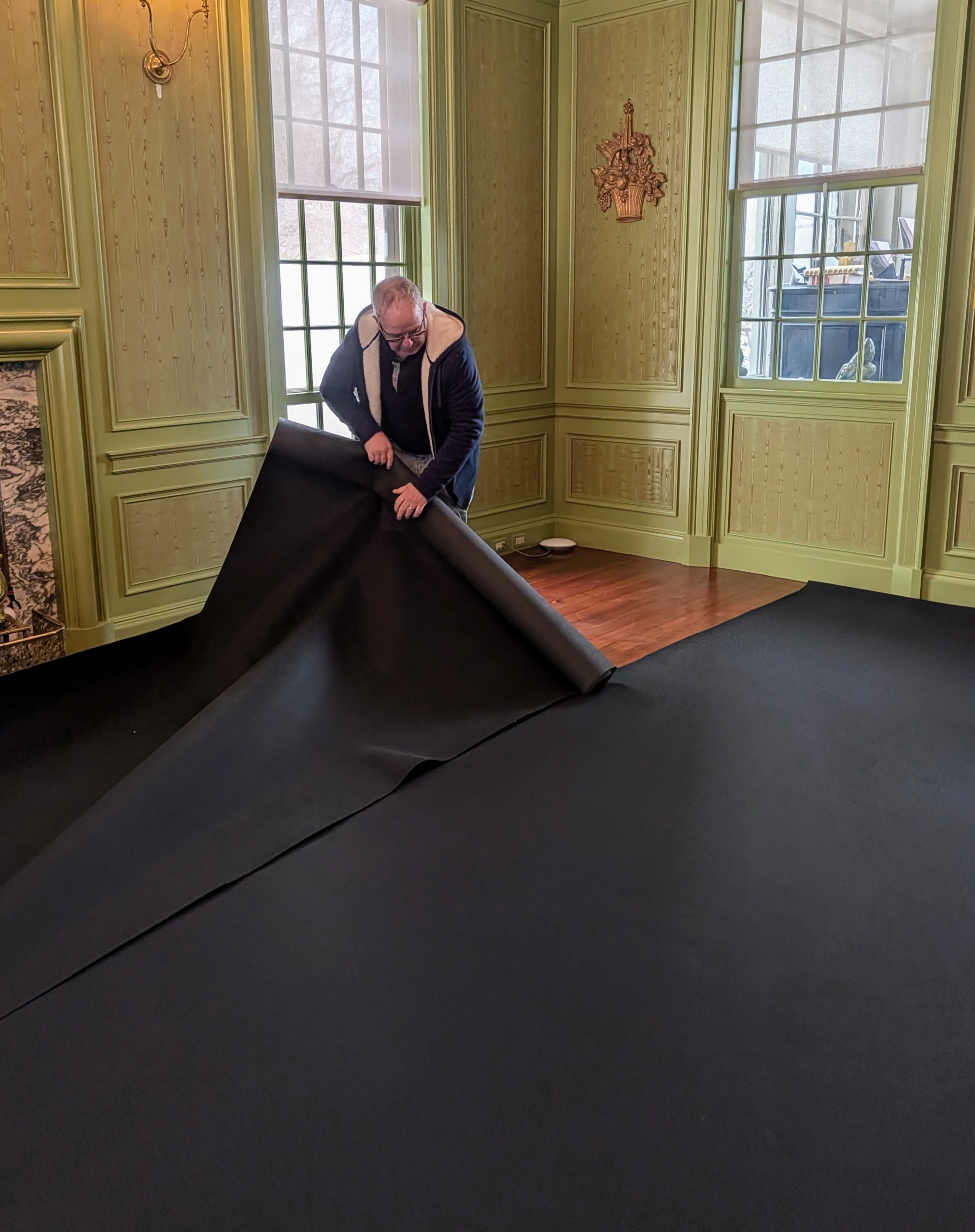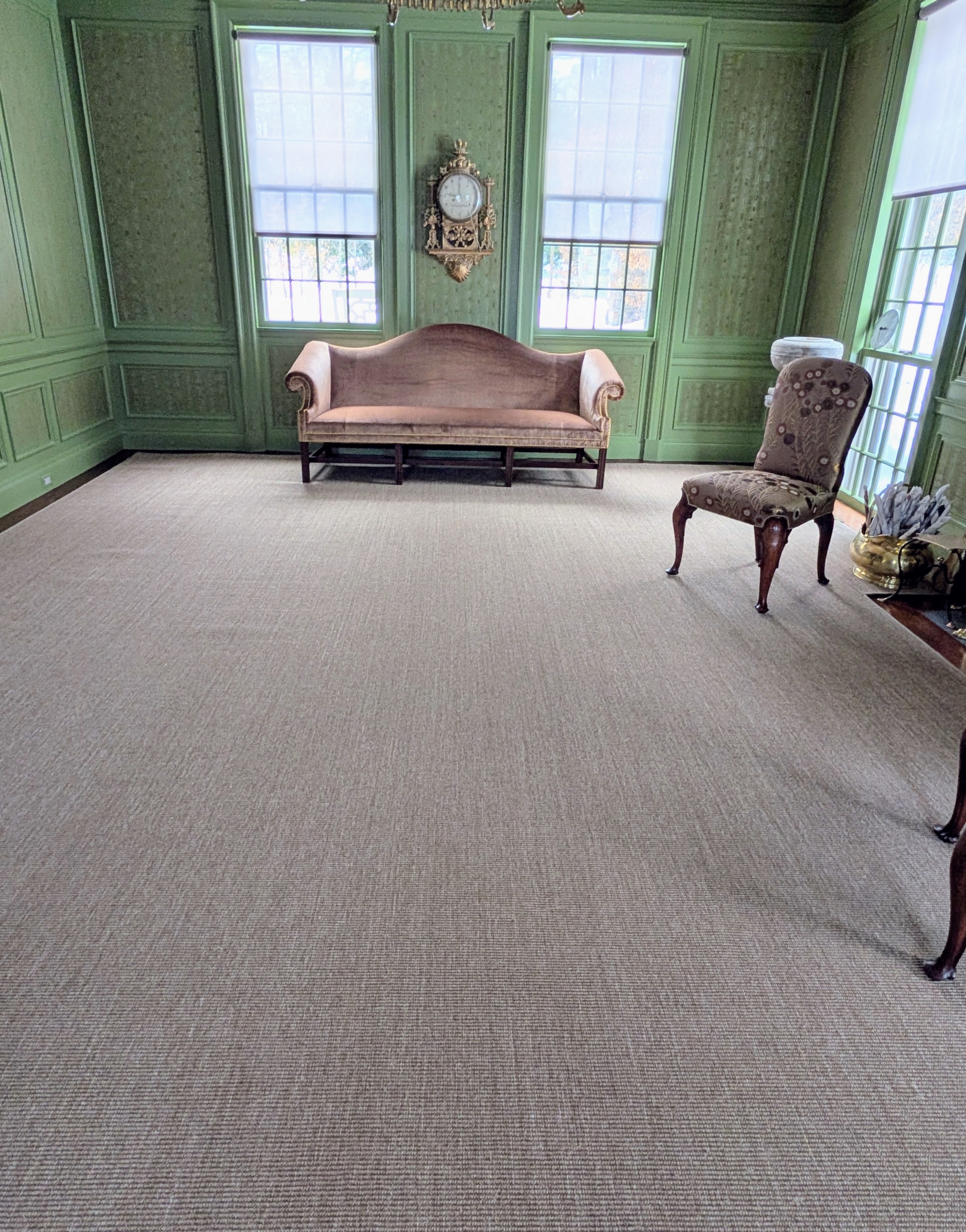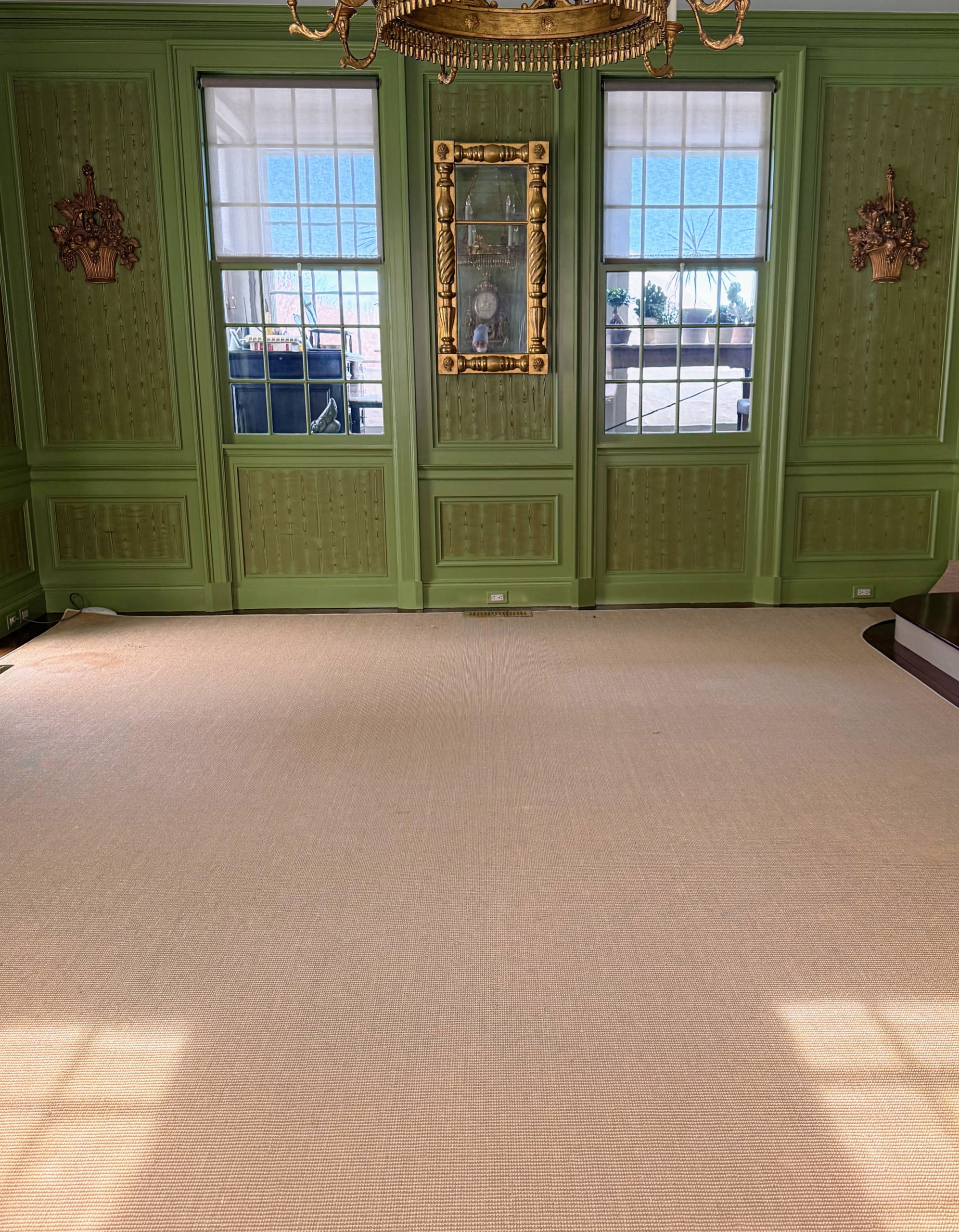 - The first room to be addressed is my Winter House Sunken Green Parlor. It is a large room, which I often use for entertaining. Recently, I noticed the carpeting was in need of replacing, so it was cleaned and emptied of all the furniture.