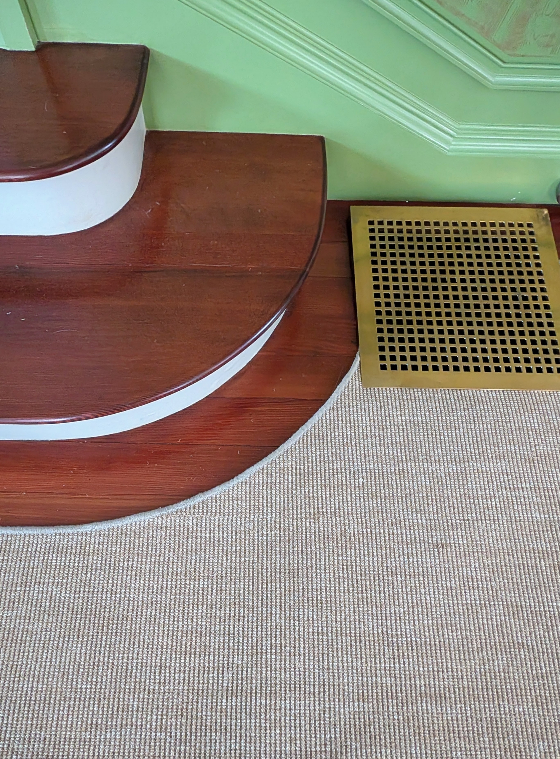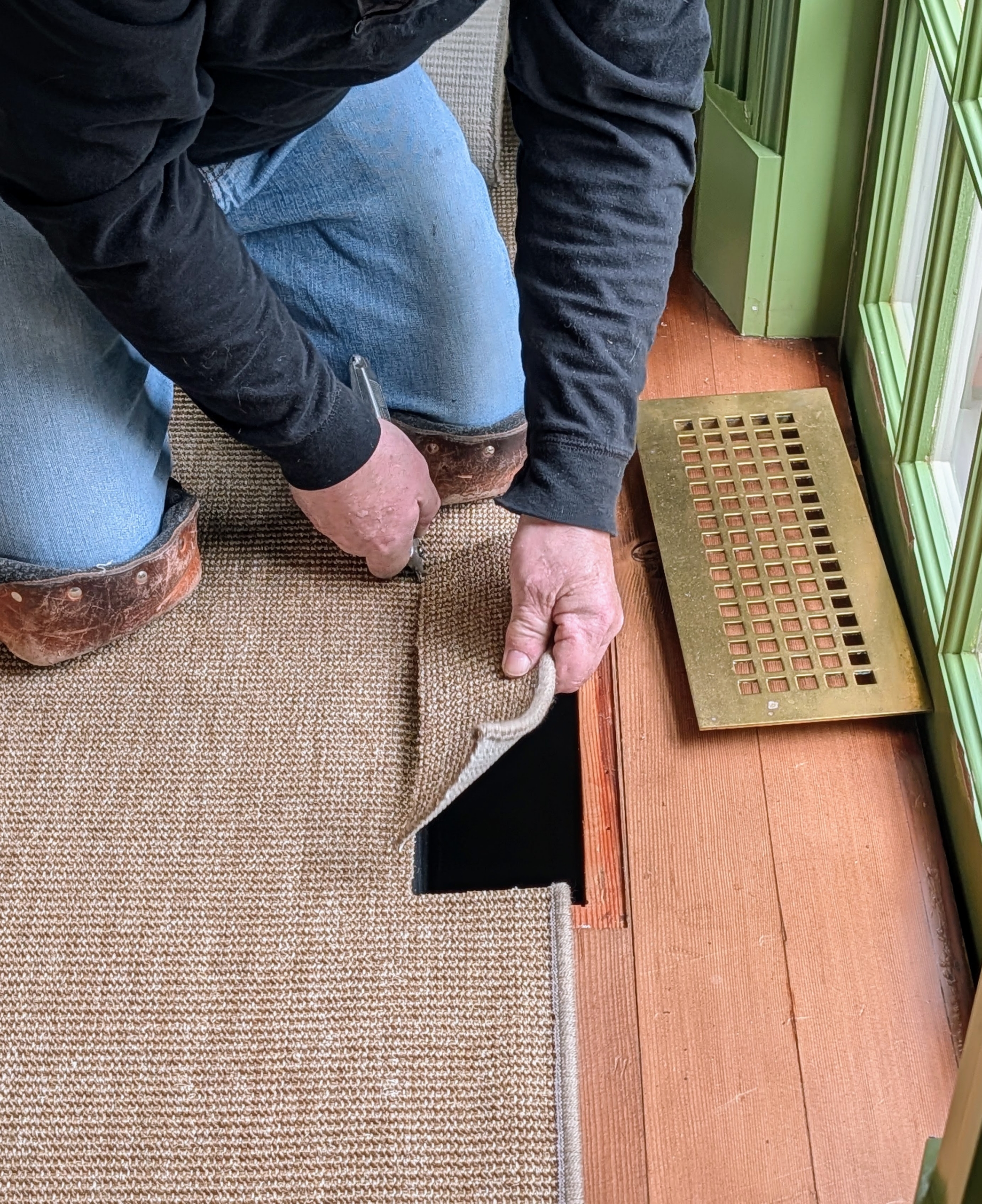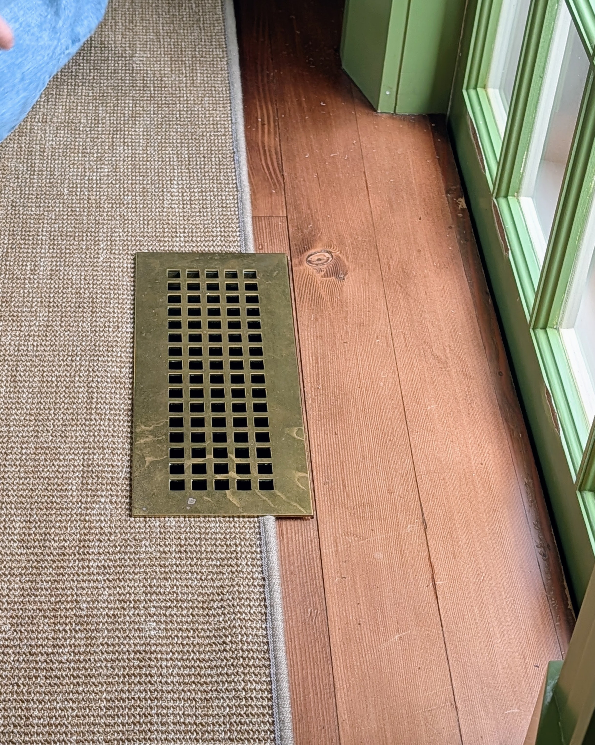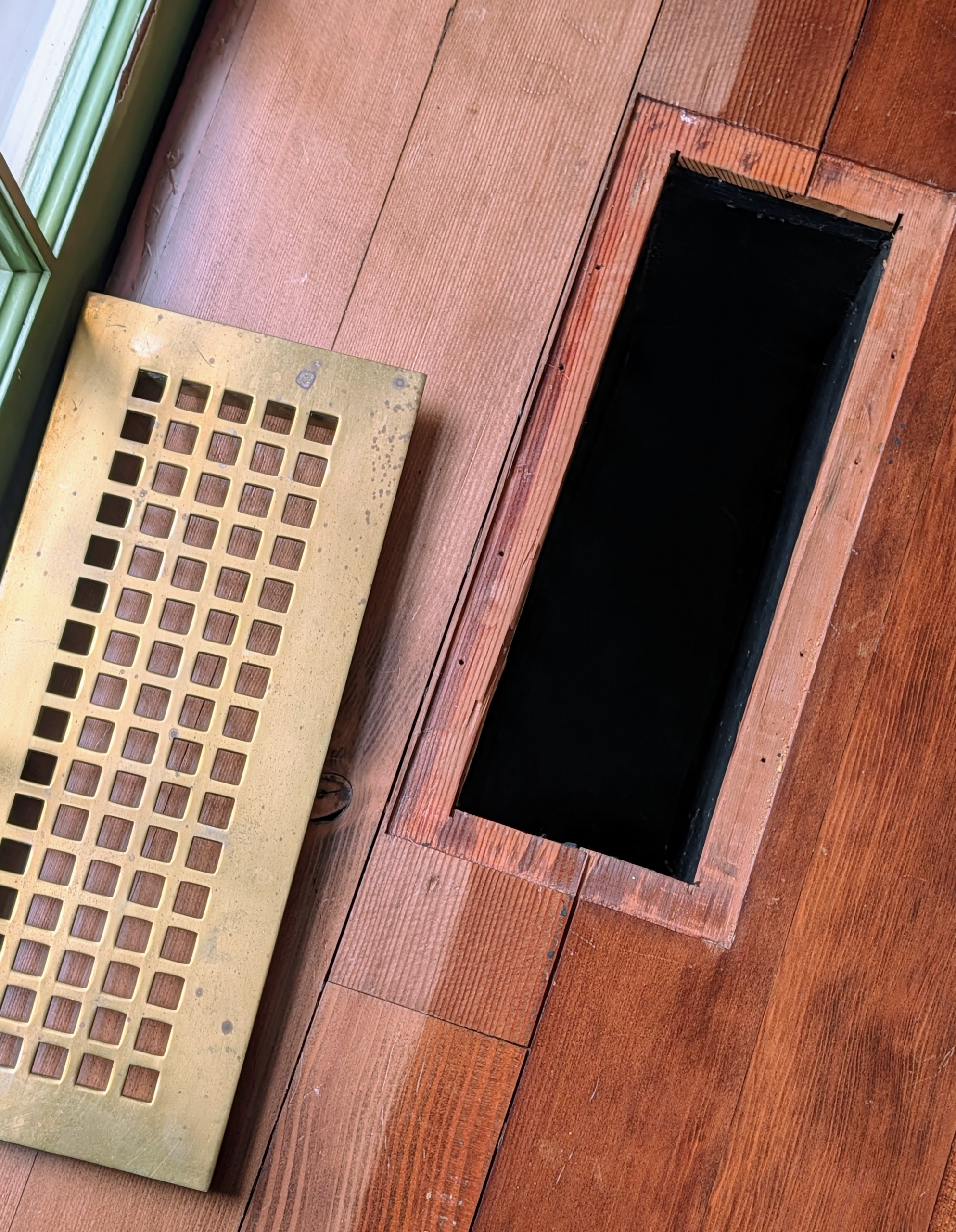 - The brass floor register grilles were also removed for the project.