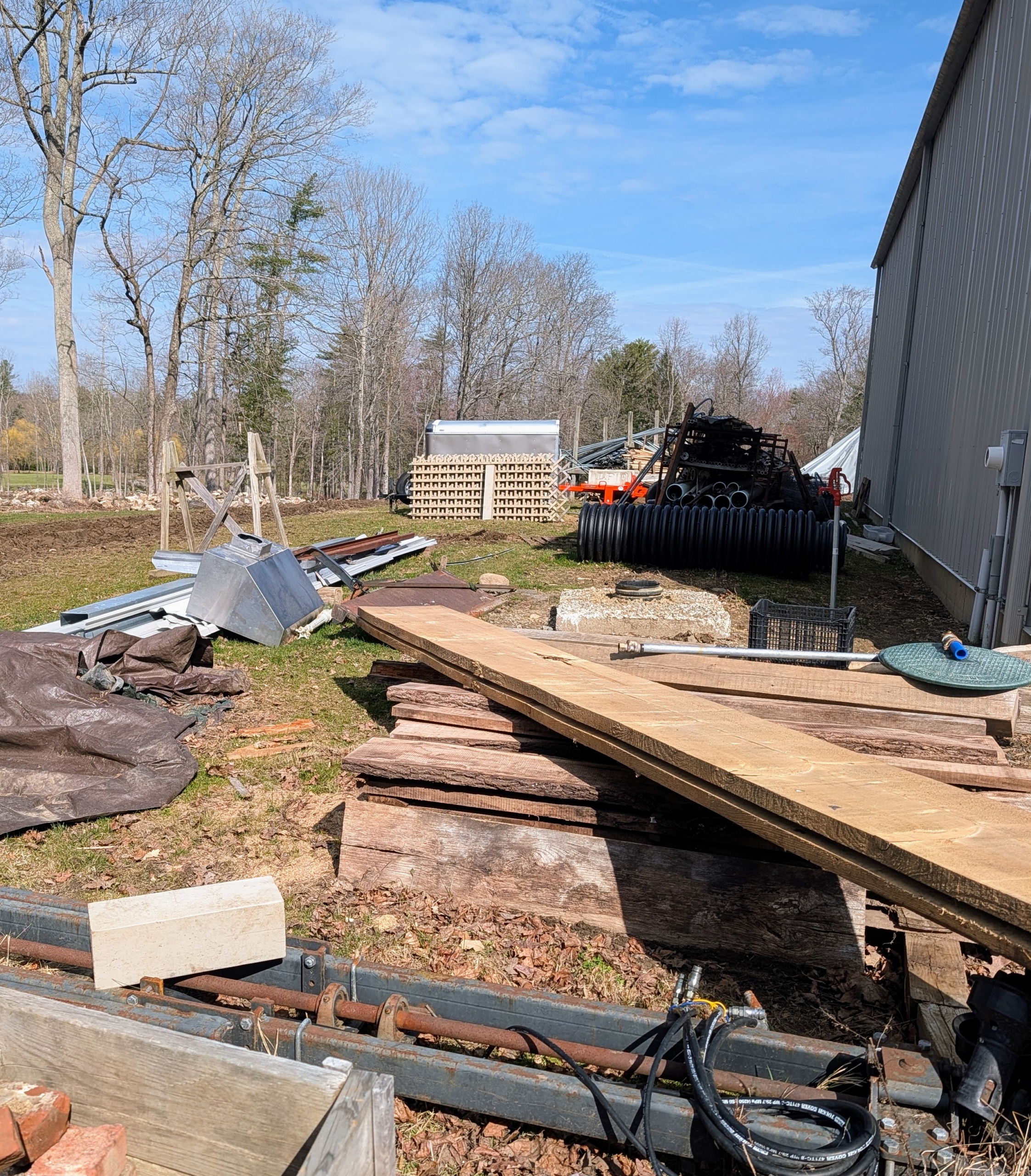 - Do you have a storage shed or space where you keep spare lumber and other materials? Is it all in order? This area is located just behind my compost yard. Once a year, I like to go through it and take stock of what is there, what is usable, and what needs to be disposed.