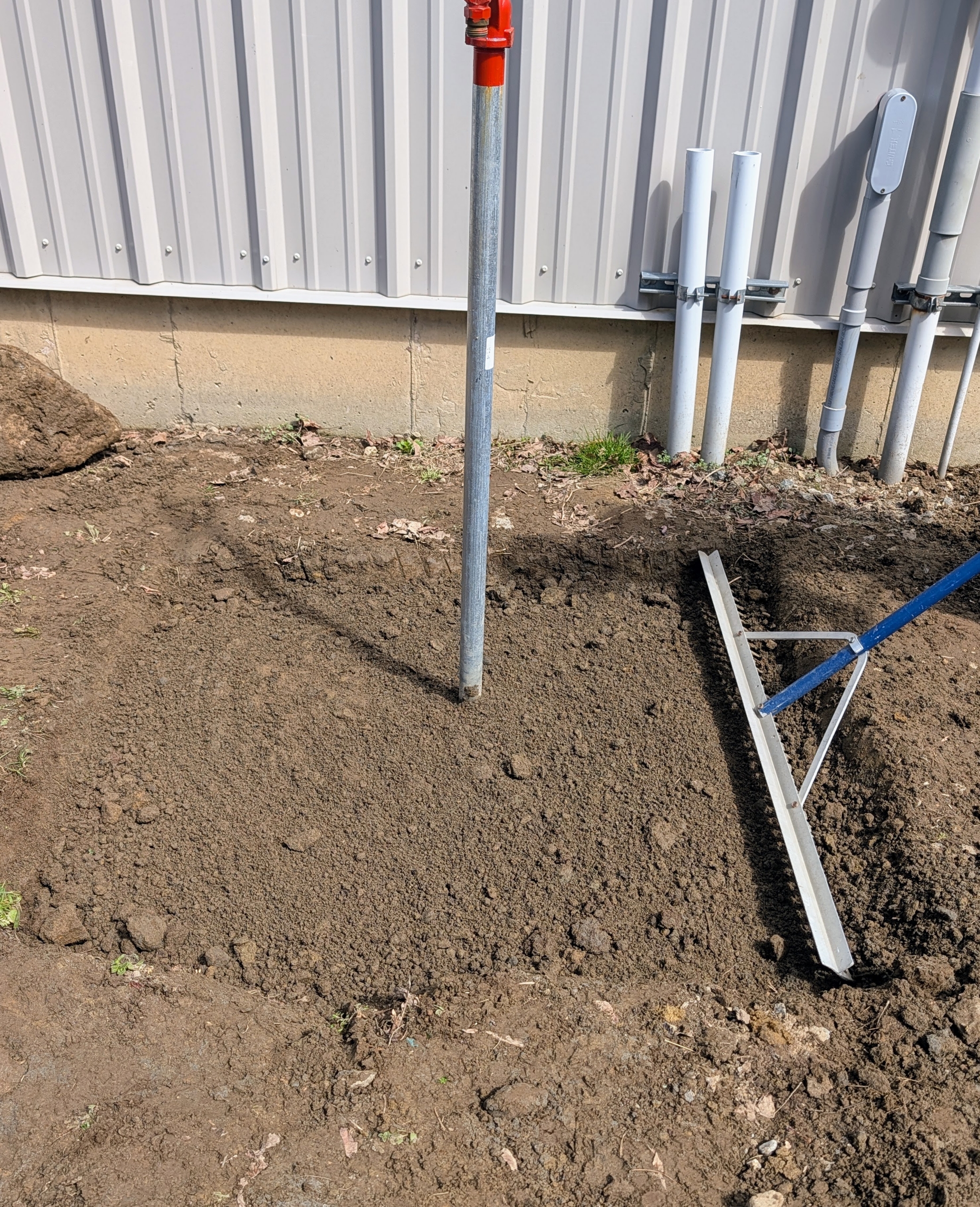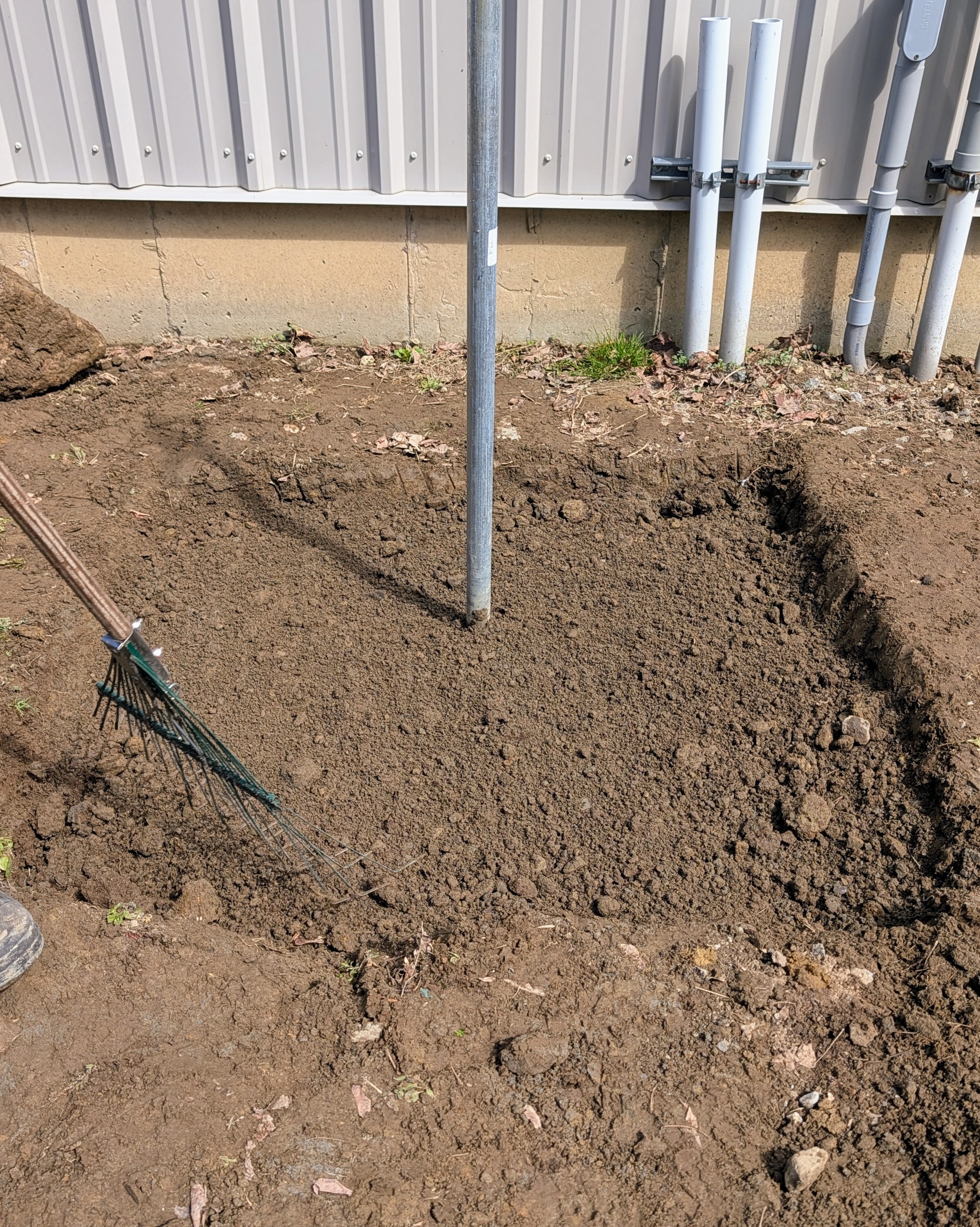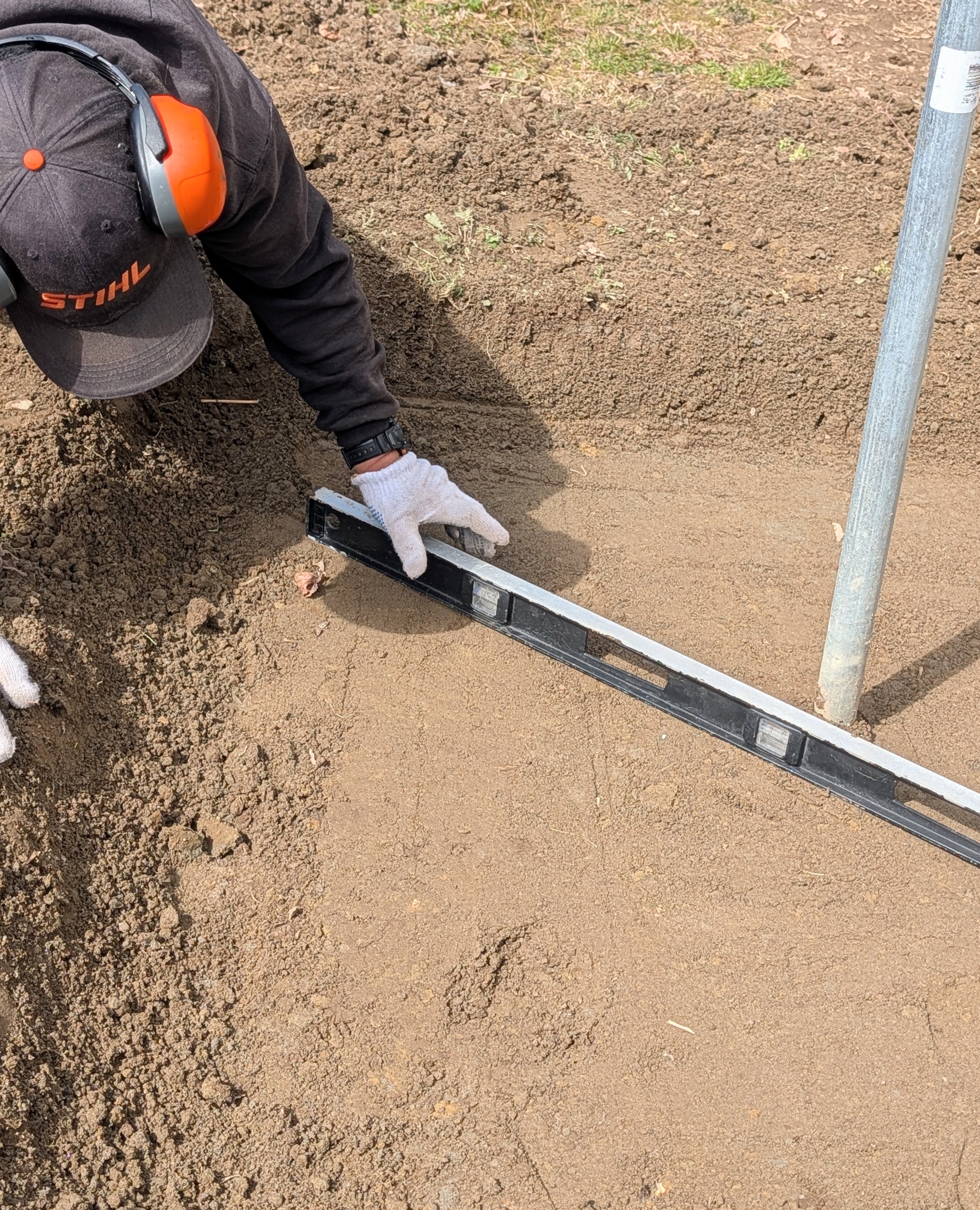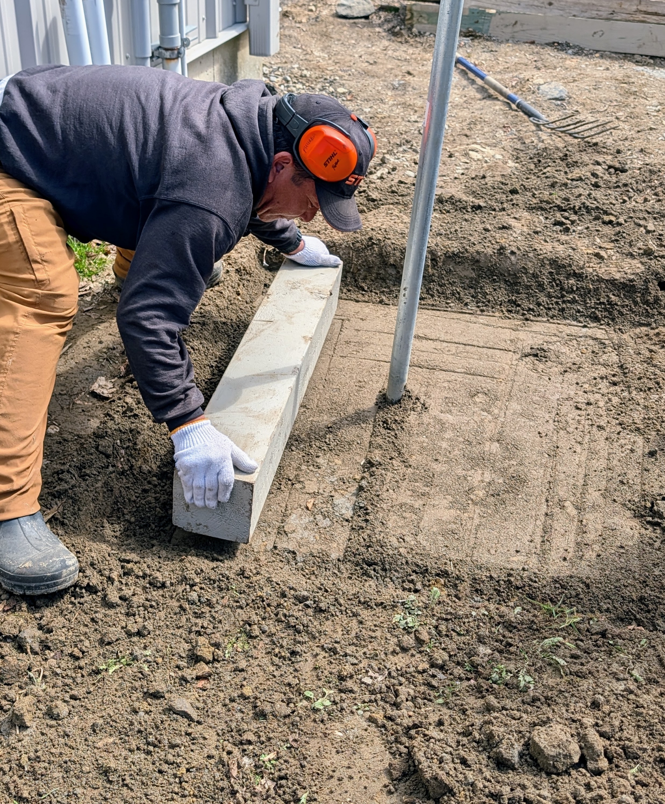 - But the area must first be prepped. Pete rakes any stones away from the space.