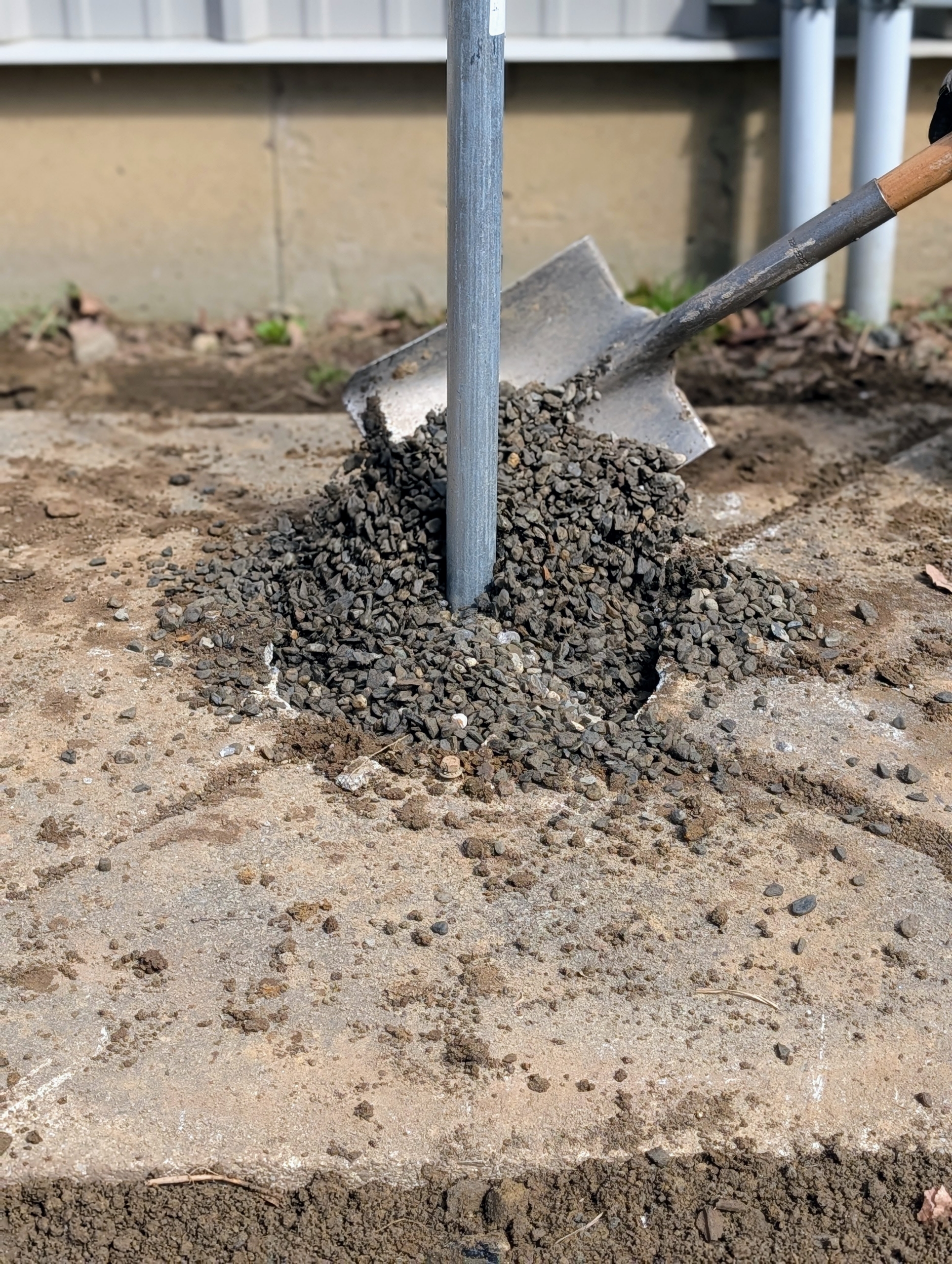 - And then tamps down lightly to ensure the gravel is settled.