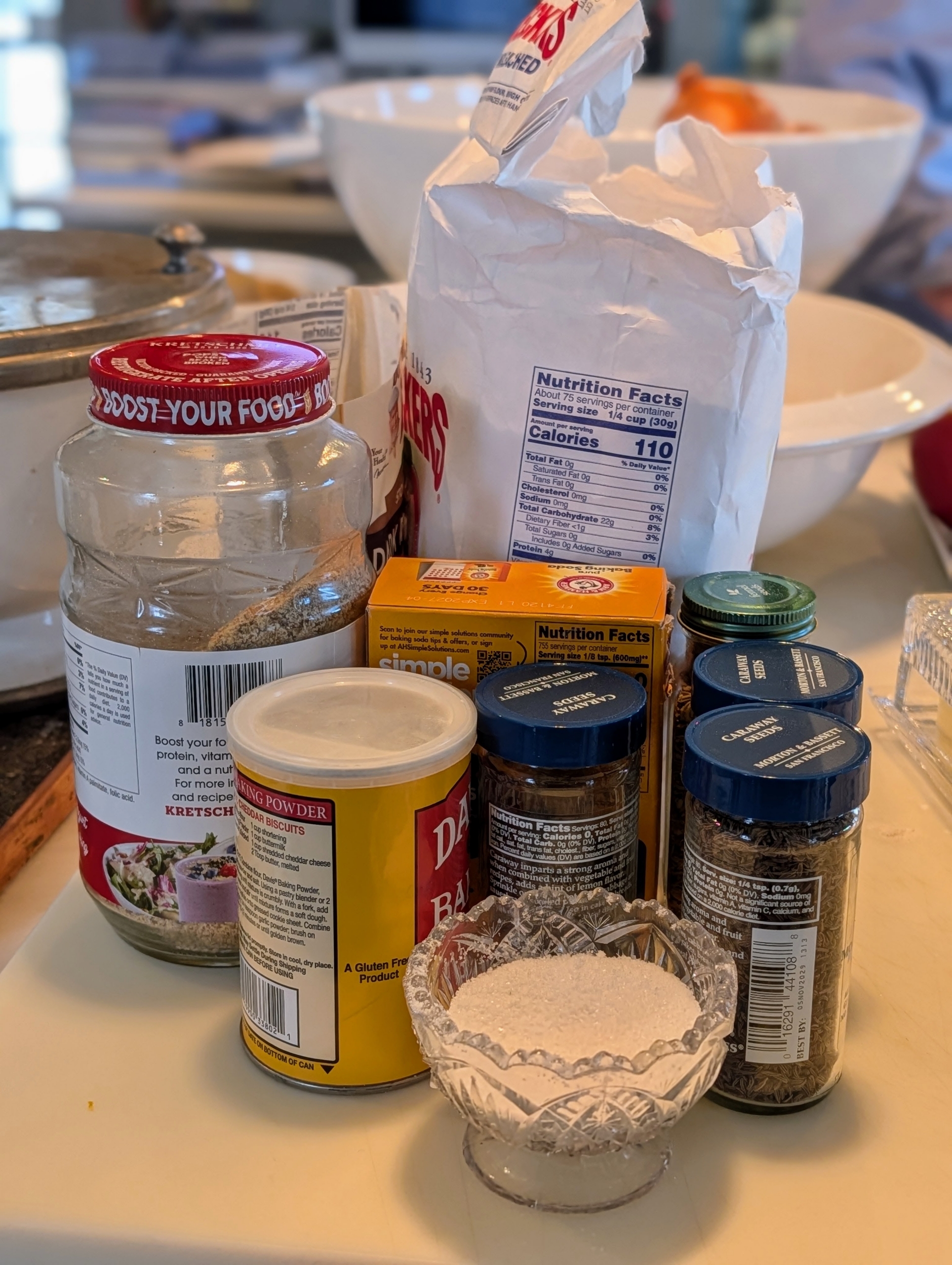 - Before baking anything I always prepare all my ingredients. This bread is easy to make and because it requires no rising time, it can also be done pretty quickly. Here are some of my dry ingredients.