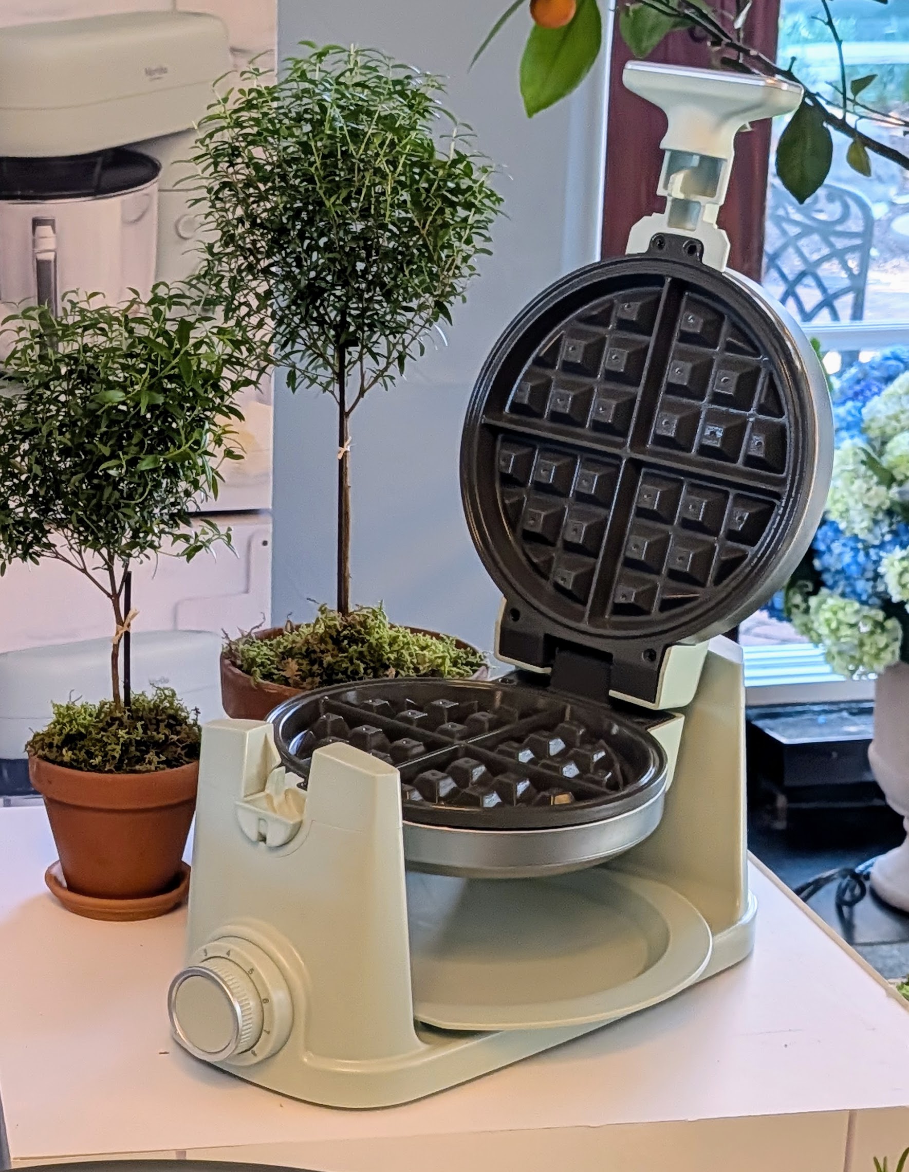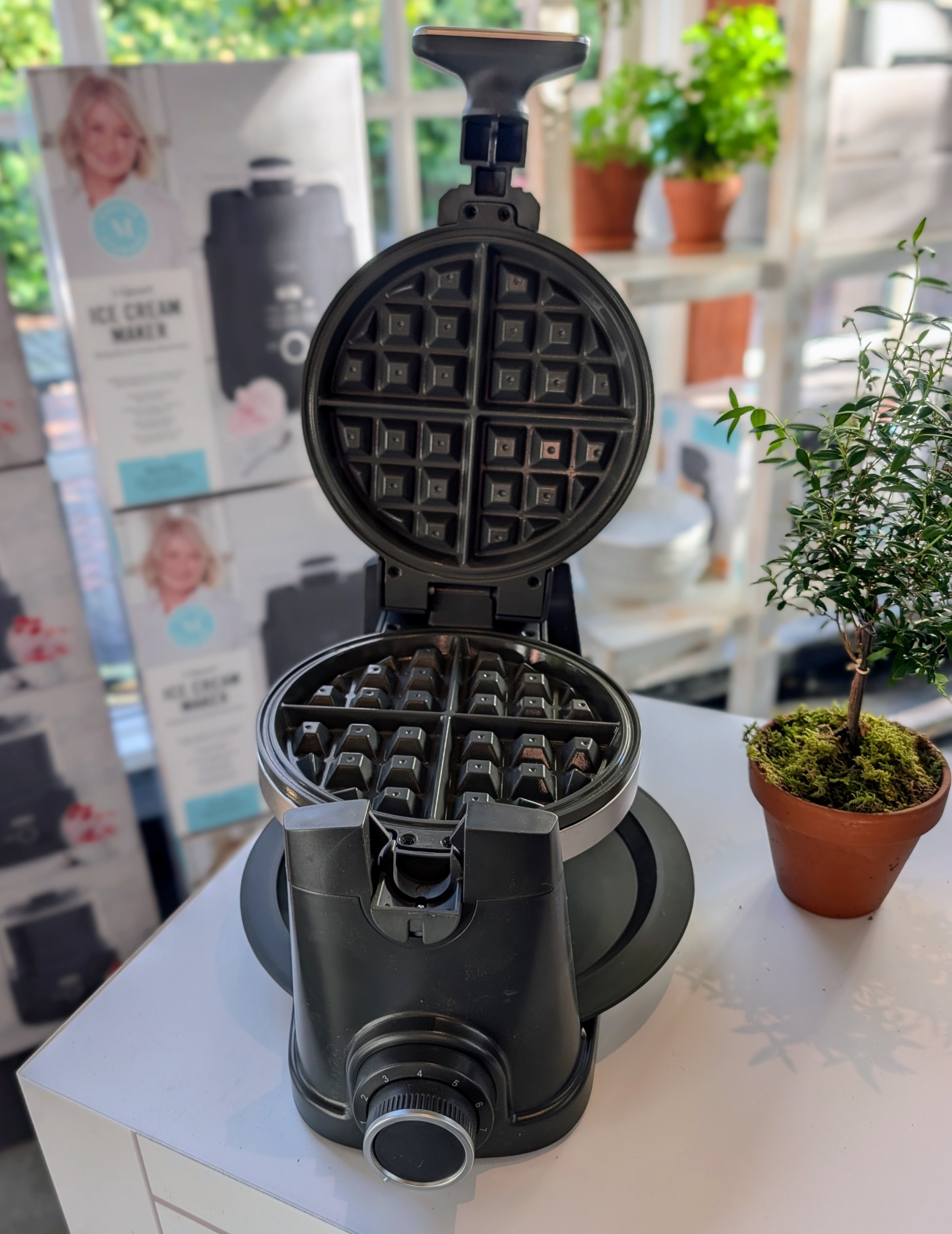 - Sunday breakfast and brunch will be so much more fun with my Martha Stewart Rotating Waffle Maker. It has a 180-degree flip iron feature that fills every nook with batter and cooks waffles evenly, providing just the perfect waffle texture.