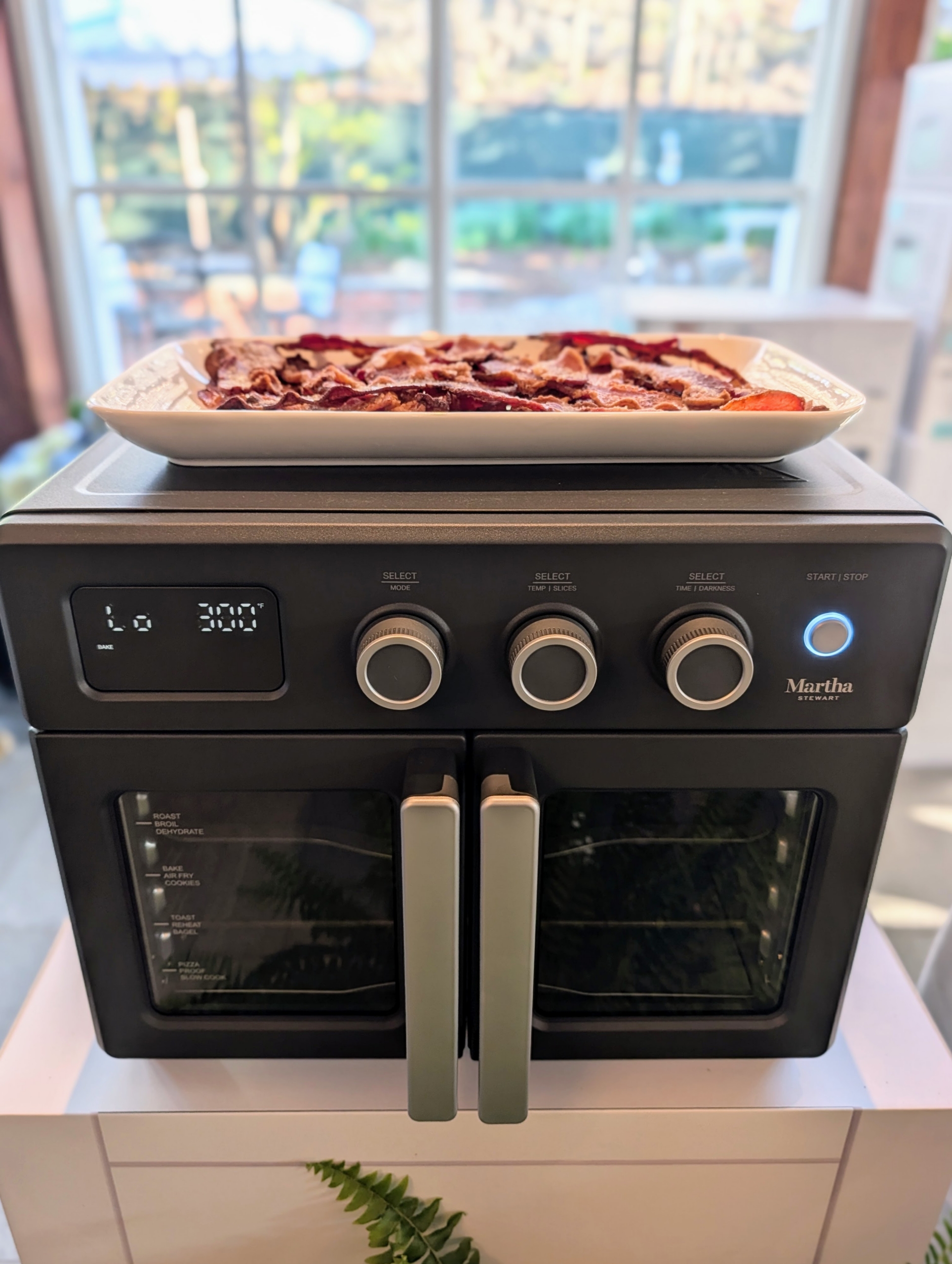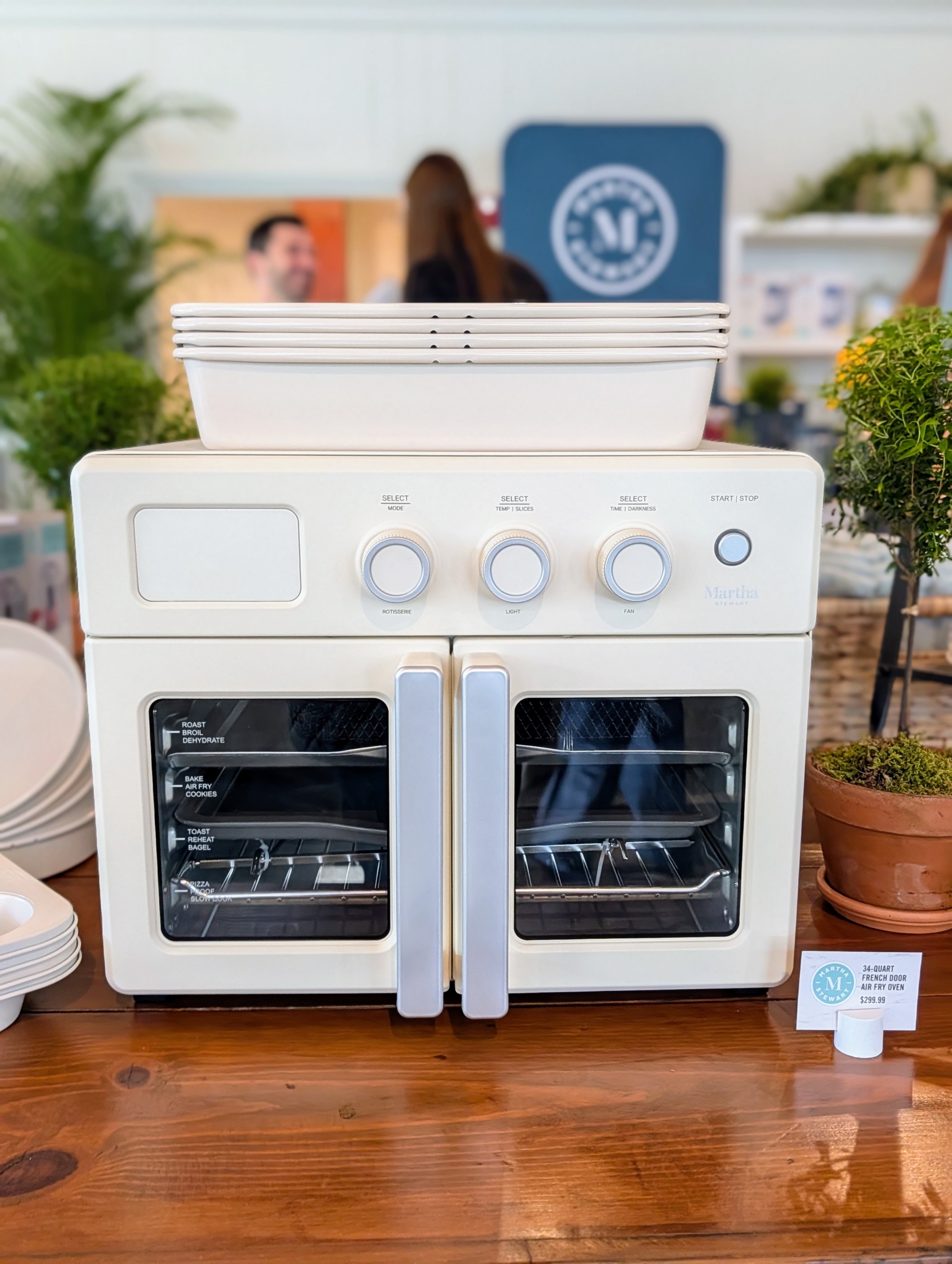- This is the Martha Stewart XL Digital French Door Air Fryer Toaster Oven Combo. It features an extra large capacity 34QT 12-in-1 convection countertop oven that’s big in enough to toast six slices of bread, bake a 12-inch pizza, and roast a whole chicken.