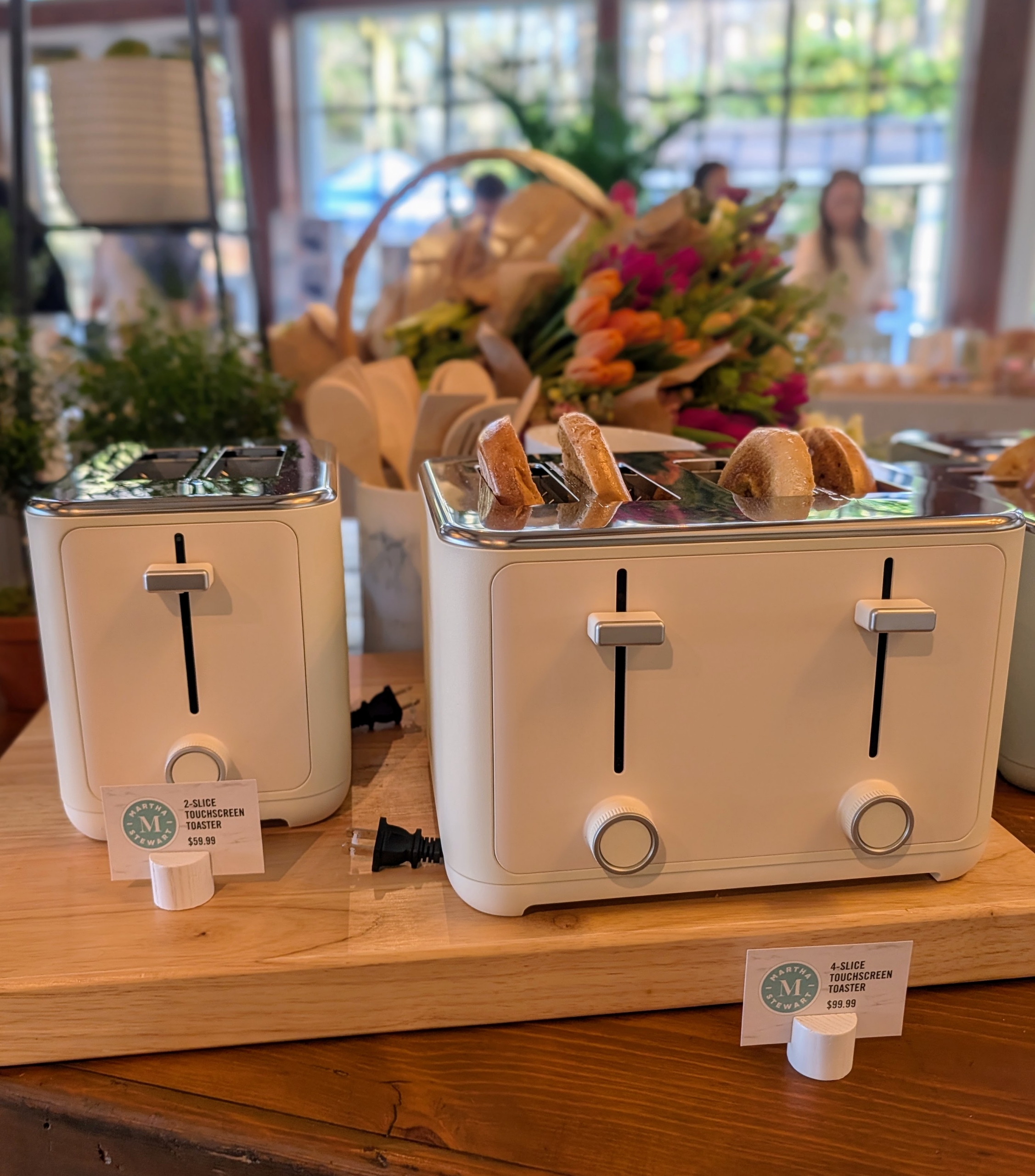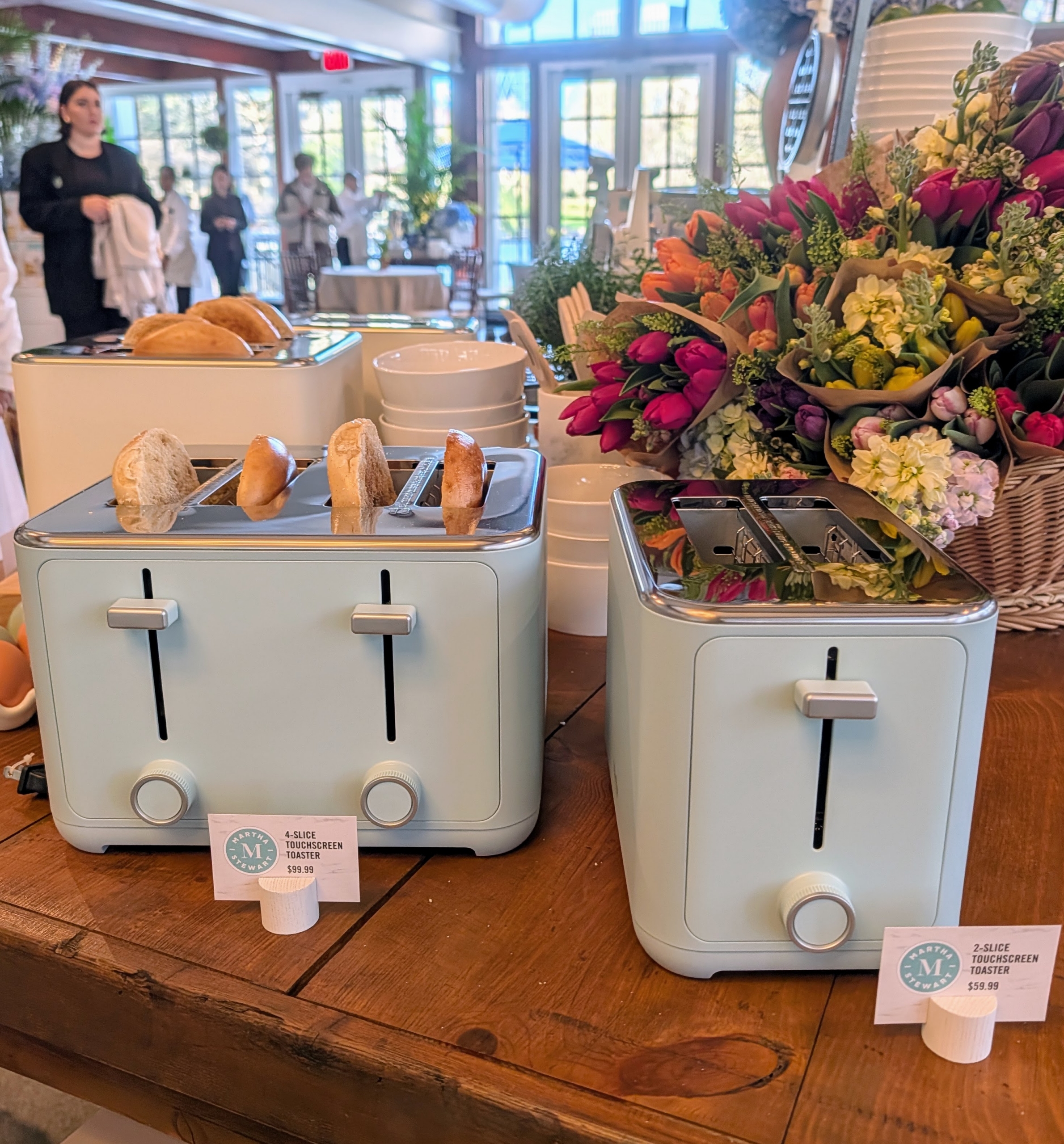 - The collection includes three different toaster options – a 2 slice, 4 slice, and an extra long 2 Slice Long Slot Toaster that is extra wide. It comes in sky blue, caviar gray, honeydew, and linen.