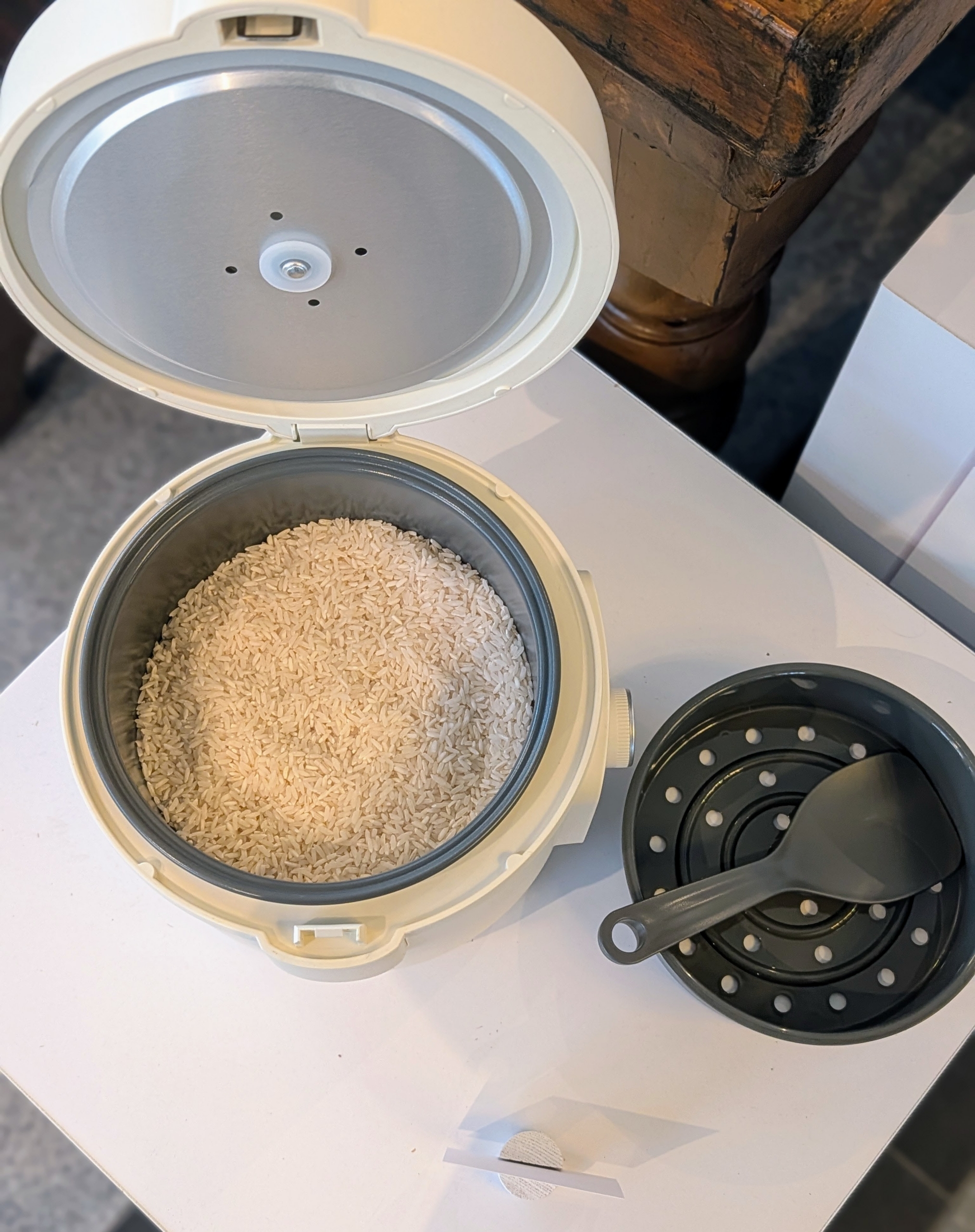 - The Martha Stewart Rice Cooker comes in linen, caviar gray, honeydew, and sky blue. It has 9 cooking modes, an LED touch display, and a delay timer and warming feature.