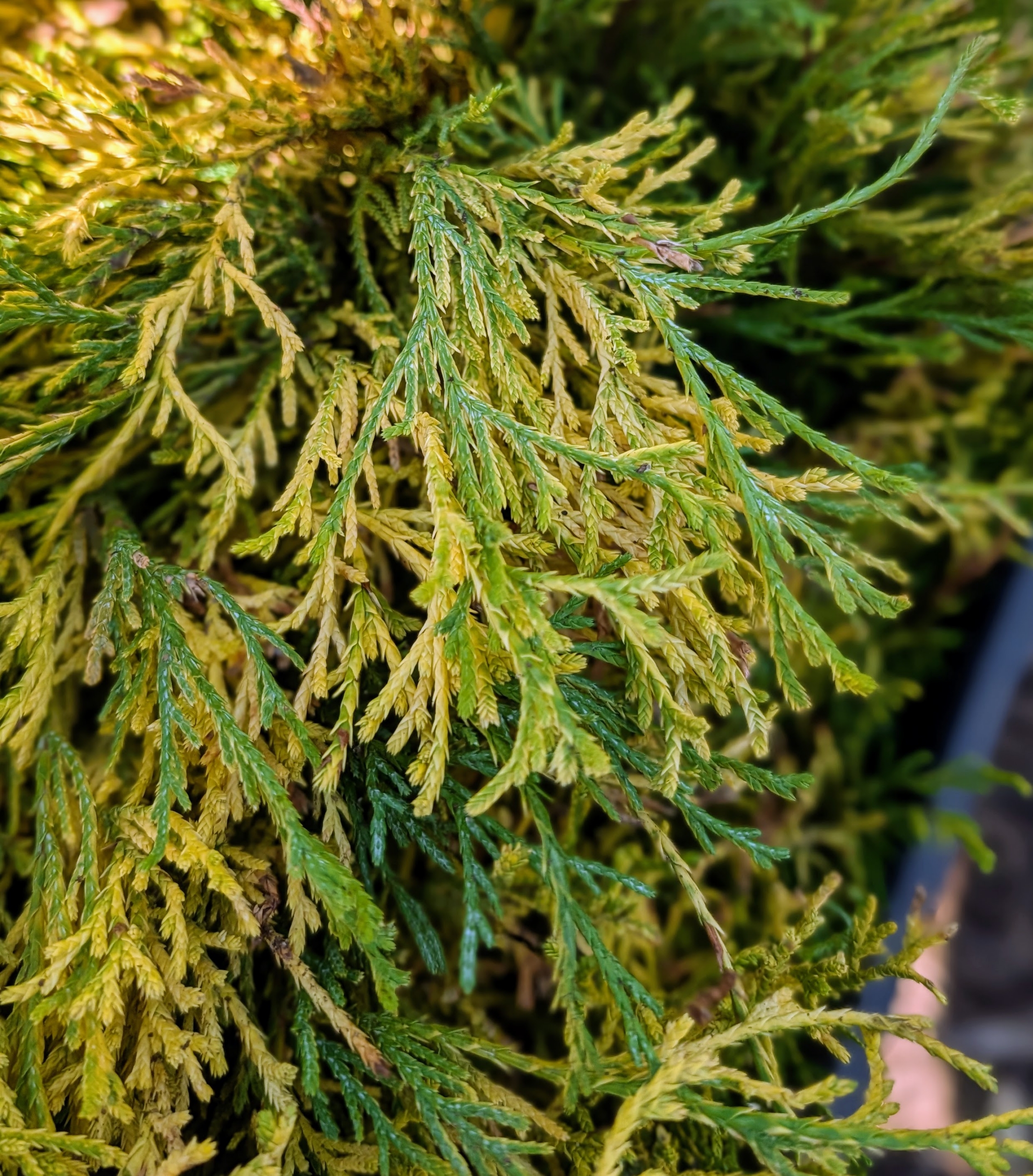 - I also got a selection of Fernspray Gold False Cypress, Chamaecyparis obtusa ‘Fernspray Gold’ – a dense evergreen conifer known for its golden-yellow to vivid green, soft, fan-like foliage.
