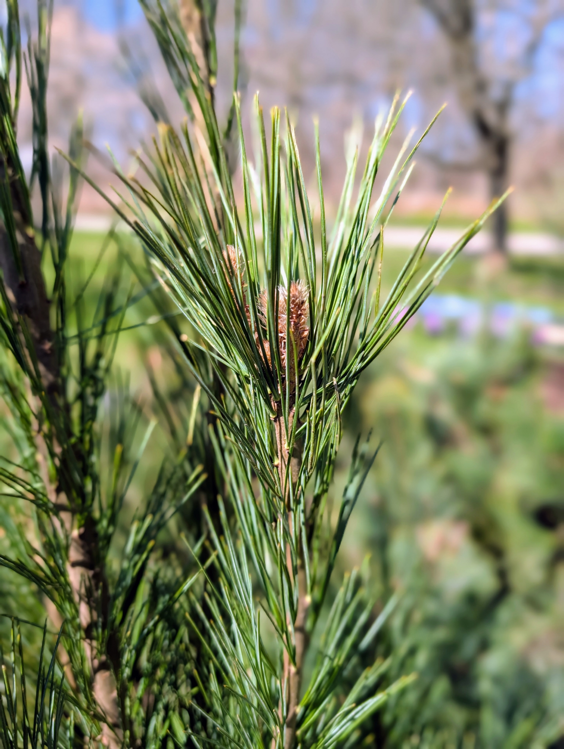 - This is a Southwestern White Pine, Pinus strobiformus. It is a tall evergreen coniferous tree native to the mountains of western Texas, New Mexico, Arizona, and southwestern Colorado, extending to Mexico. It is characterized by its pyramidal habit, slender trunk, open crown, and soft, straight to slightly twisted, finely serrated, rich blue-green needles.