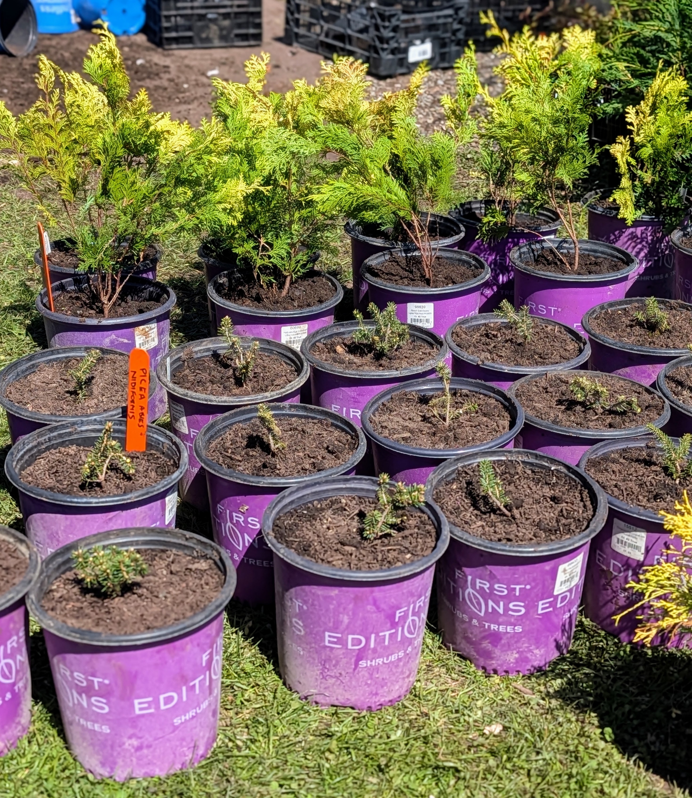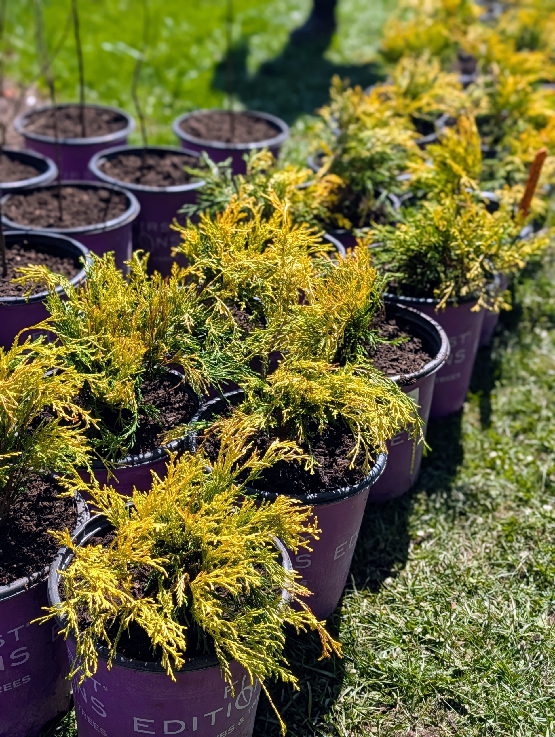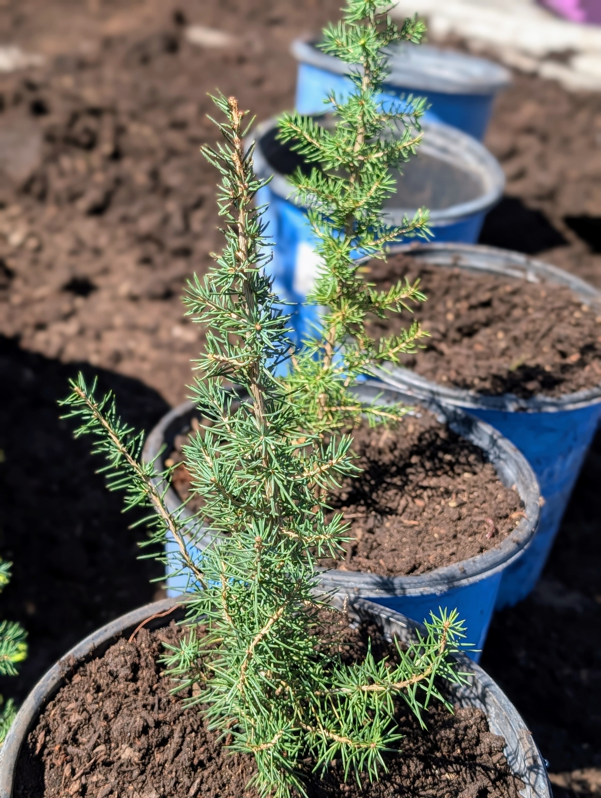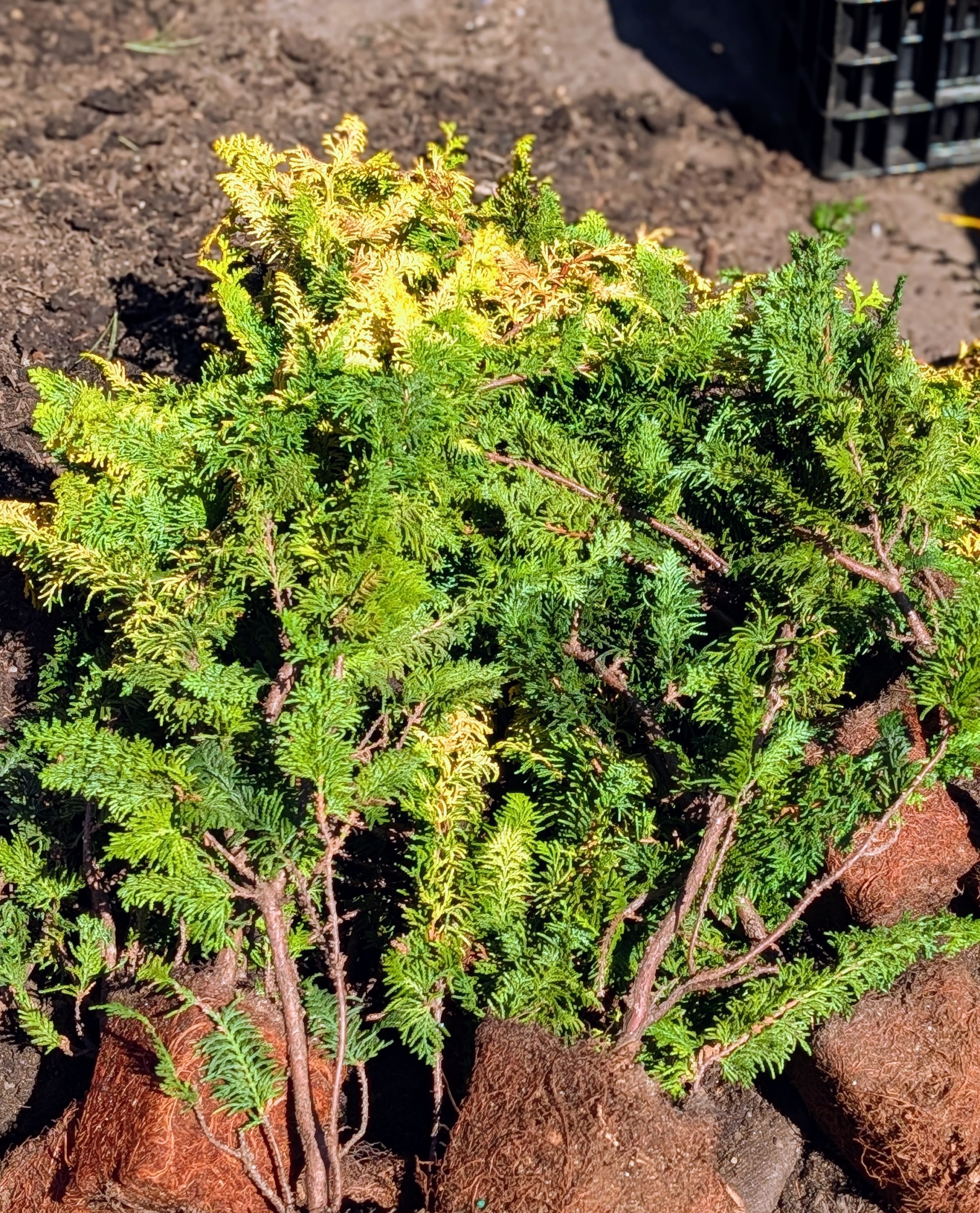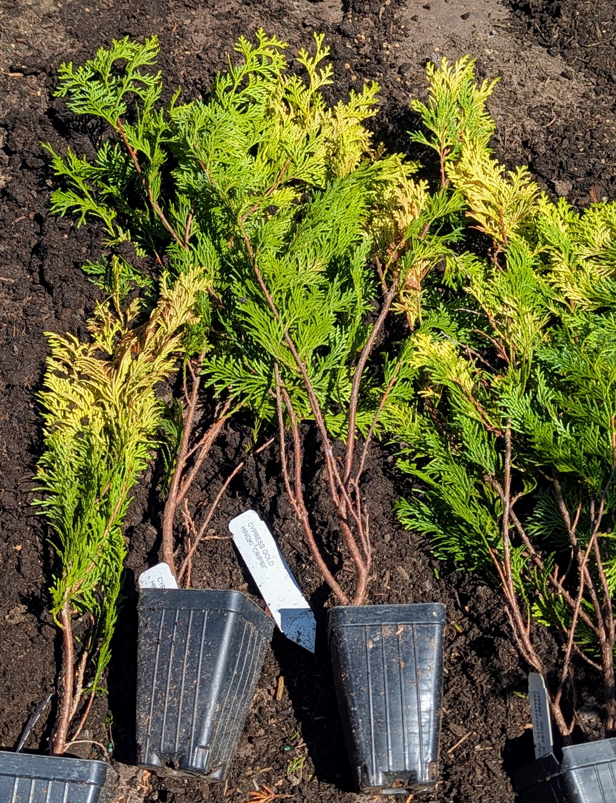 - Some trees arrived in small containers. These are Crippsii Golden Hinoki Cypress seedlings ready to be potted in larger vessels.