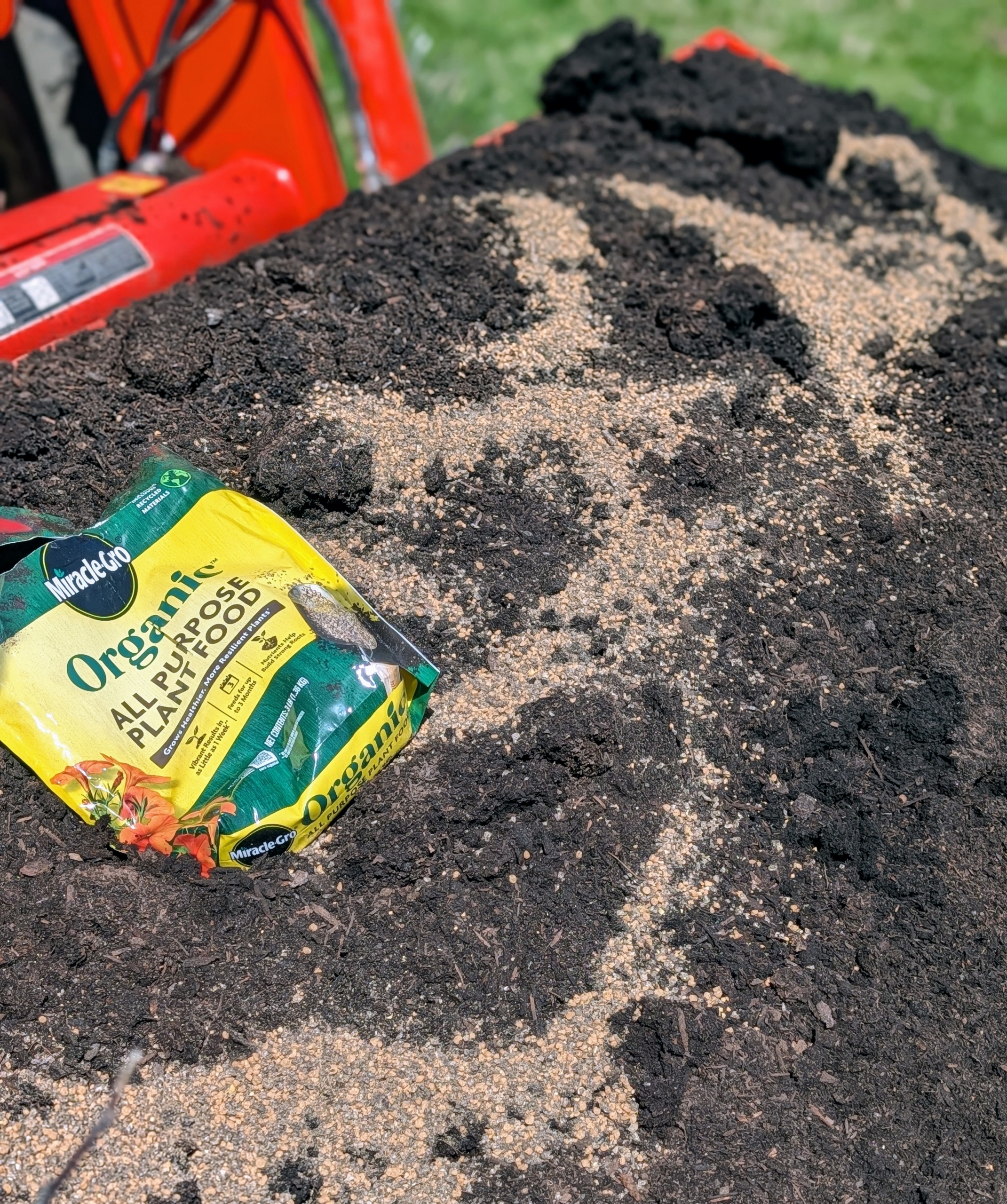 - It is amended with some good fertilizer and then mixed well. I use Organic All-Purpose Plant Food from Miracle-Gro.